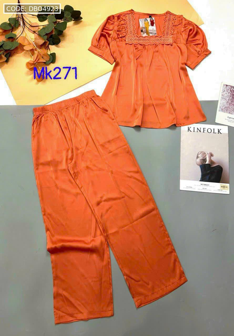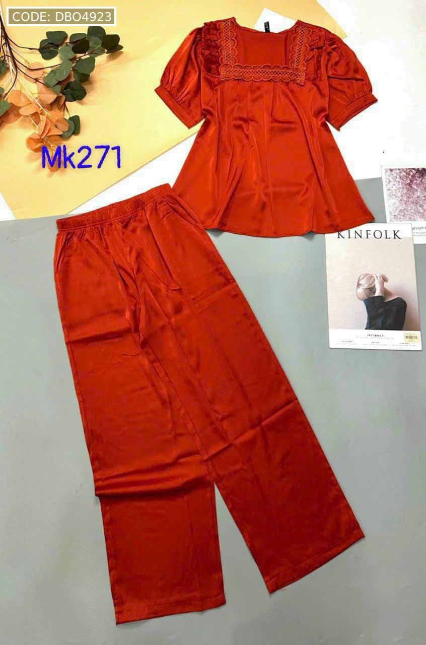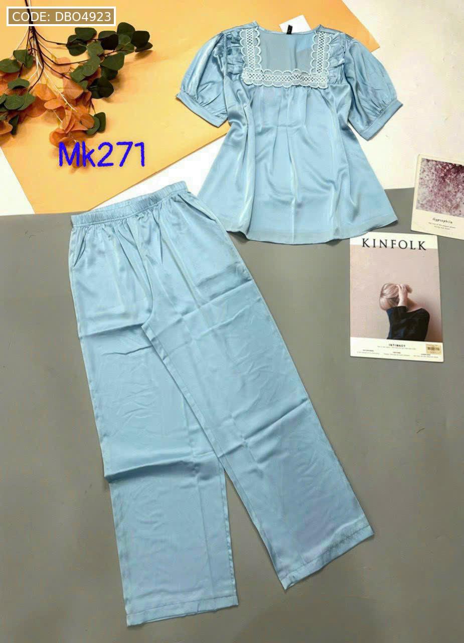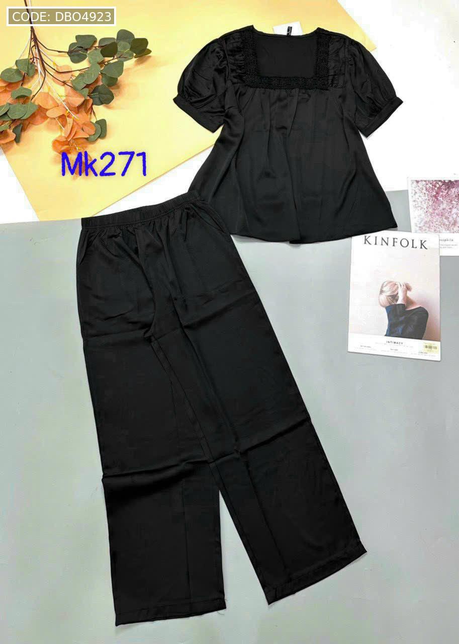 Bỏ sỉ đồ bộ pijama latin trơn quần áo tay ngắn cổ vuông phối ren