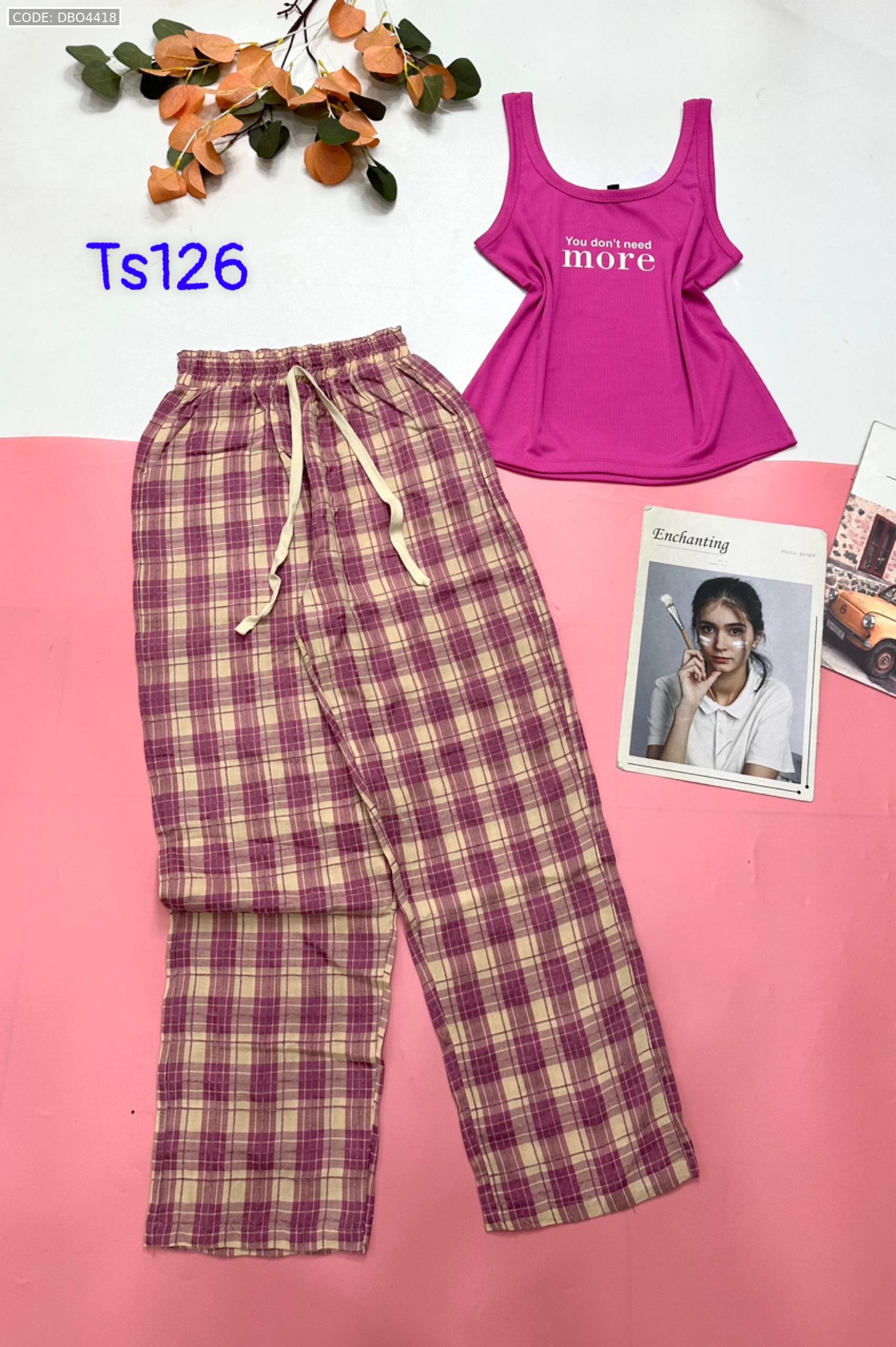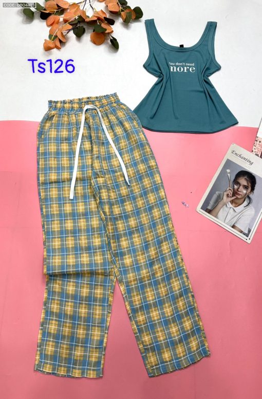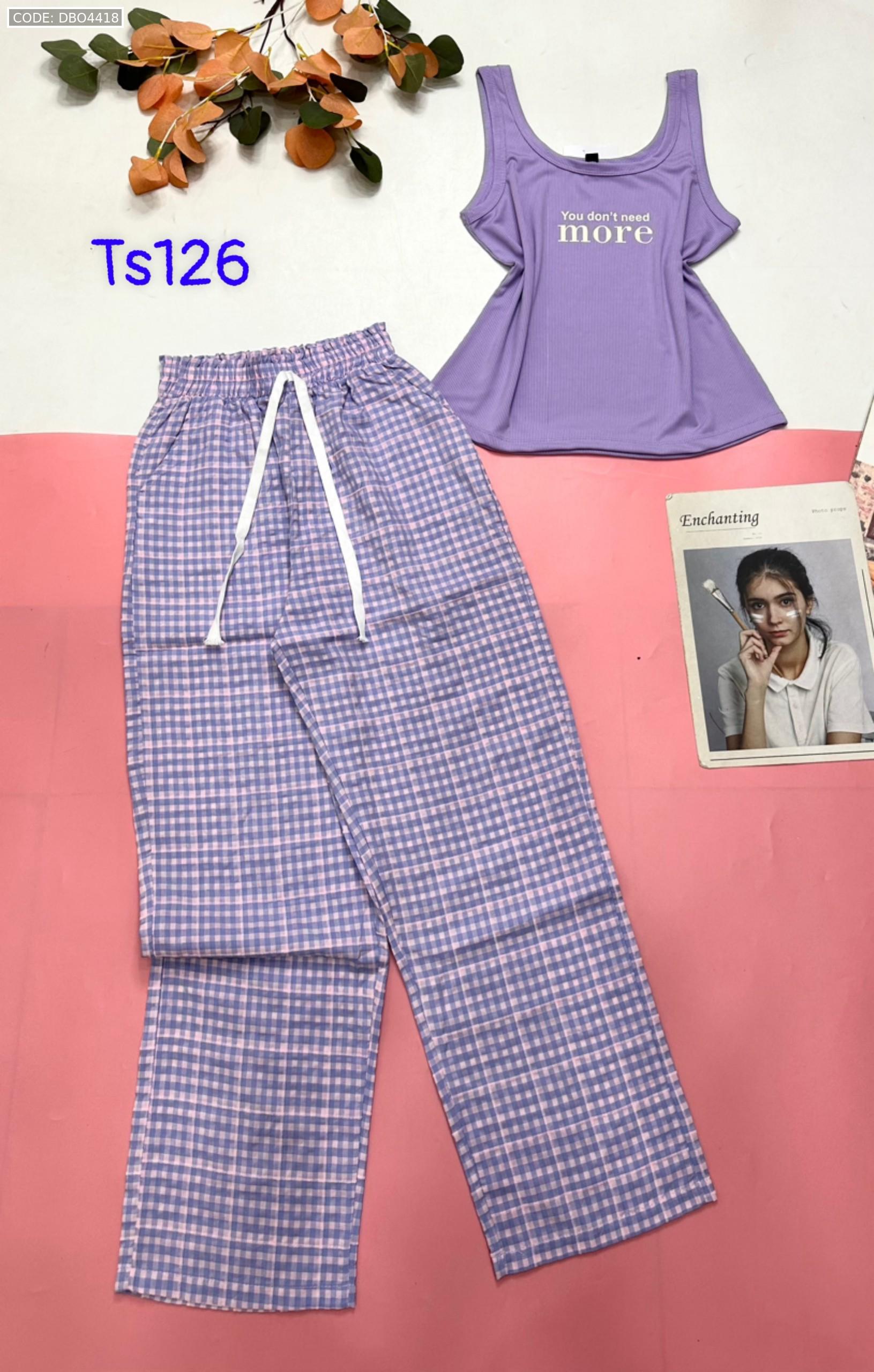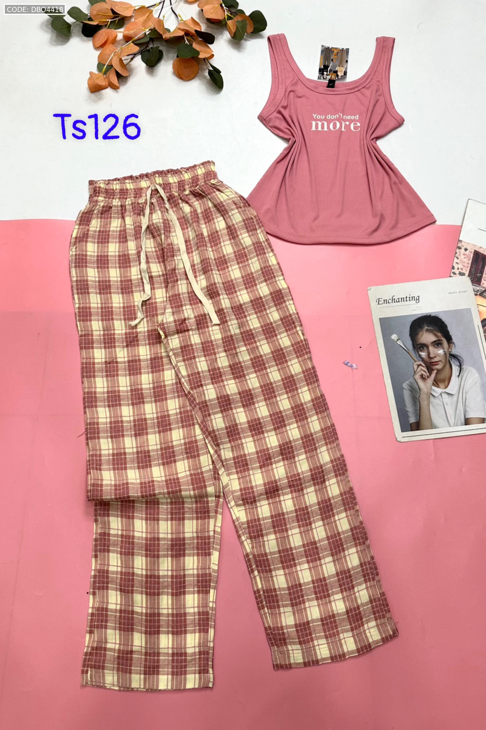 Bỏ sỉ đồ bộ quần dài caro áo tay sát nách in chữ more