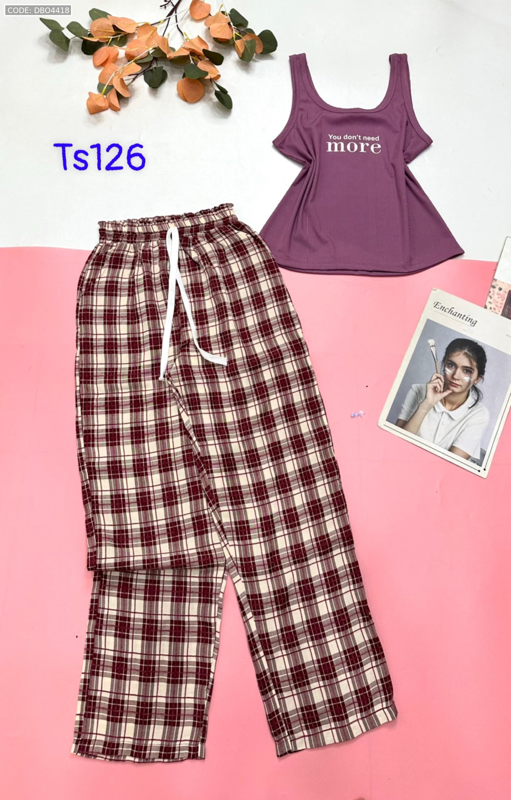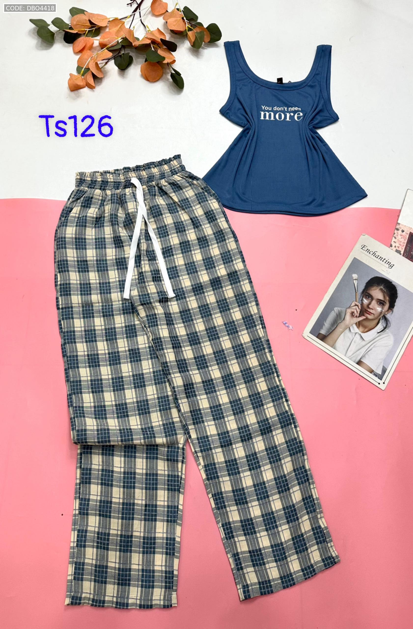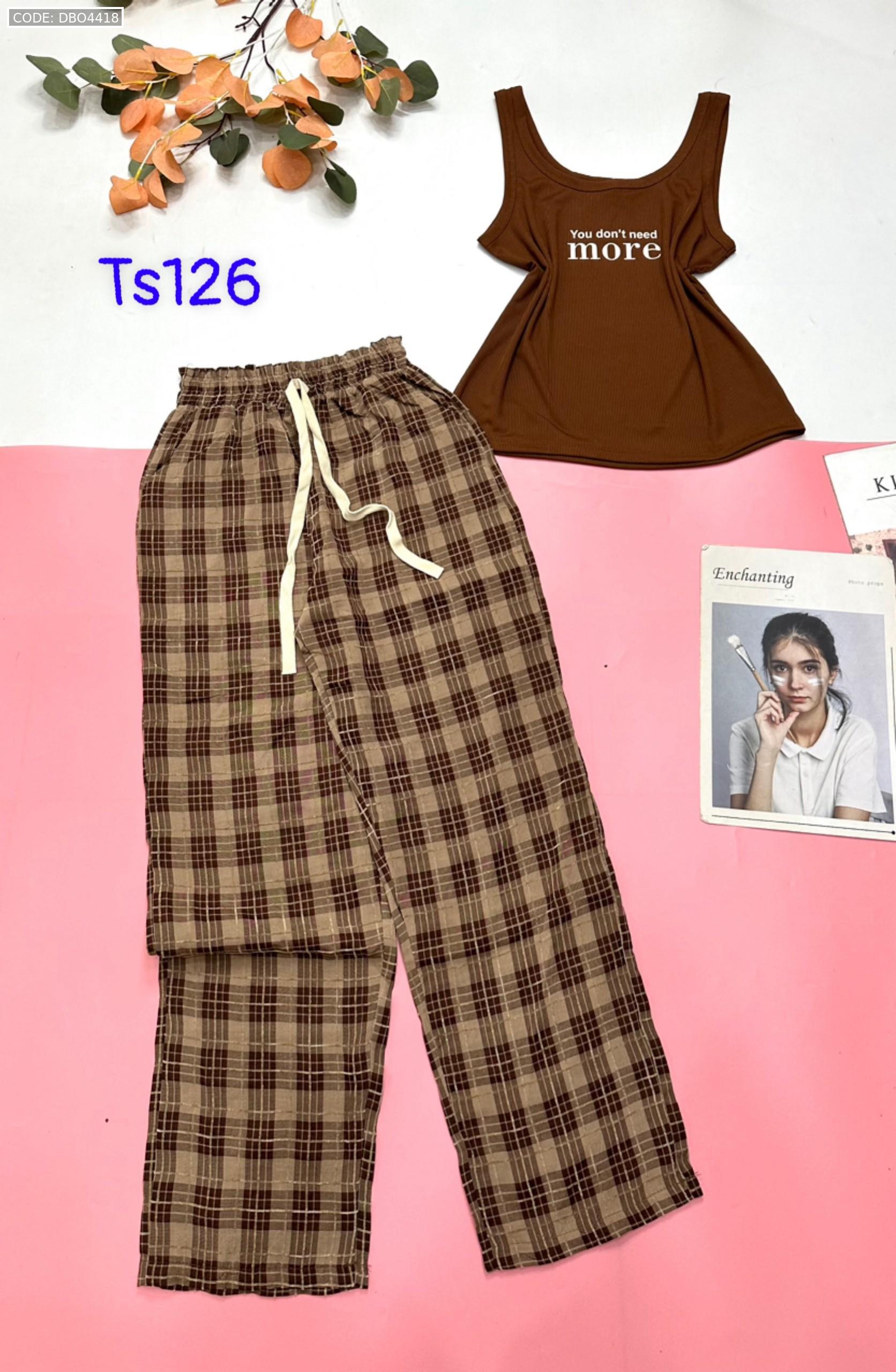 Bỏ sỉ đồ bộ quần dài caro áo tay sát nách in chữ more