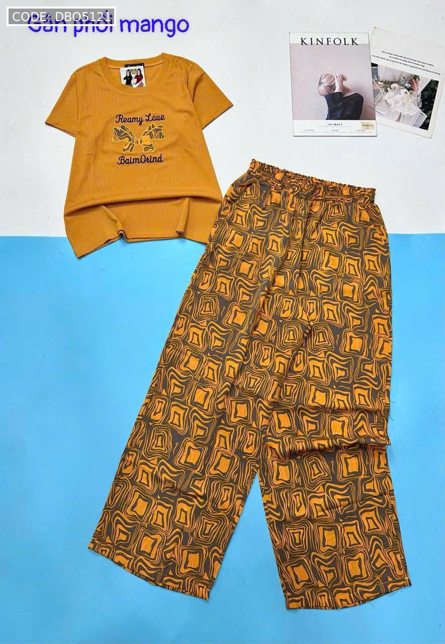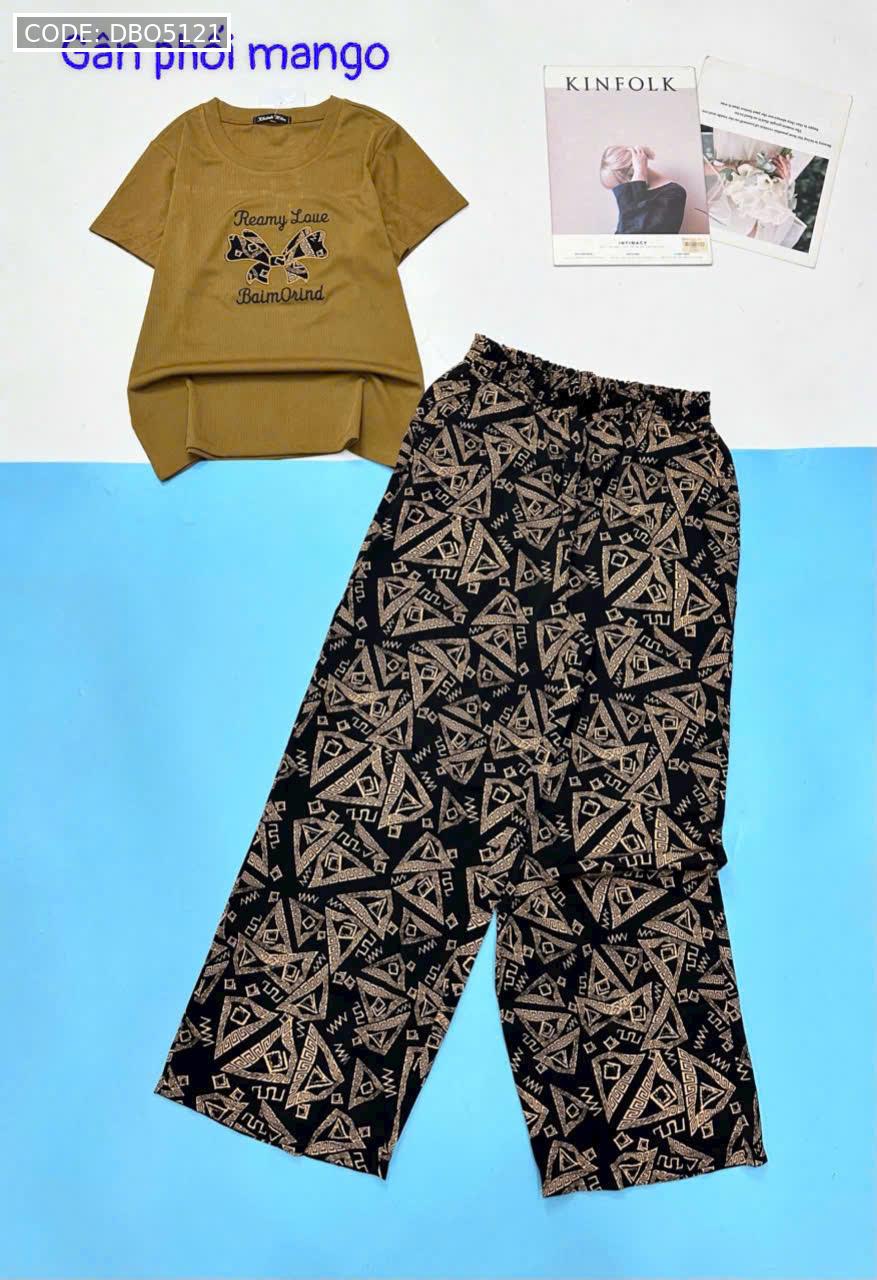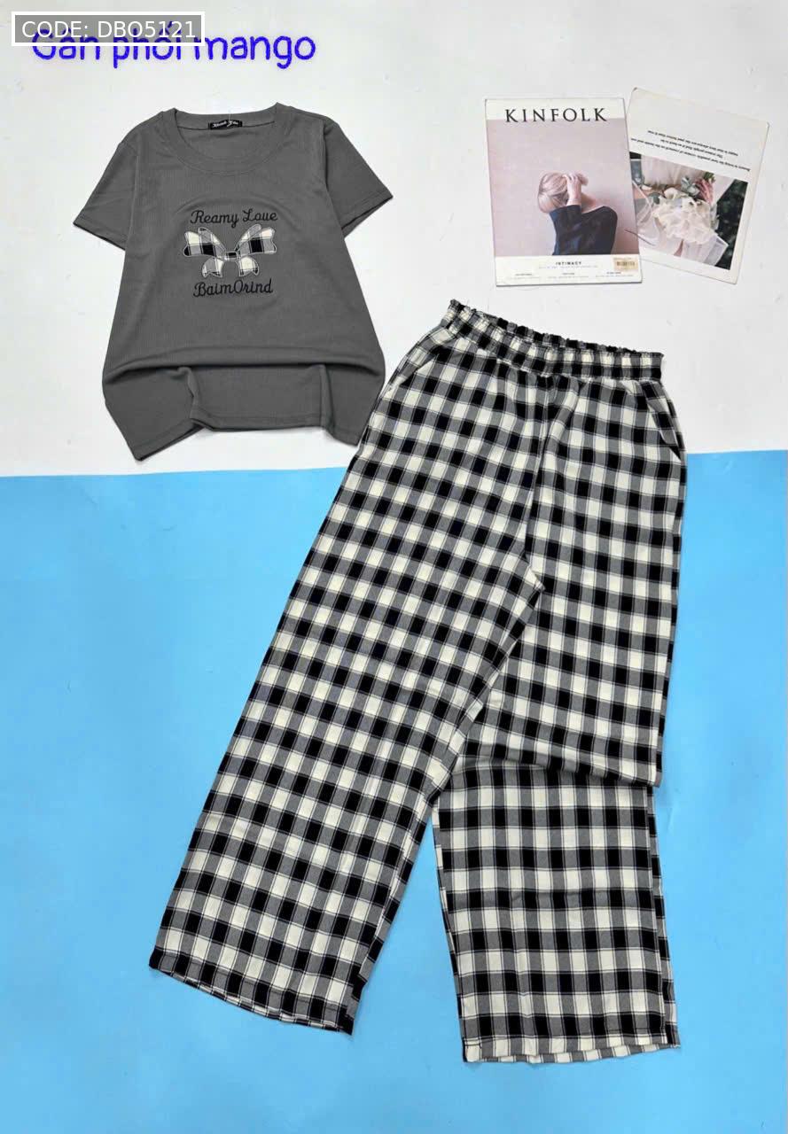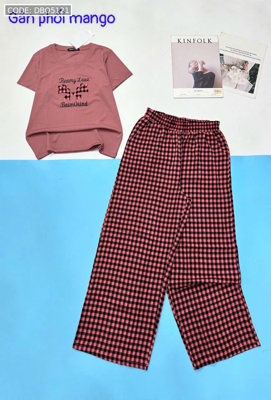Bỏ sỉ đồ bộ quần dài nhiều họa tiết áo thun tay ngắn gân in nơ