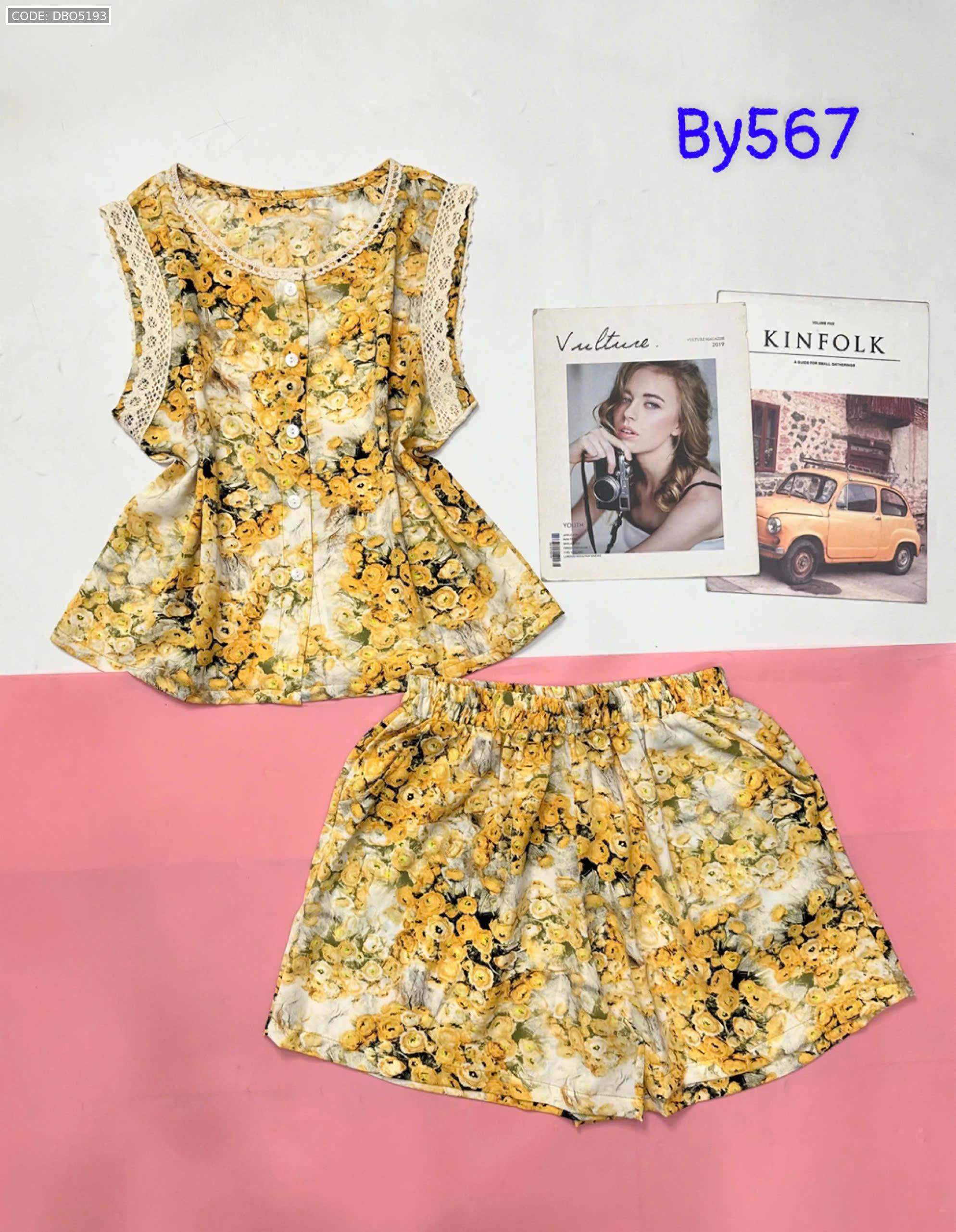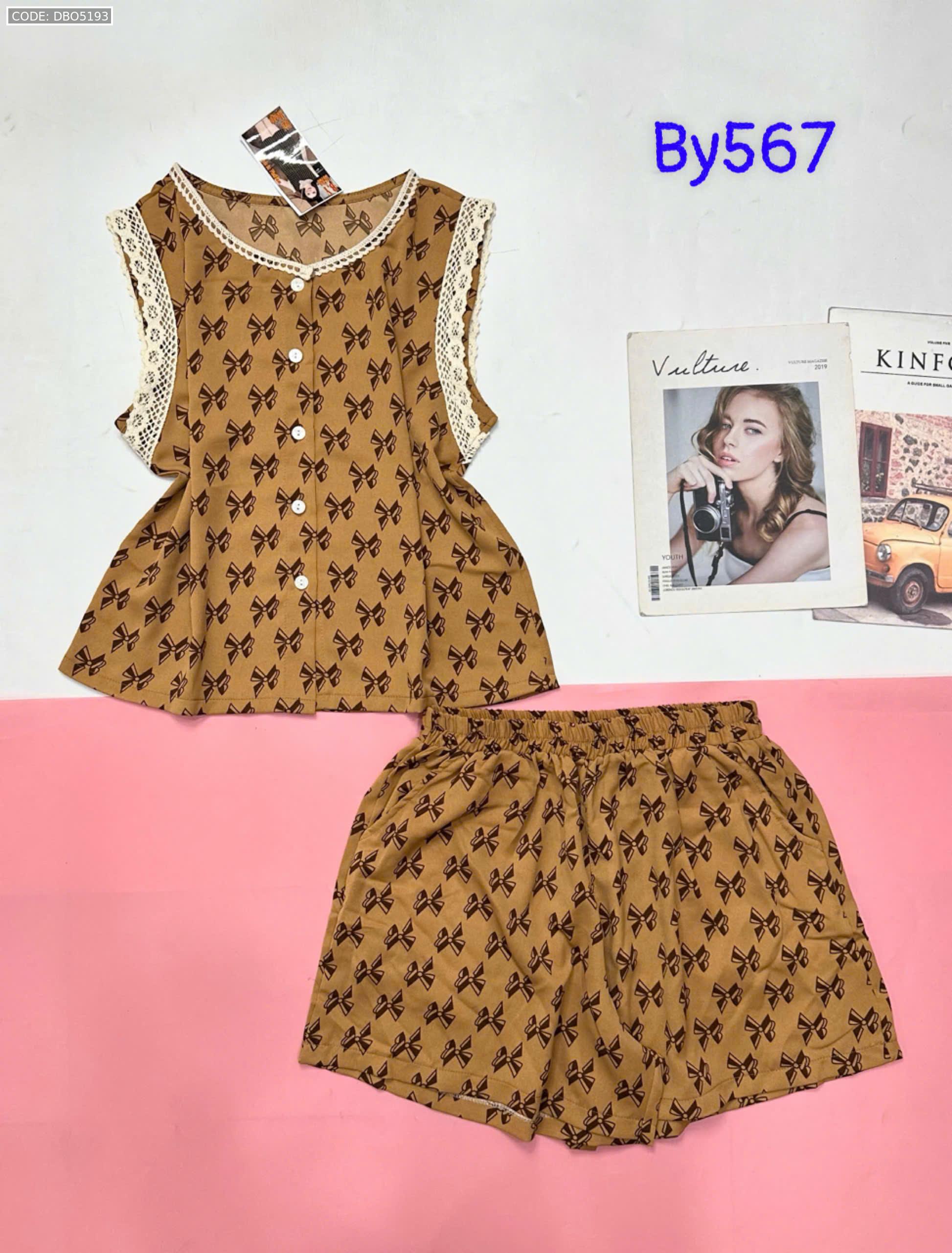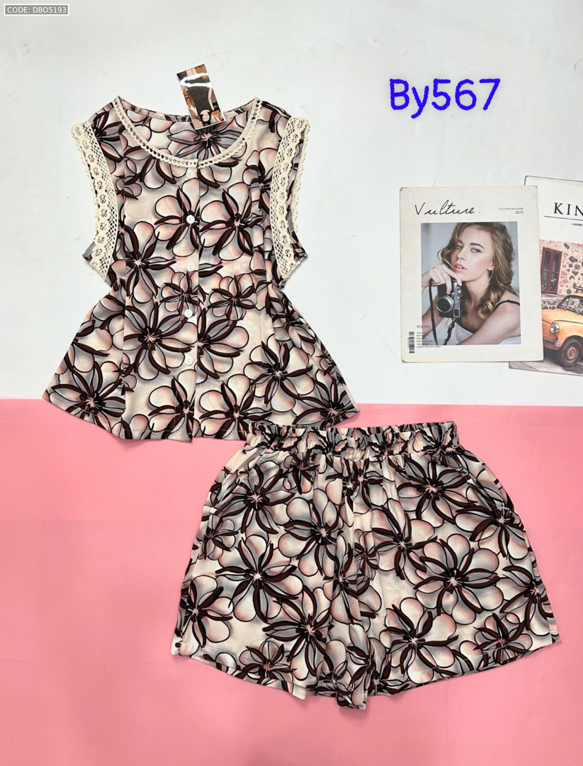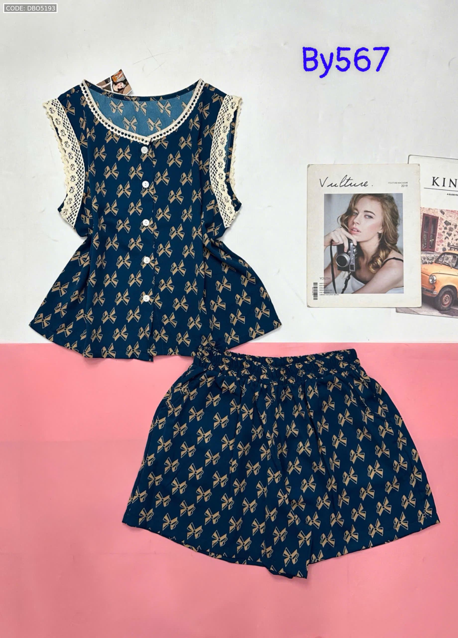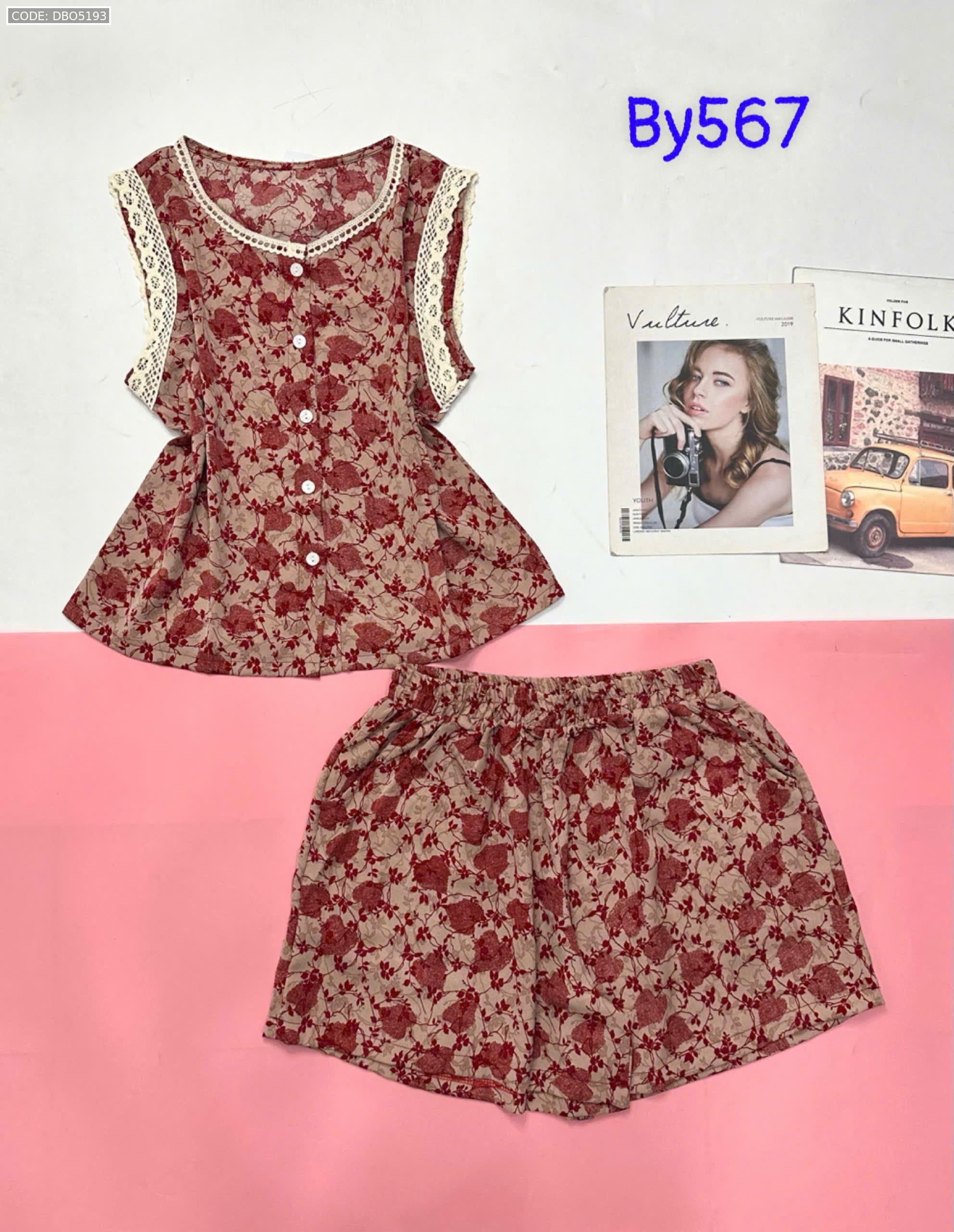 Bỏ sỉ đồ bộ quần đùi áo sát nách phối ren nhiều họa tiết