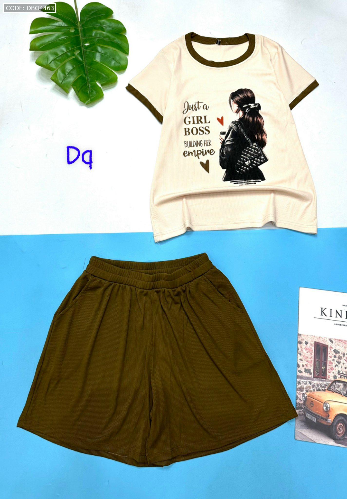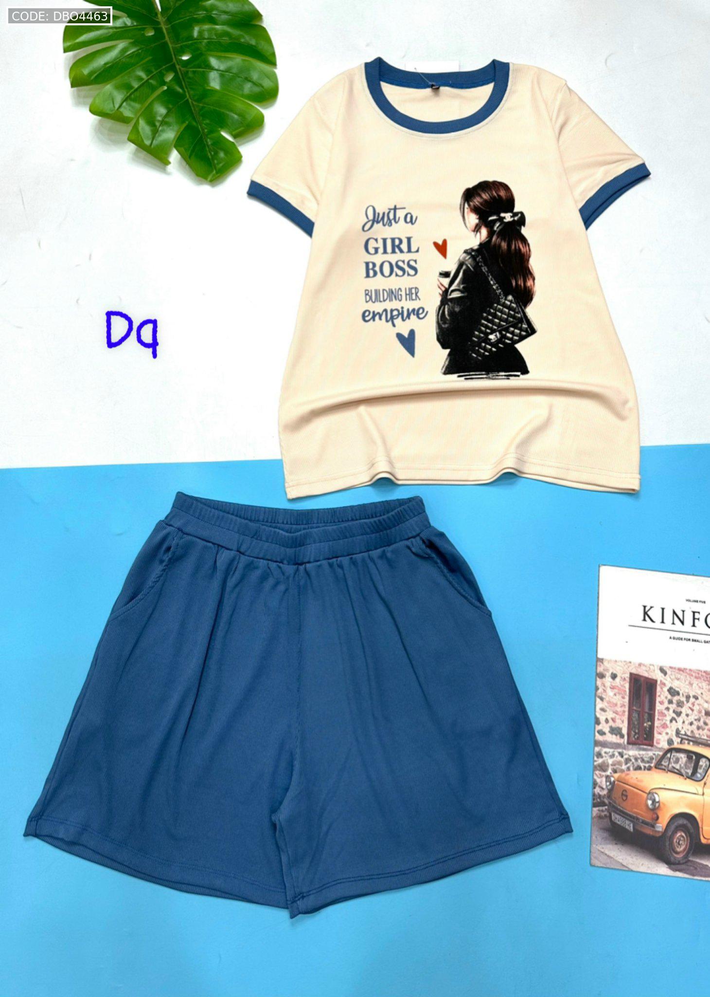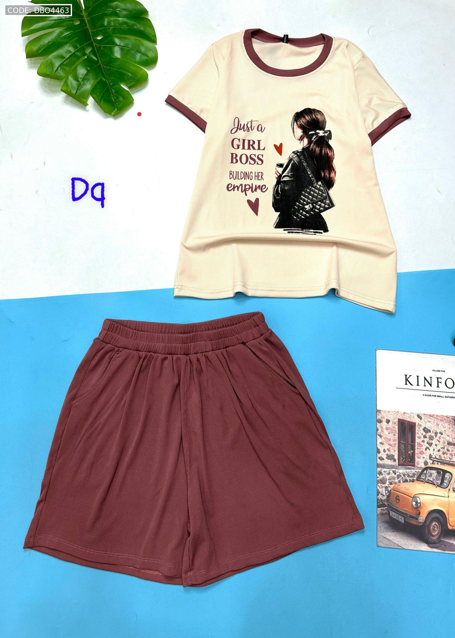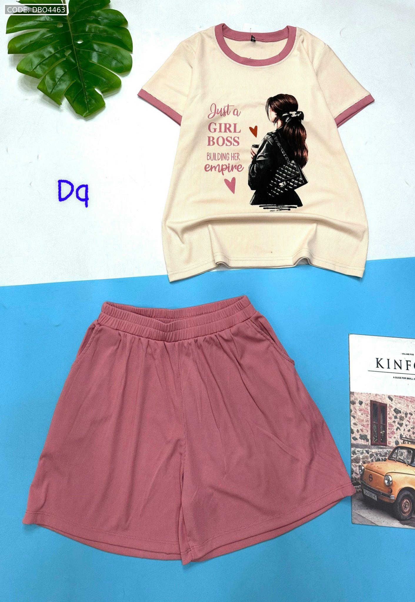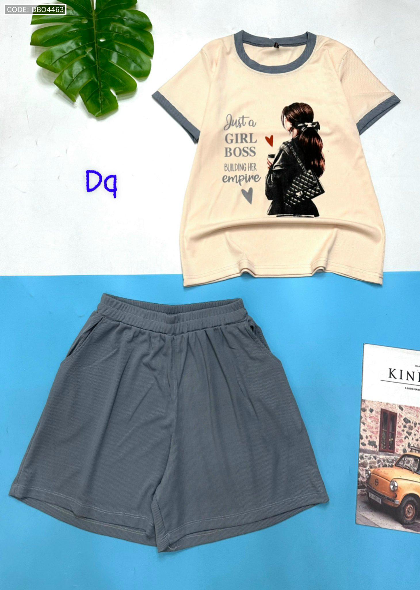 Bỏ sỉ đồ bộ quần đùi áo tay ngắn in hình cô gái tóc dài