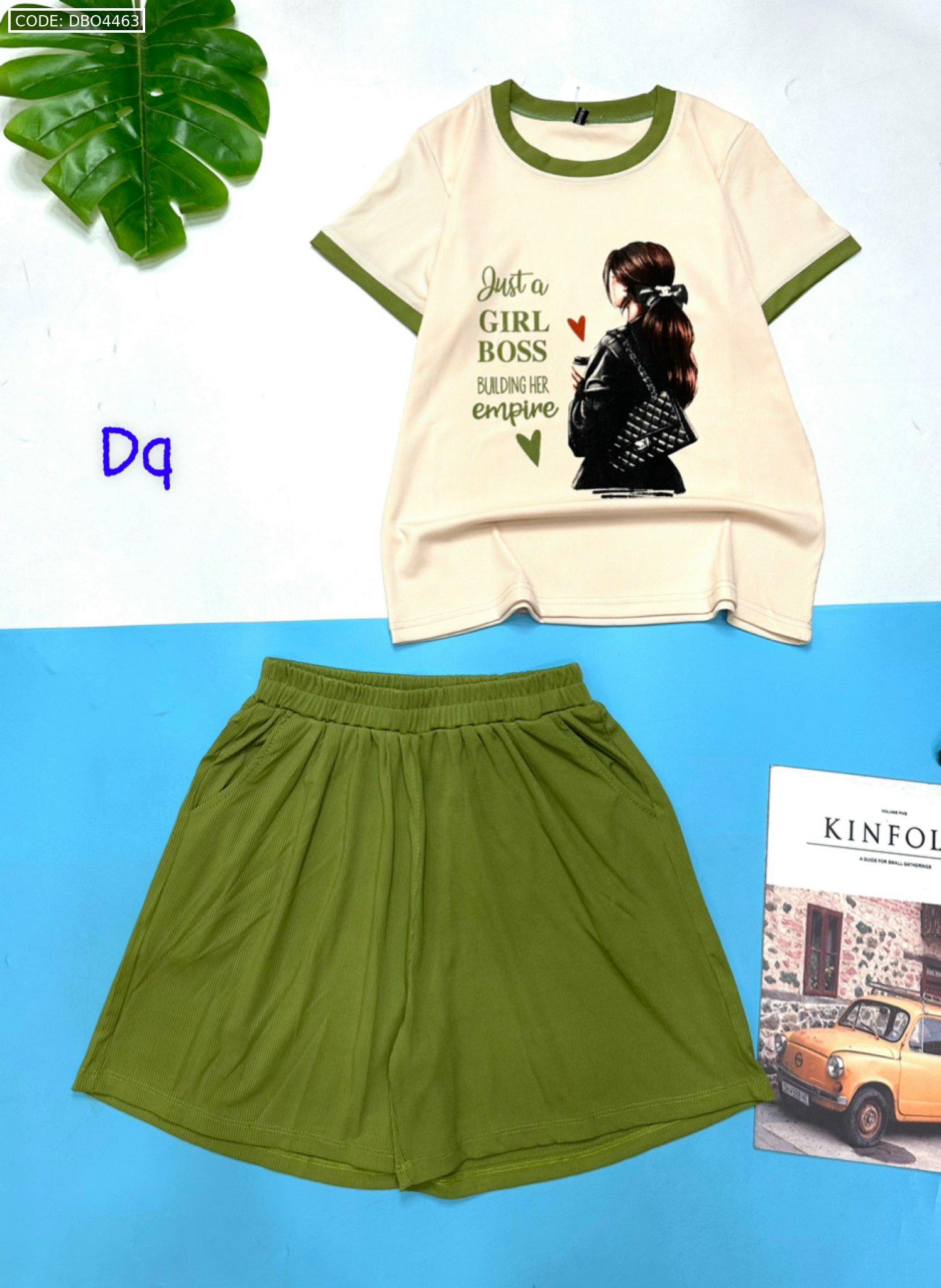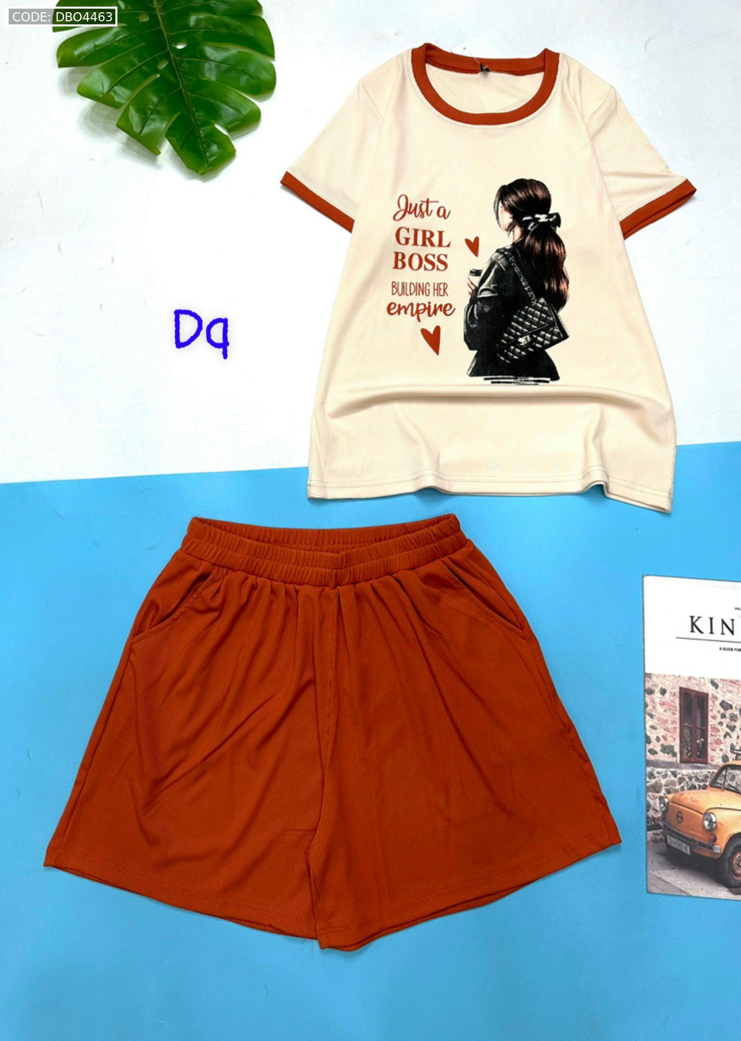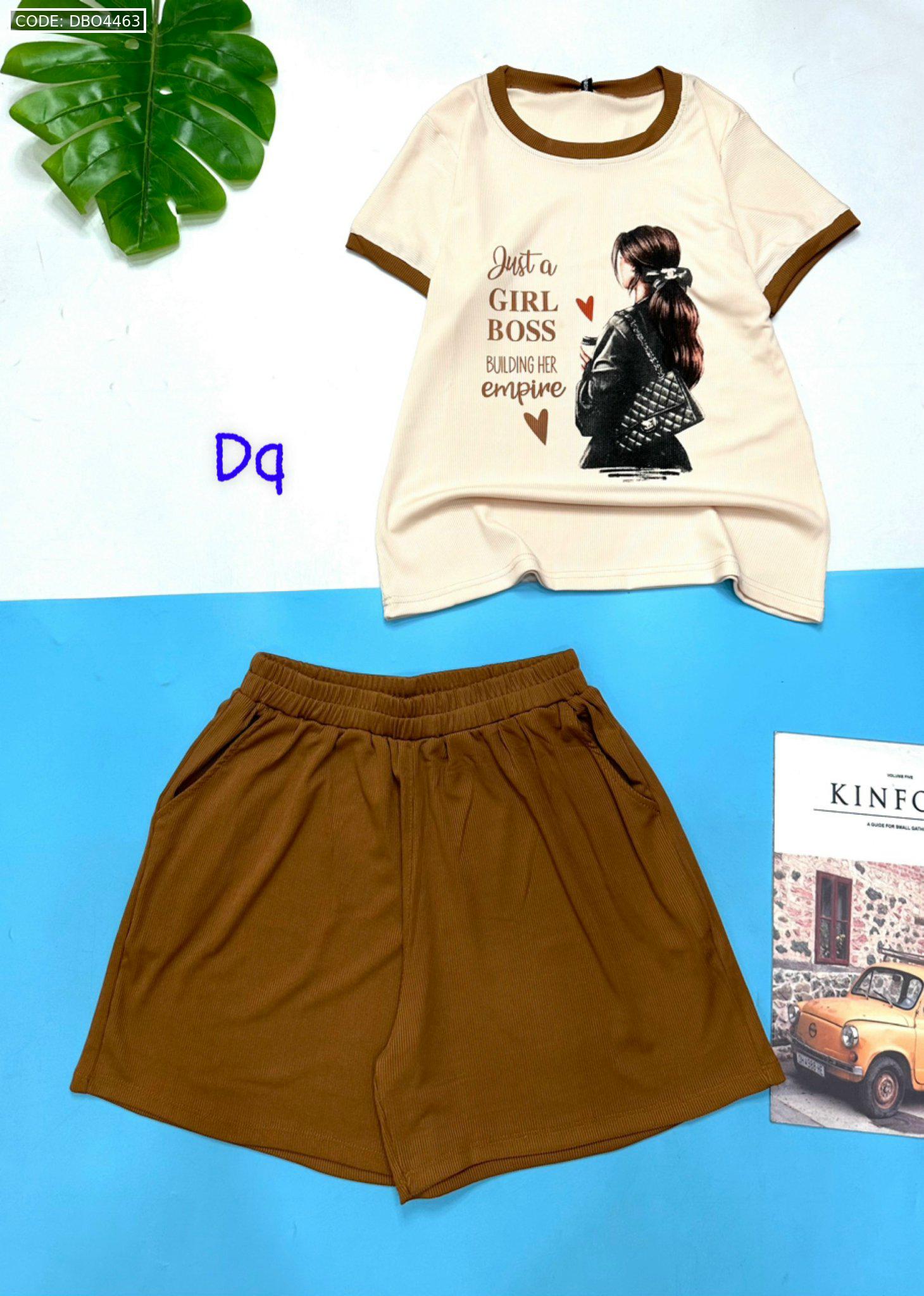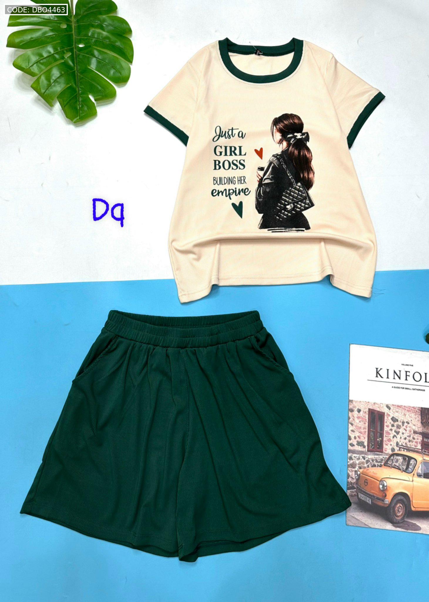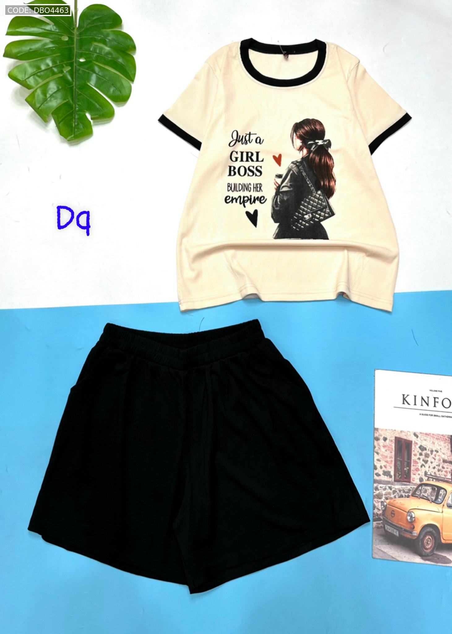 Bỏ sỉ đồ bộ quần đùi áo tay ngắn in hình cô gái tóc dài