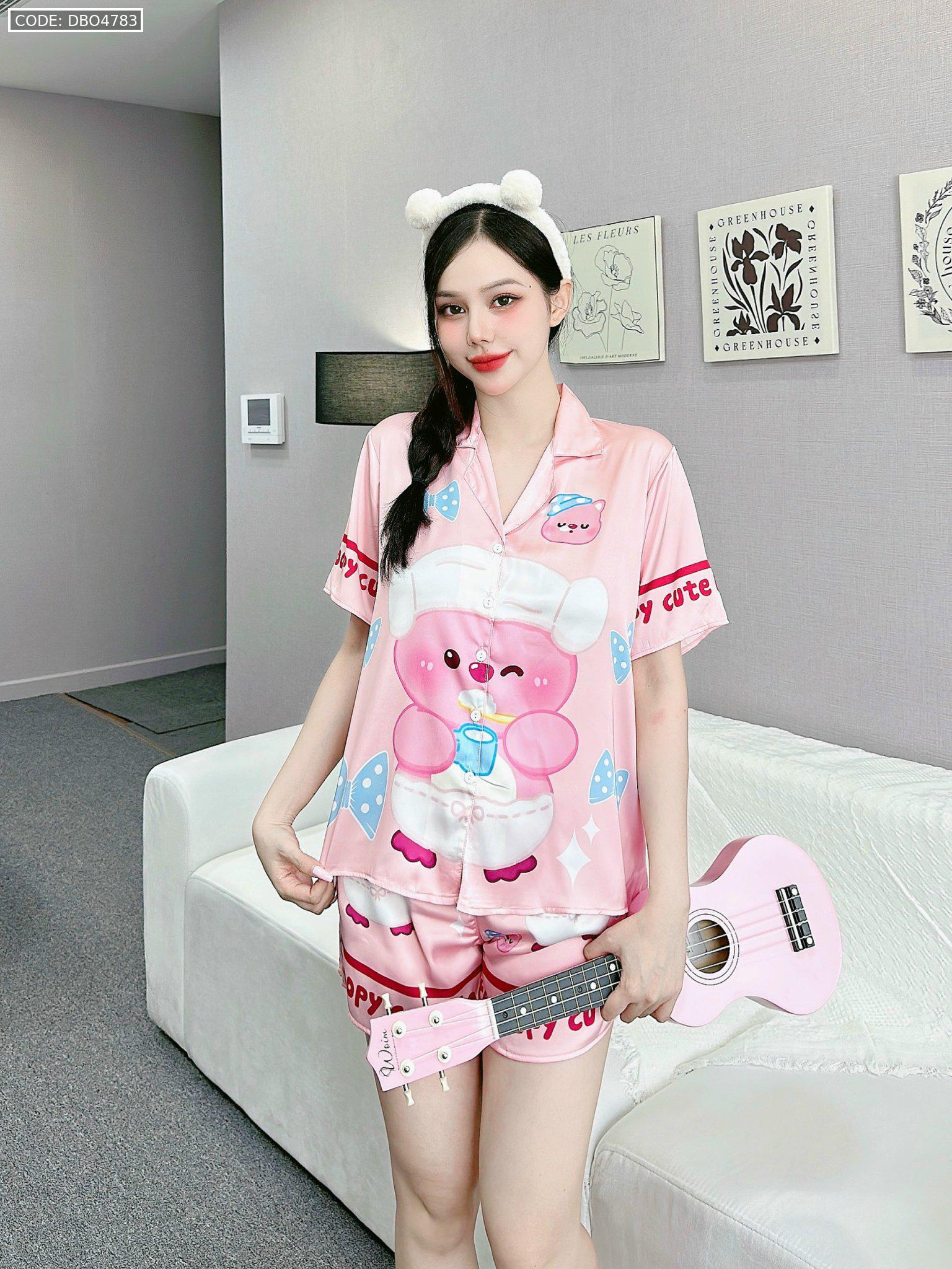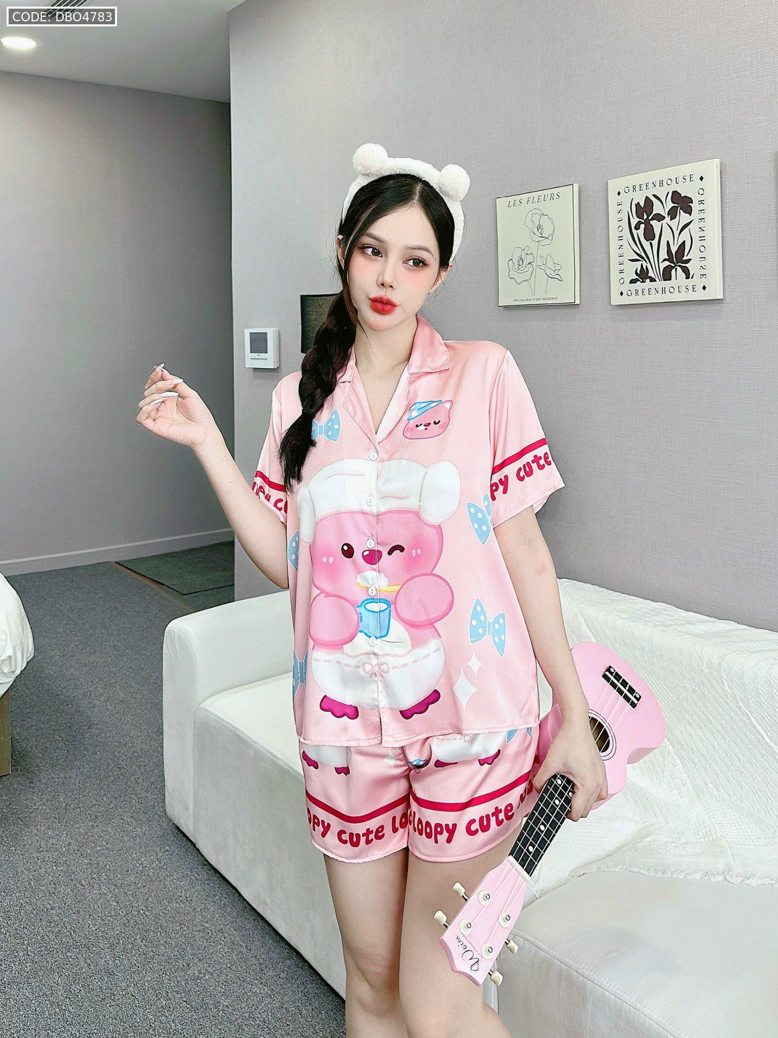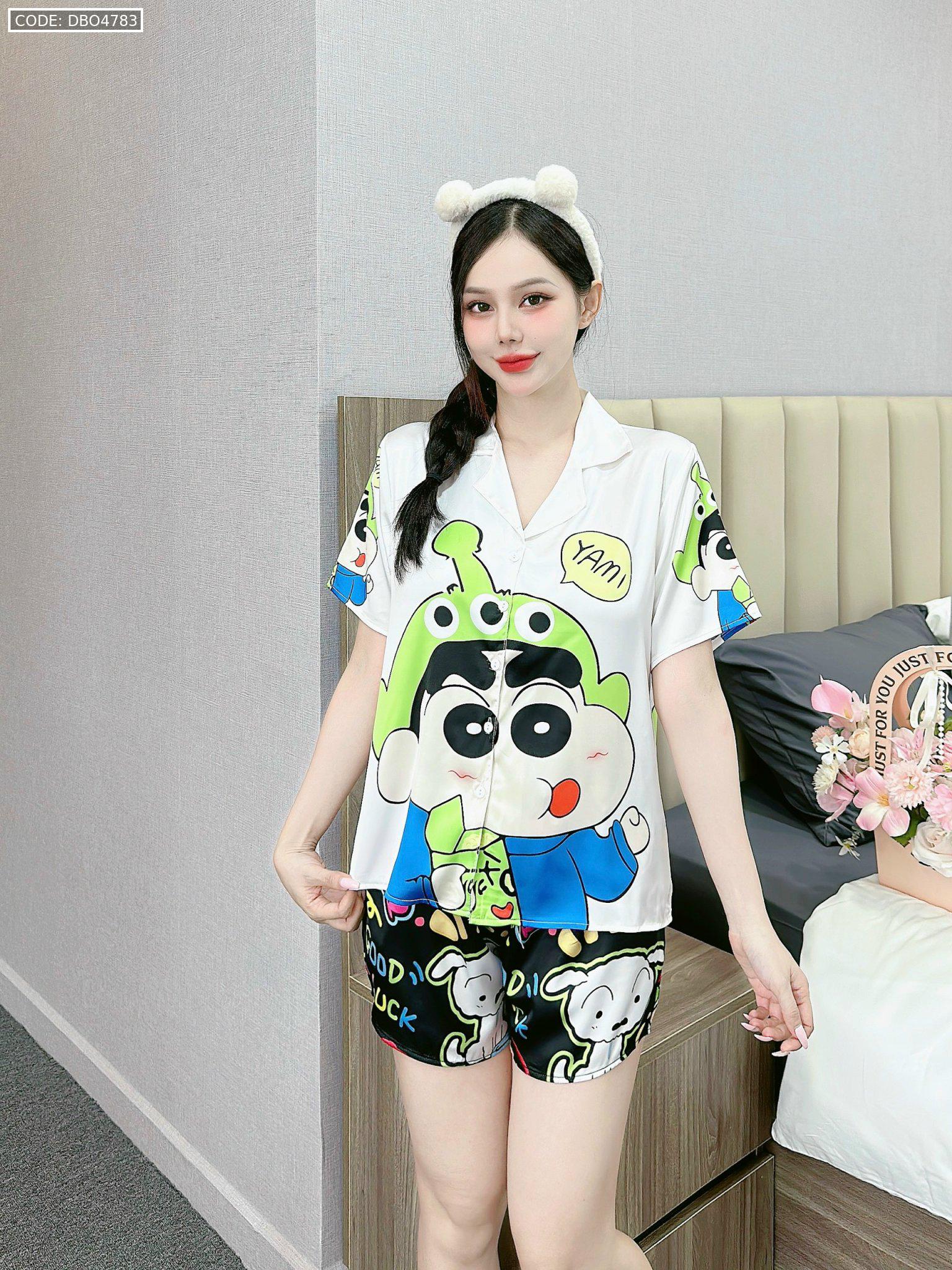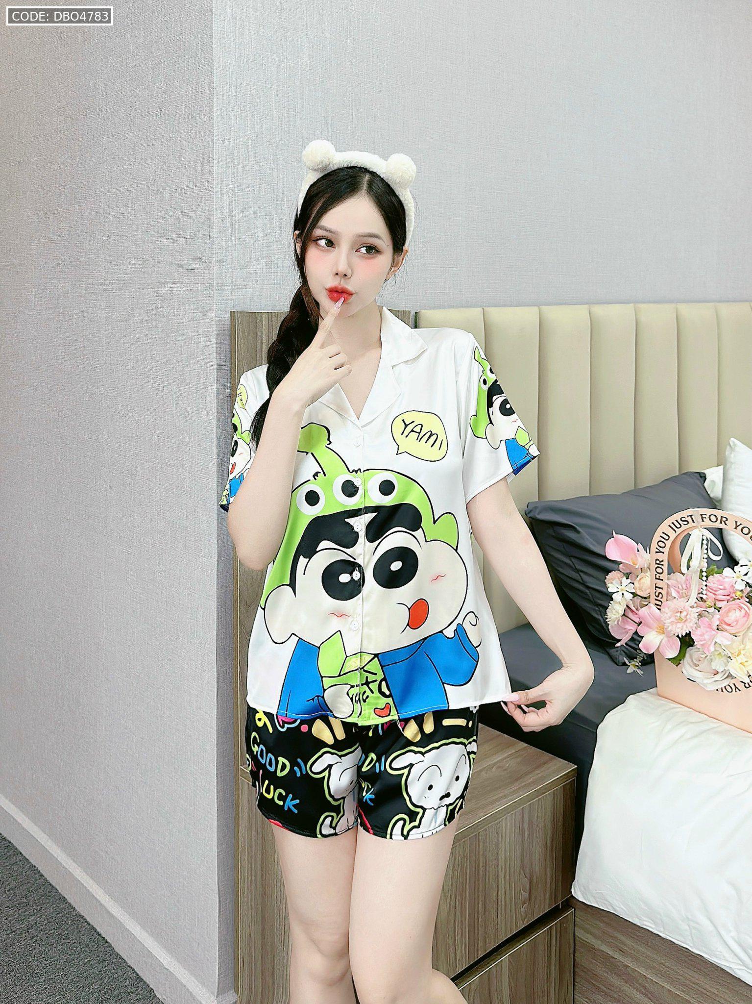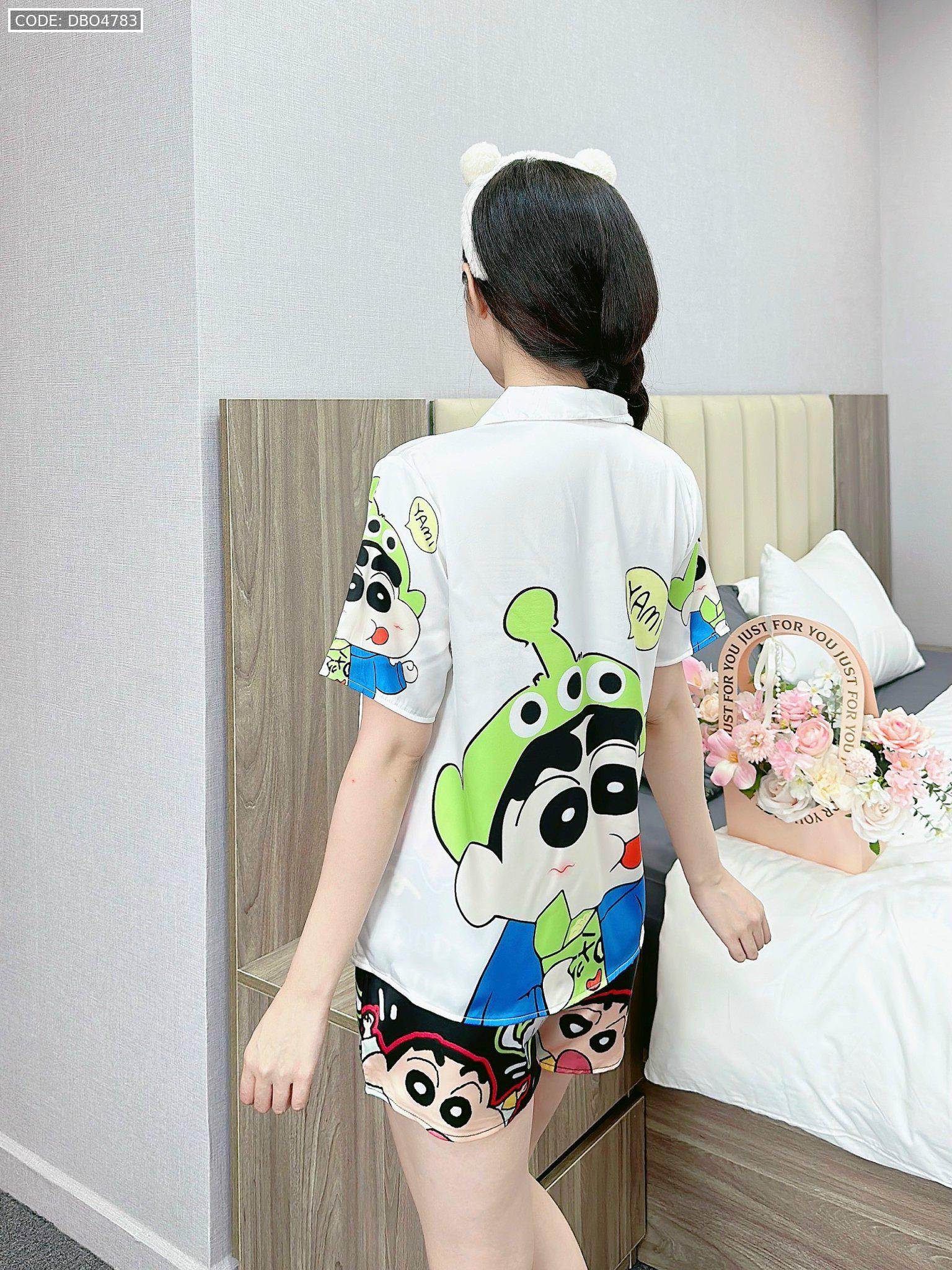 Bỏ sỉ đồ bộ quần đùi latin áo tay ngắn cổ bẻ in nhiều hình lớn