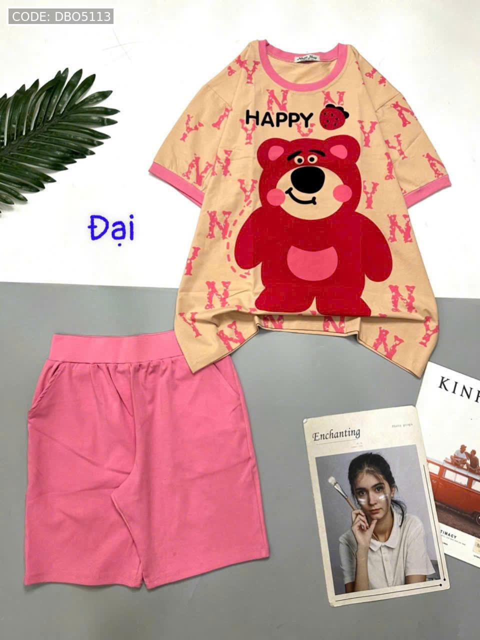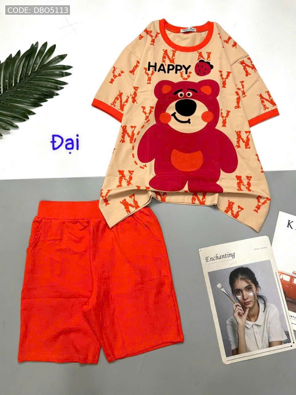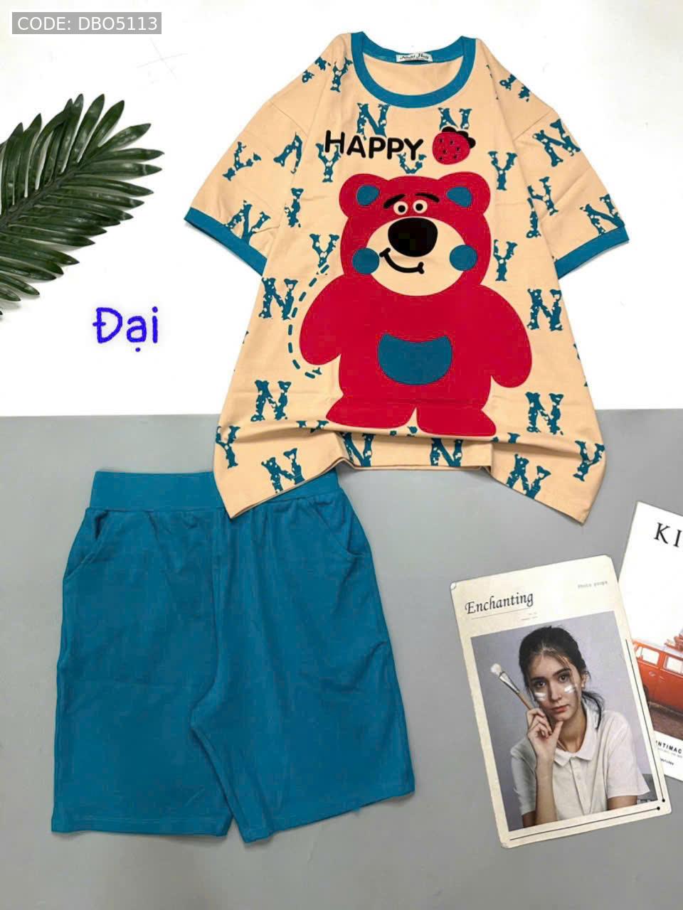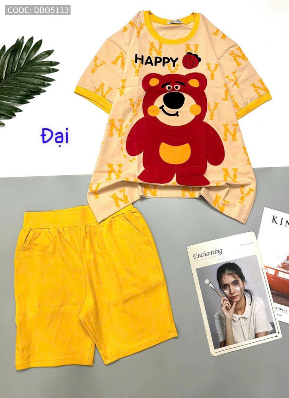 Bỏ sỉ đồ bộ quần lửng áo tay ngắn in gấu lớn Happy