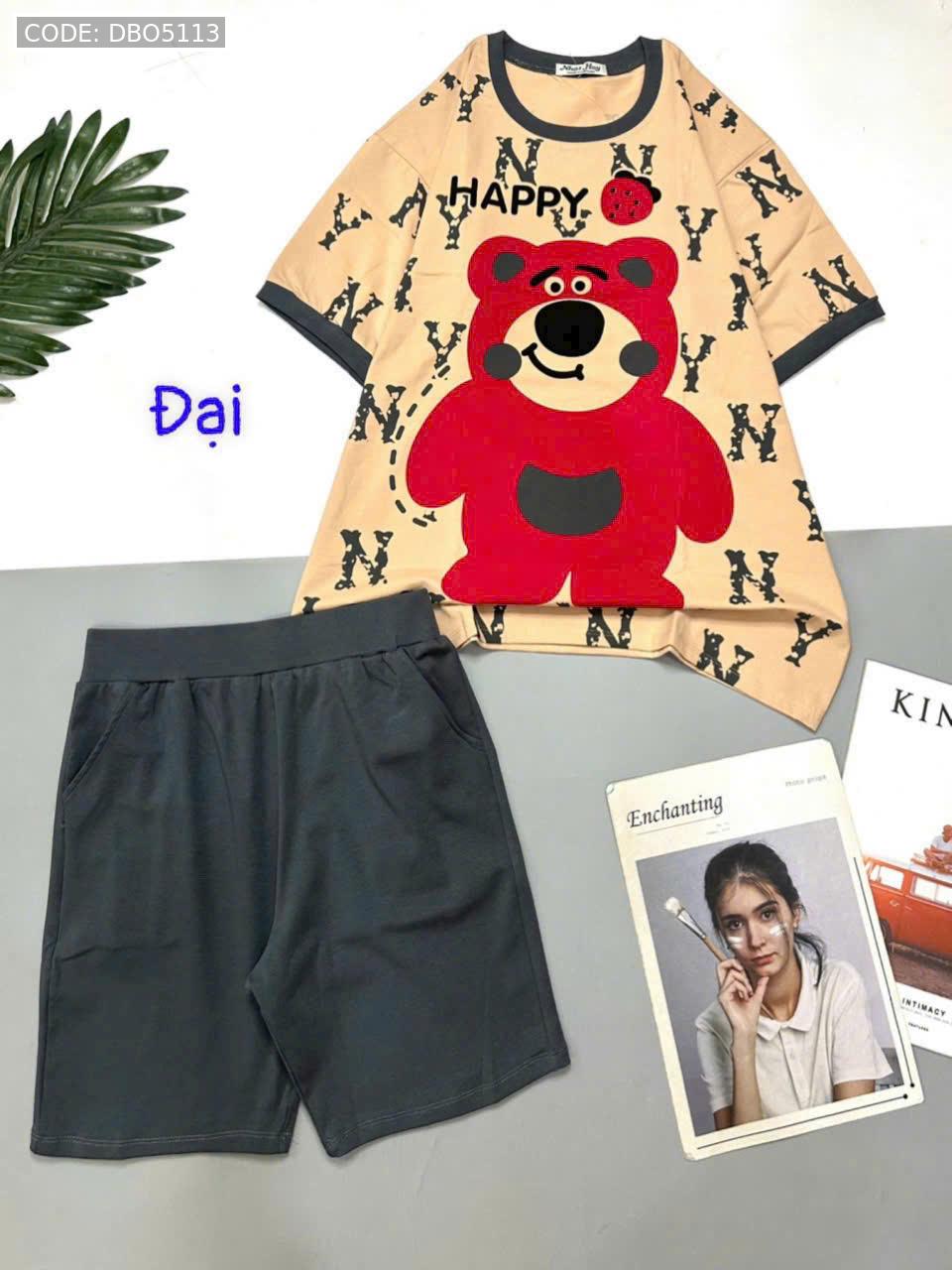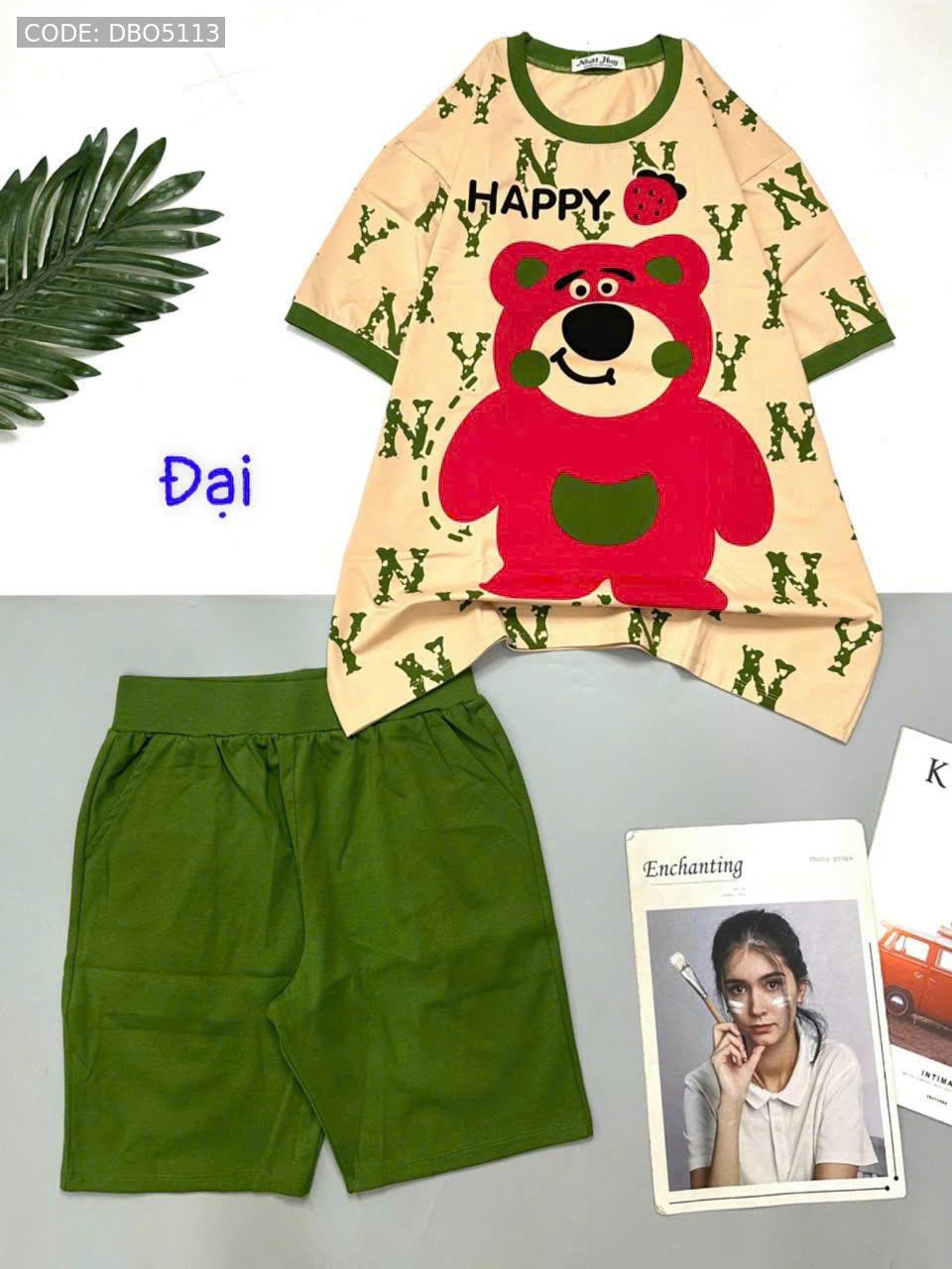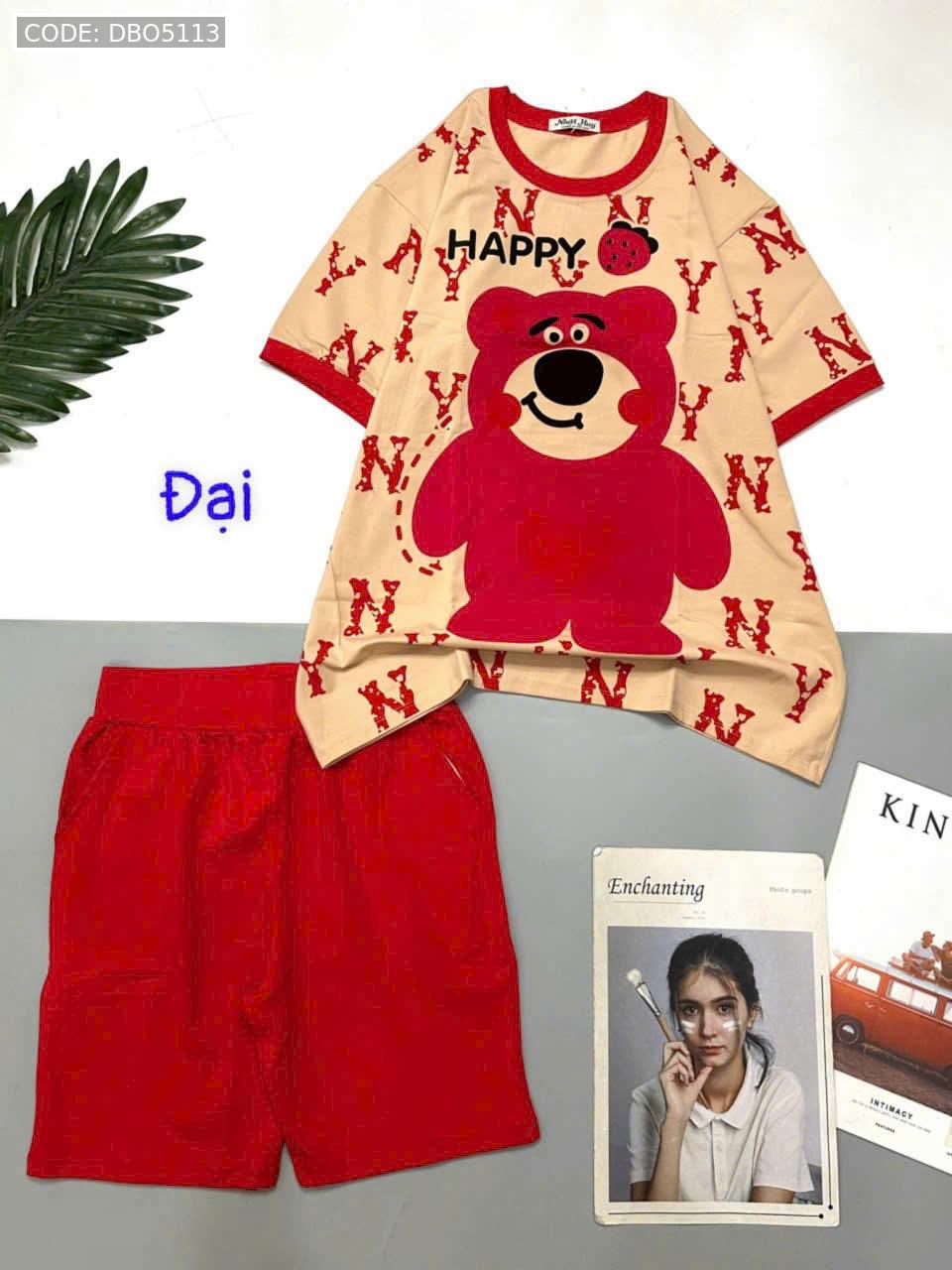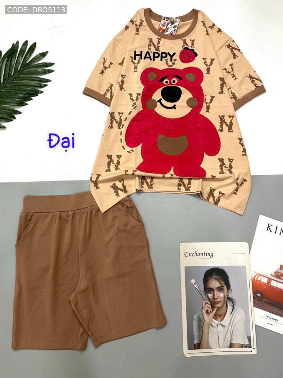 Bỏ sỉ đồ bộ quần lửng áo tay ngắn in gấu lớn Happy