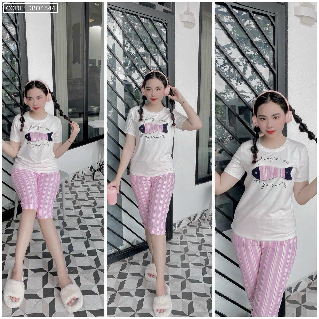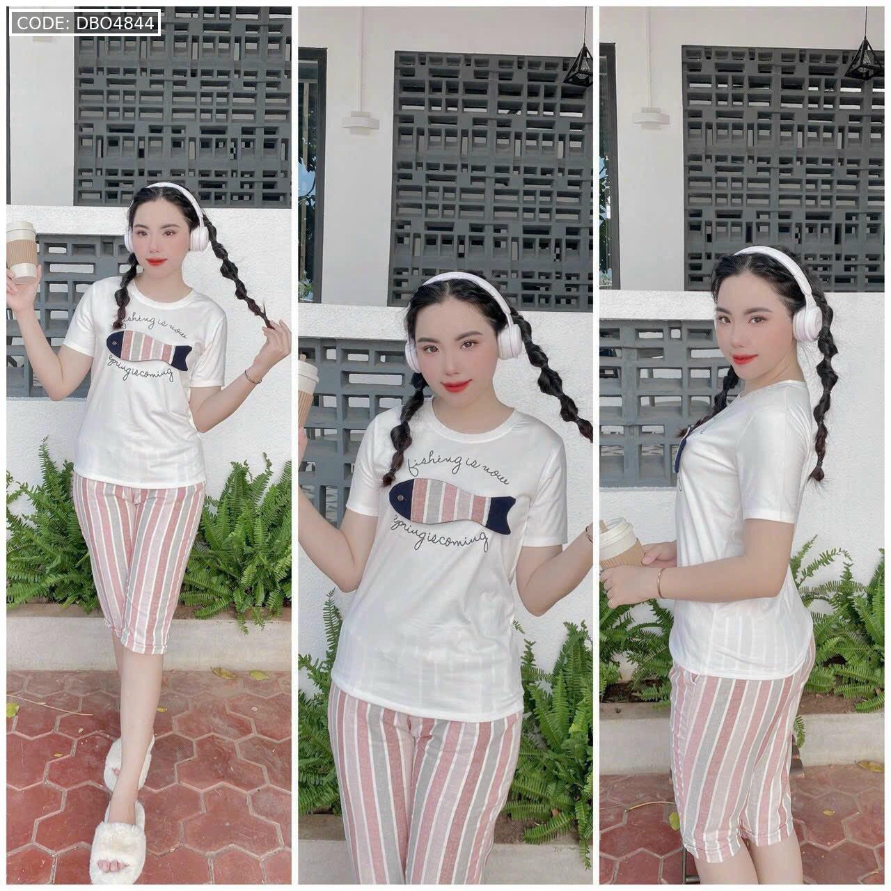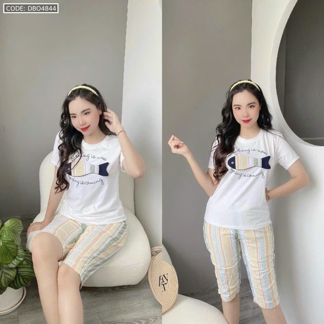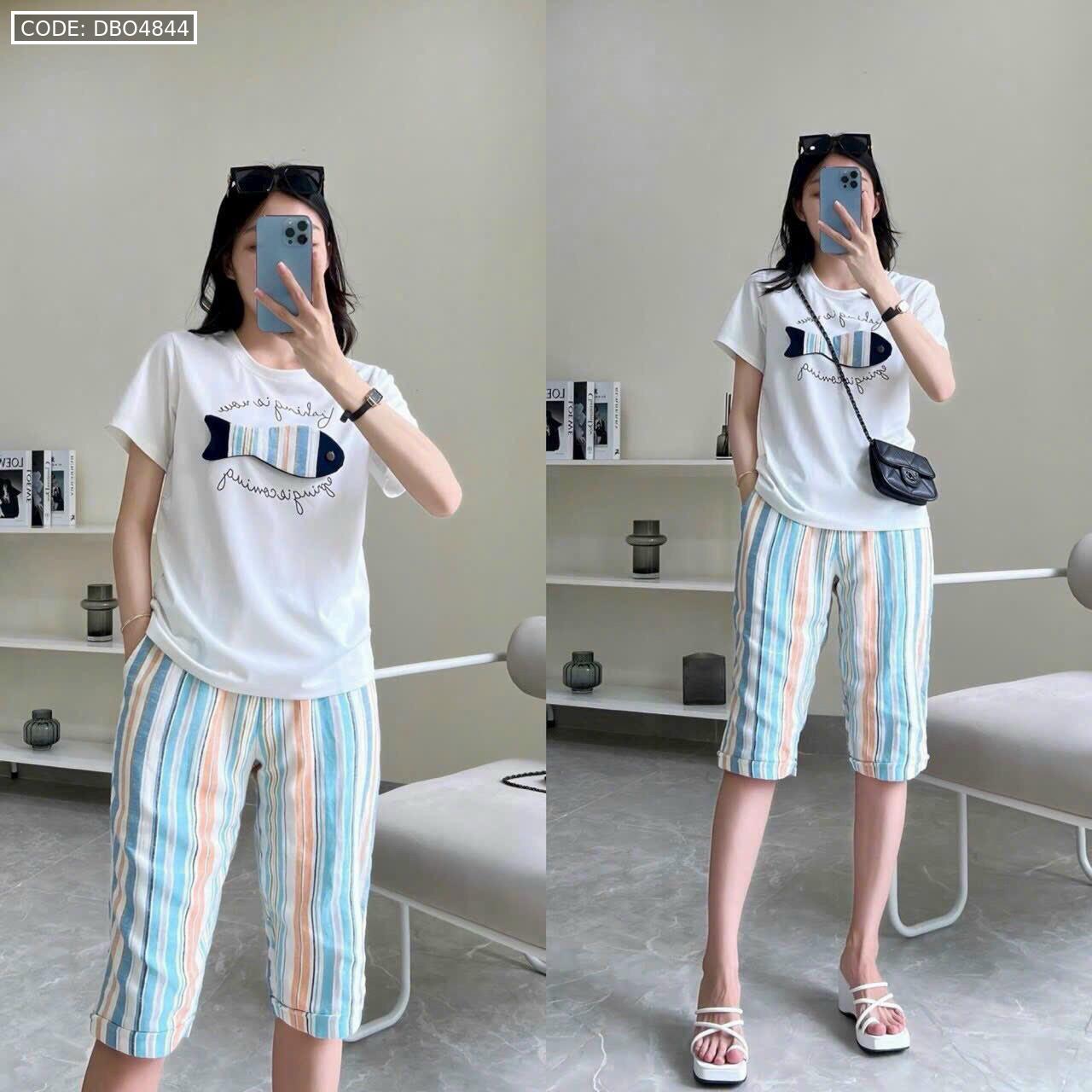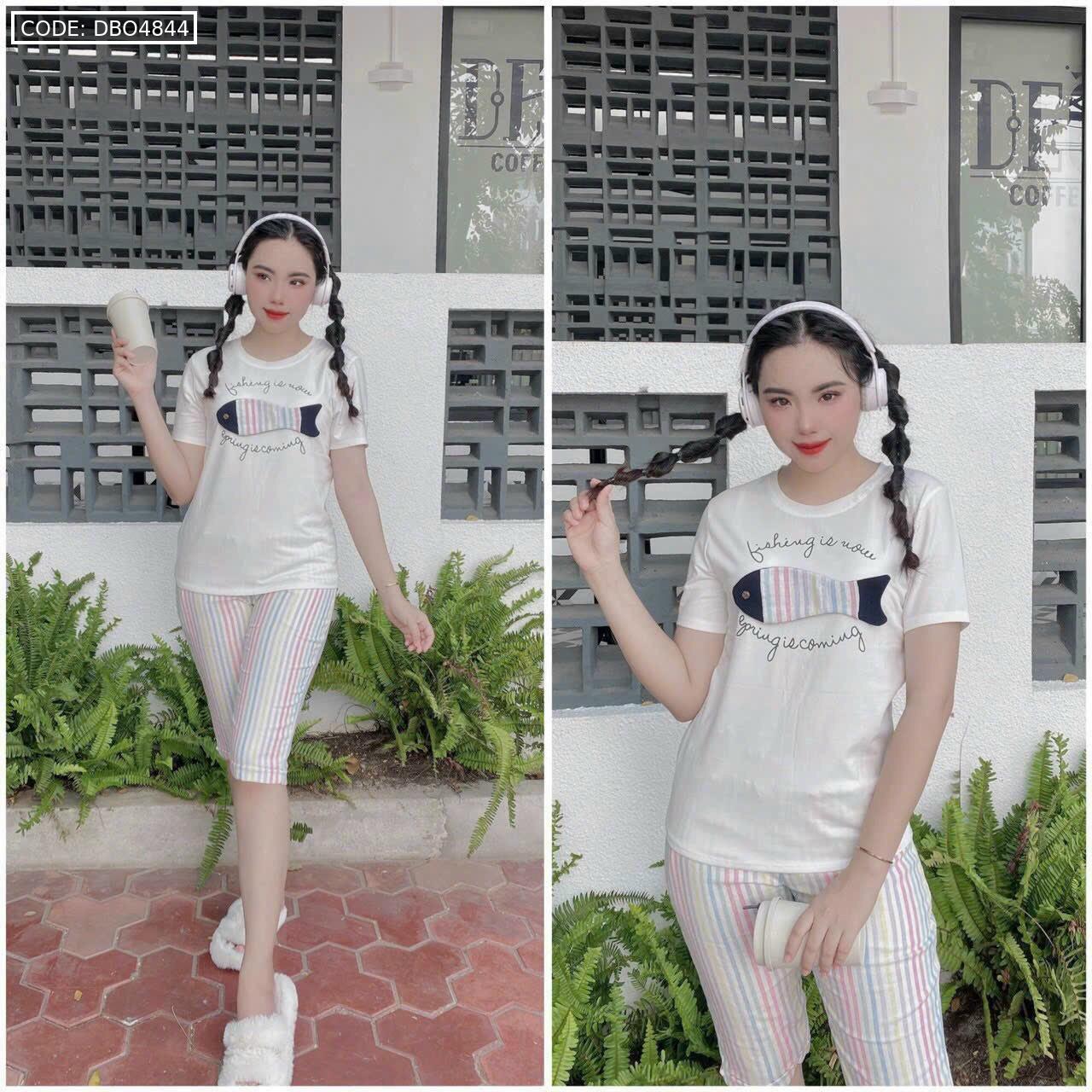 Bỏ sỉ đồ bộ quần lửng màu sọc áo tay ngắn in hình cá