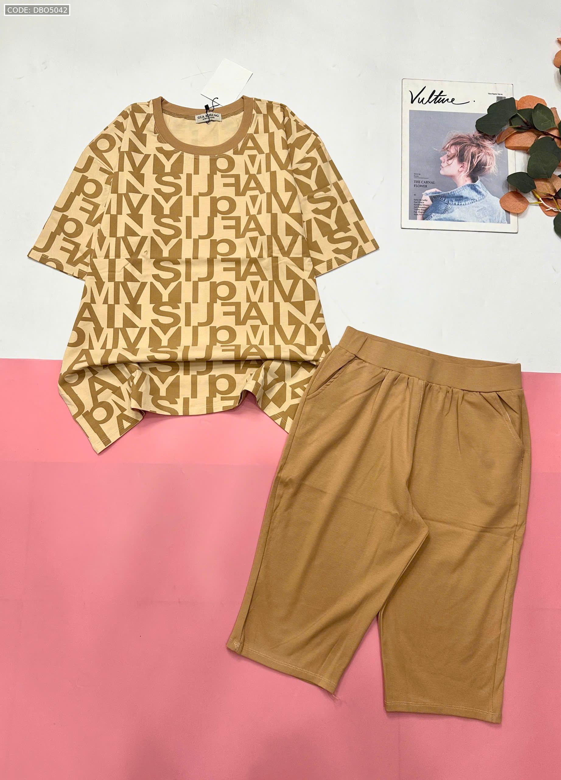 Bỏ sỉ đồ bộ quần lửng màu trơn áo tay ngắn in nhiều chữ đẹp