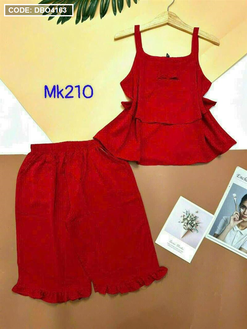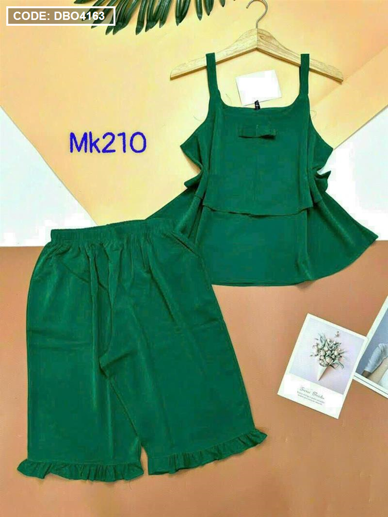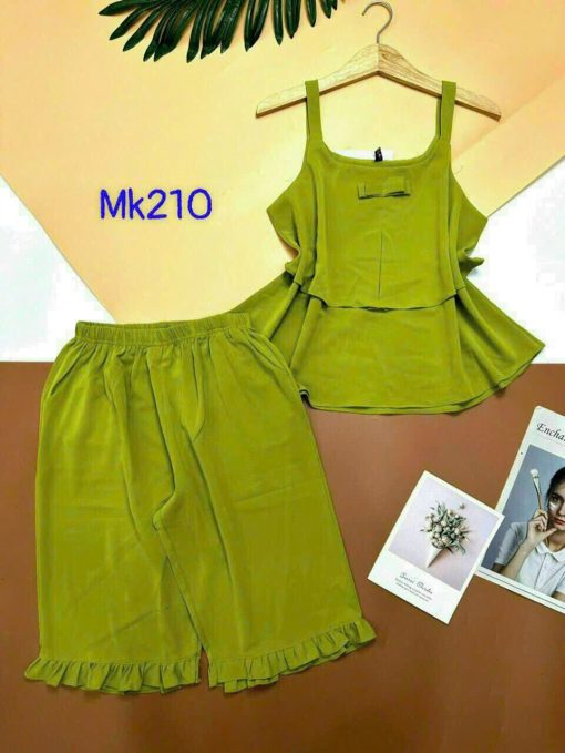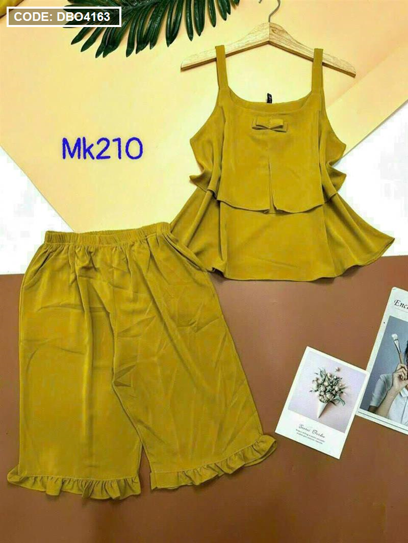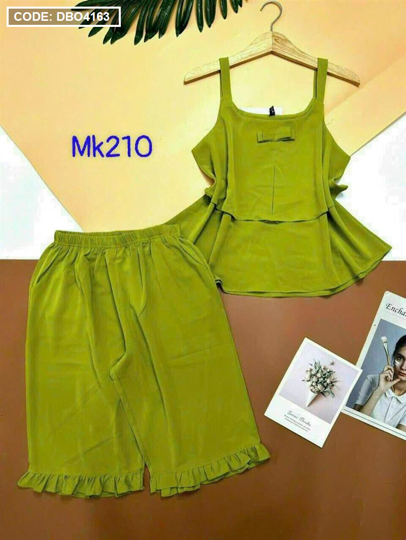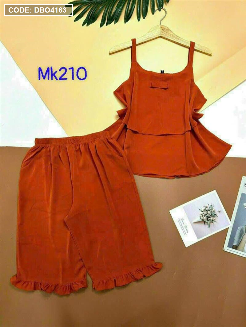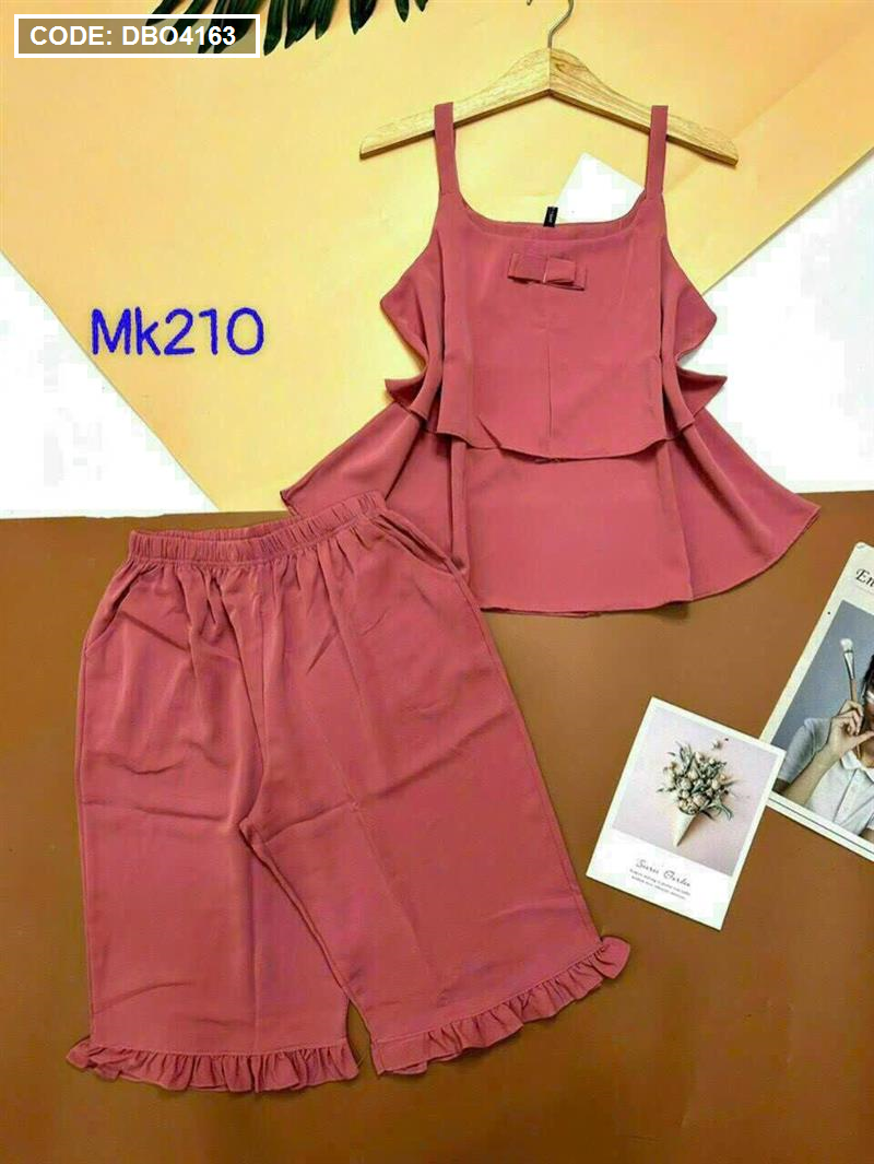 Bỏ sỉ đồ bộ quần lửng viền bèo áo dây 2 tầng màu trơn