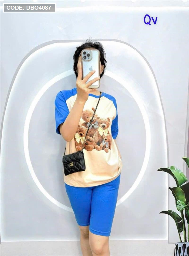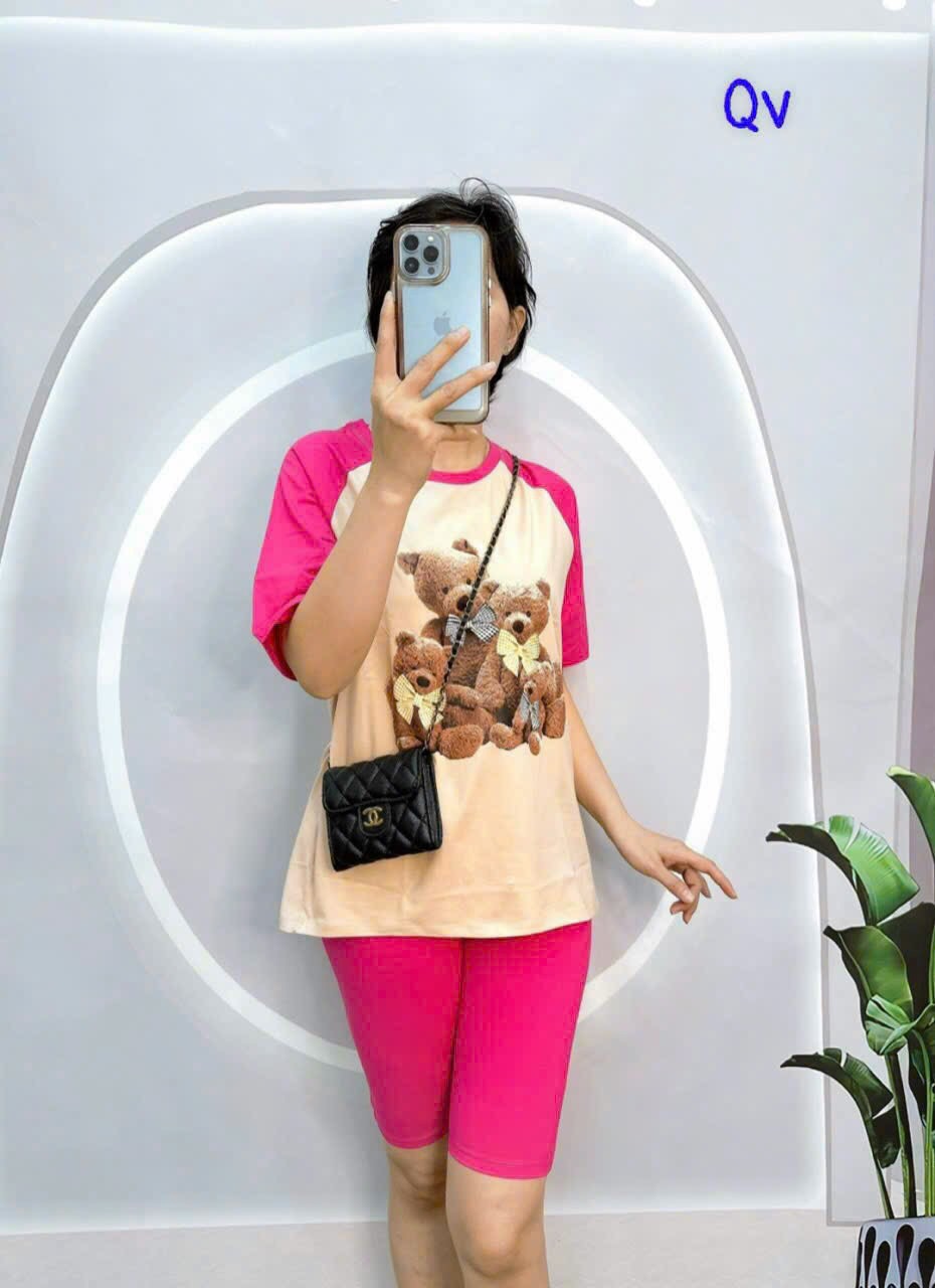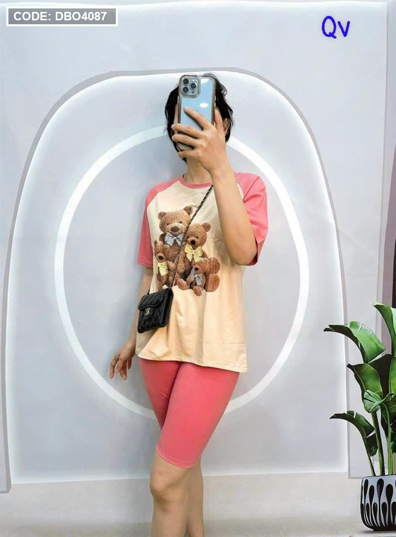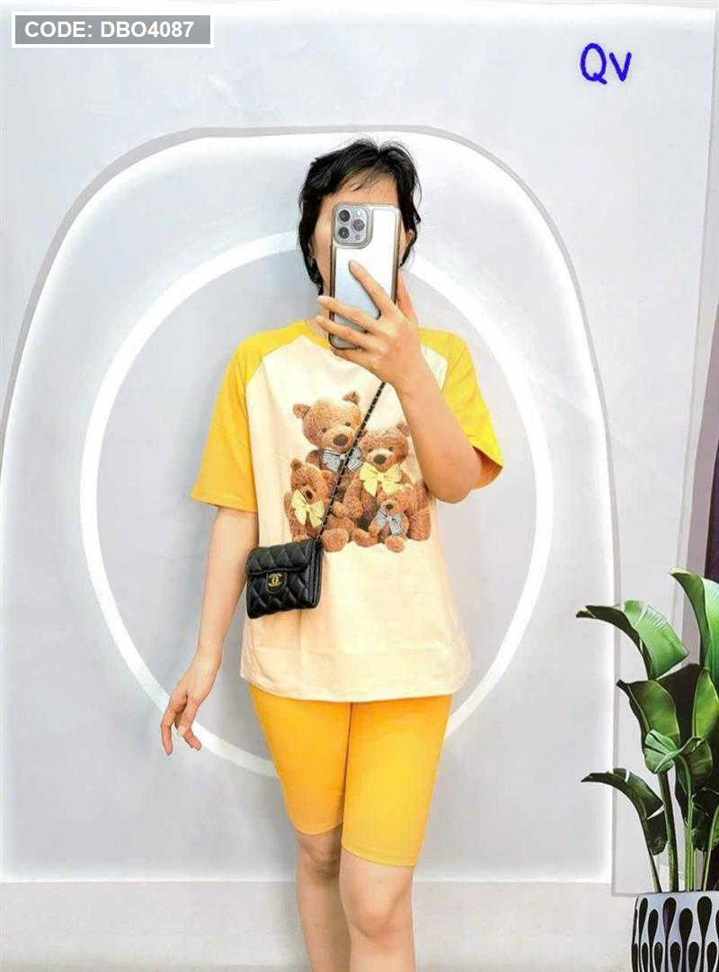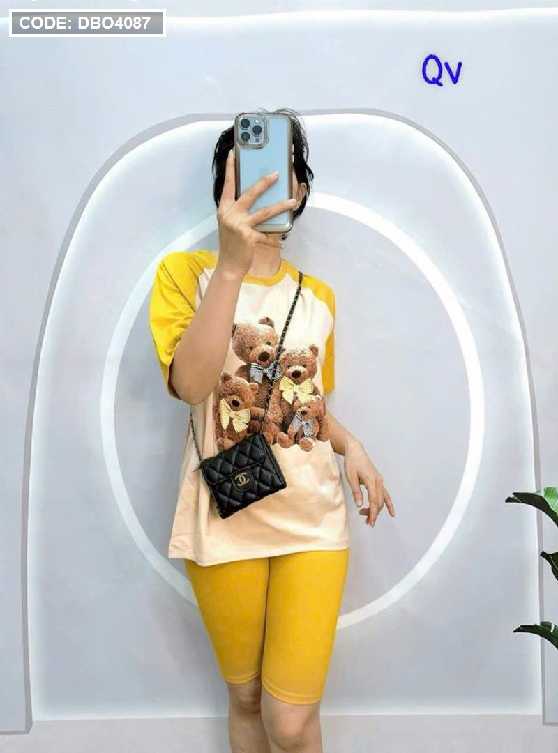 Bỏ sỉ đồ bộ quần ngố áo tay ngắn in hình gấu