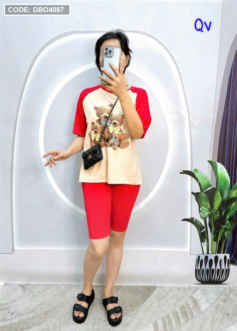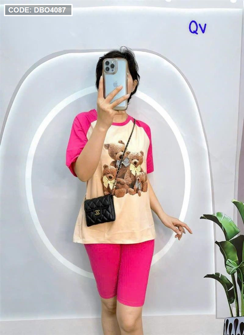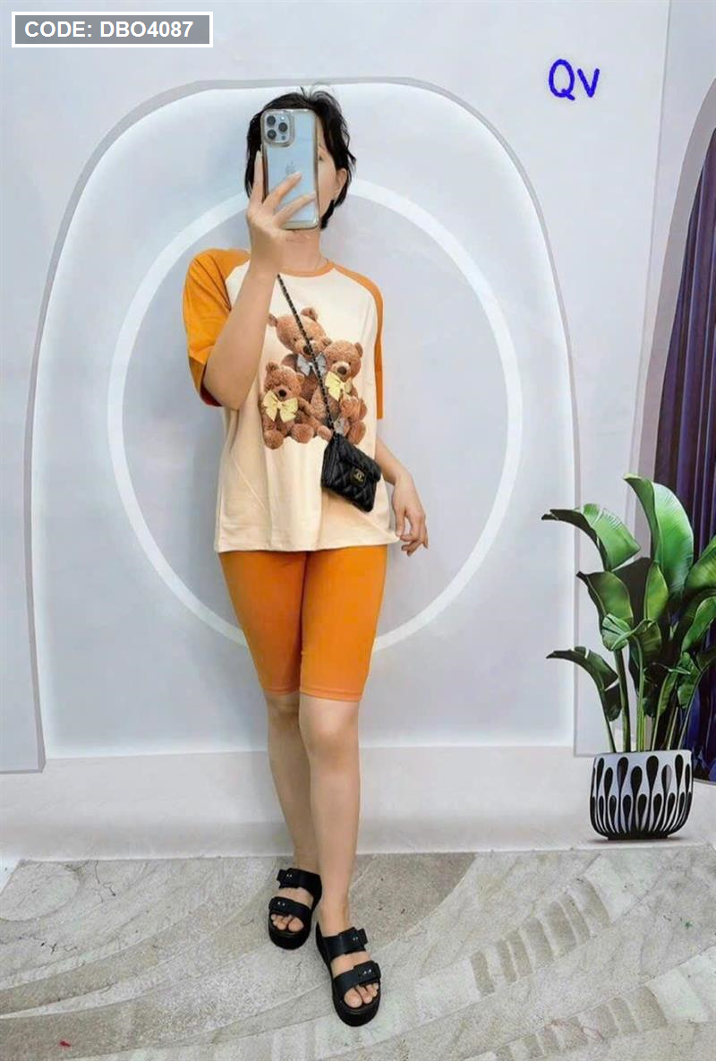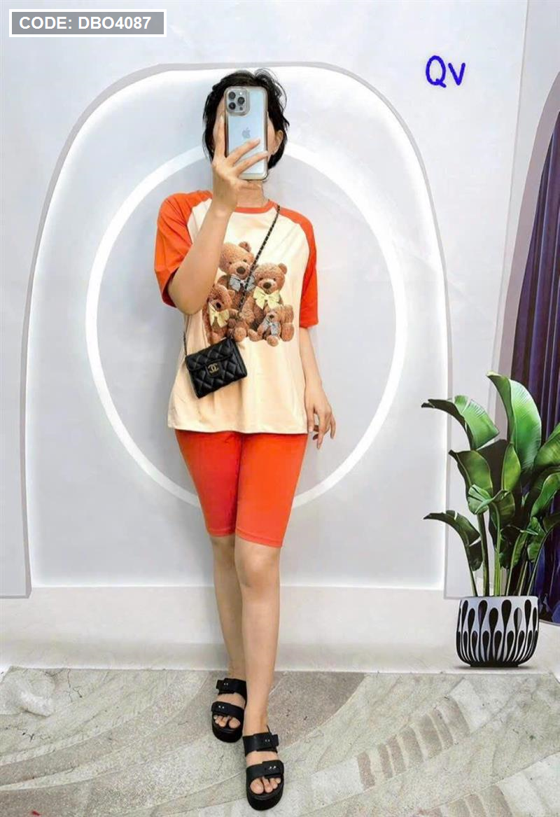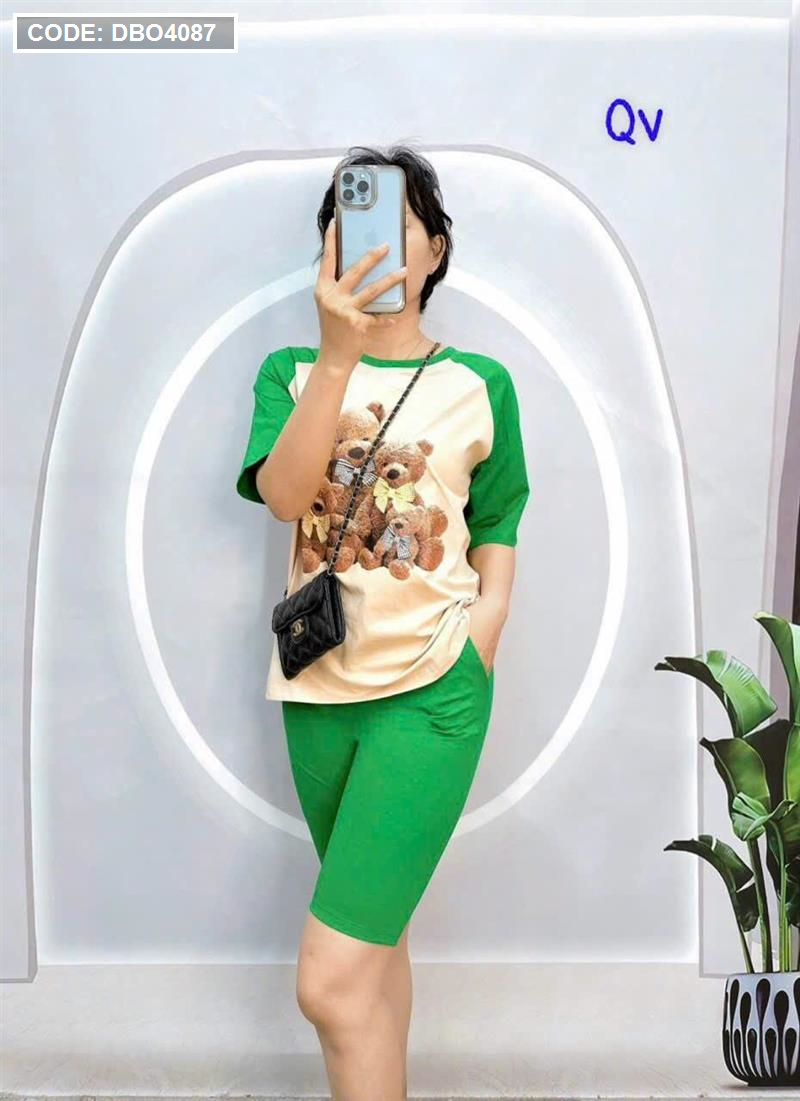 Bỏ sỉ đồ bộ quần ngố áo tay ngắn in hình gấu