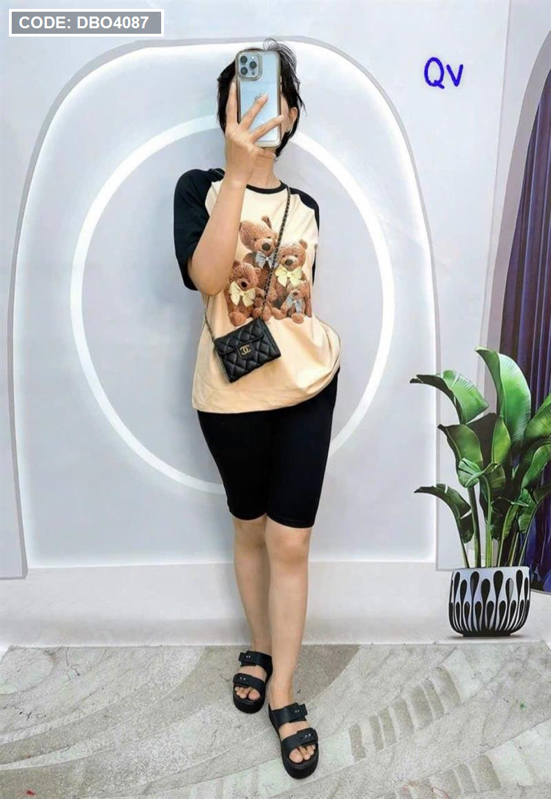 Đồ bộ quần ngố áo tay ngắn in hình gấu