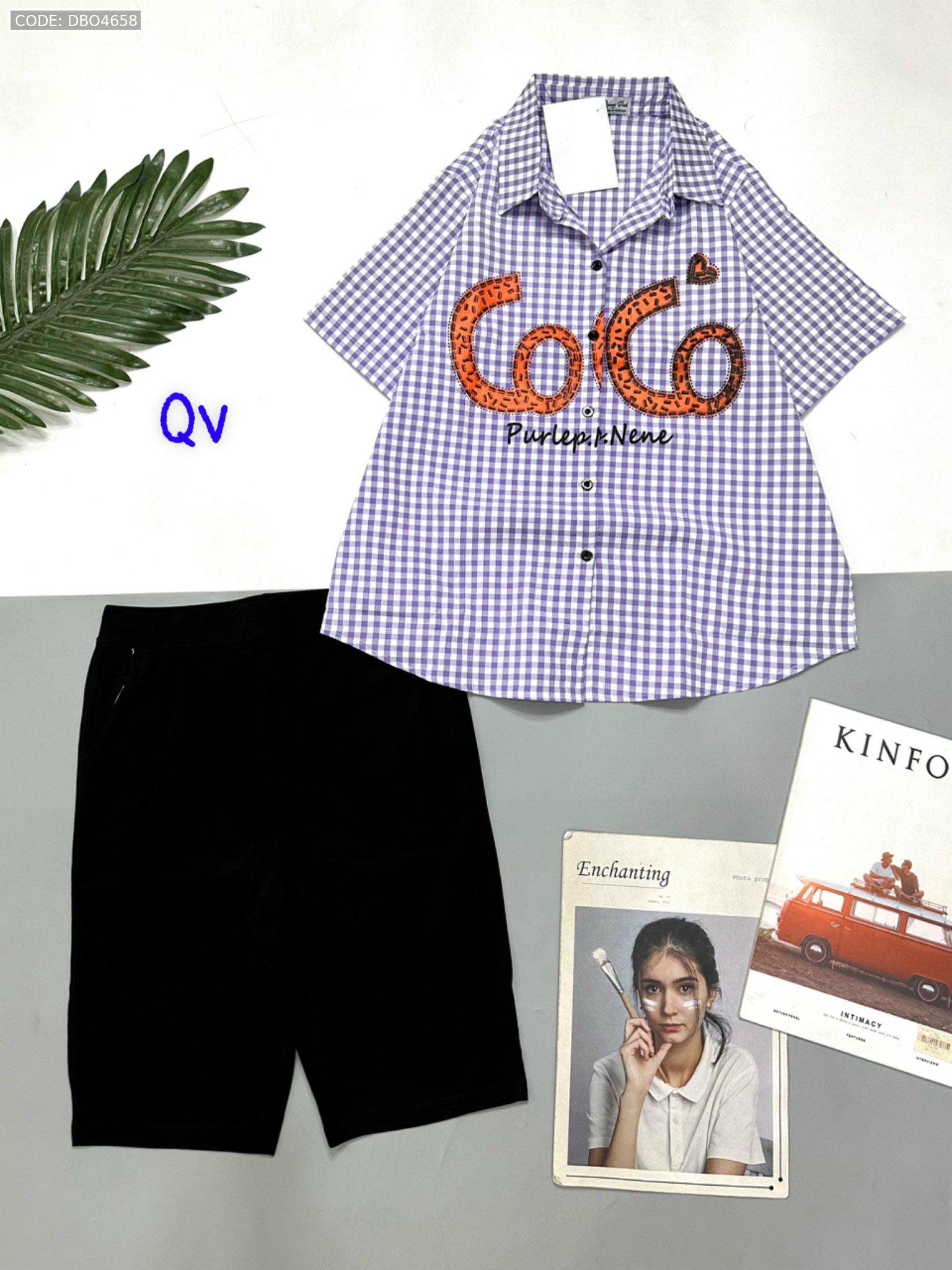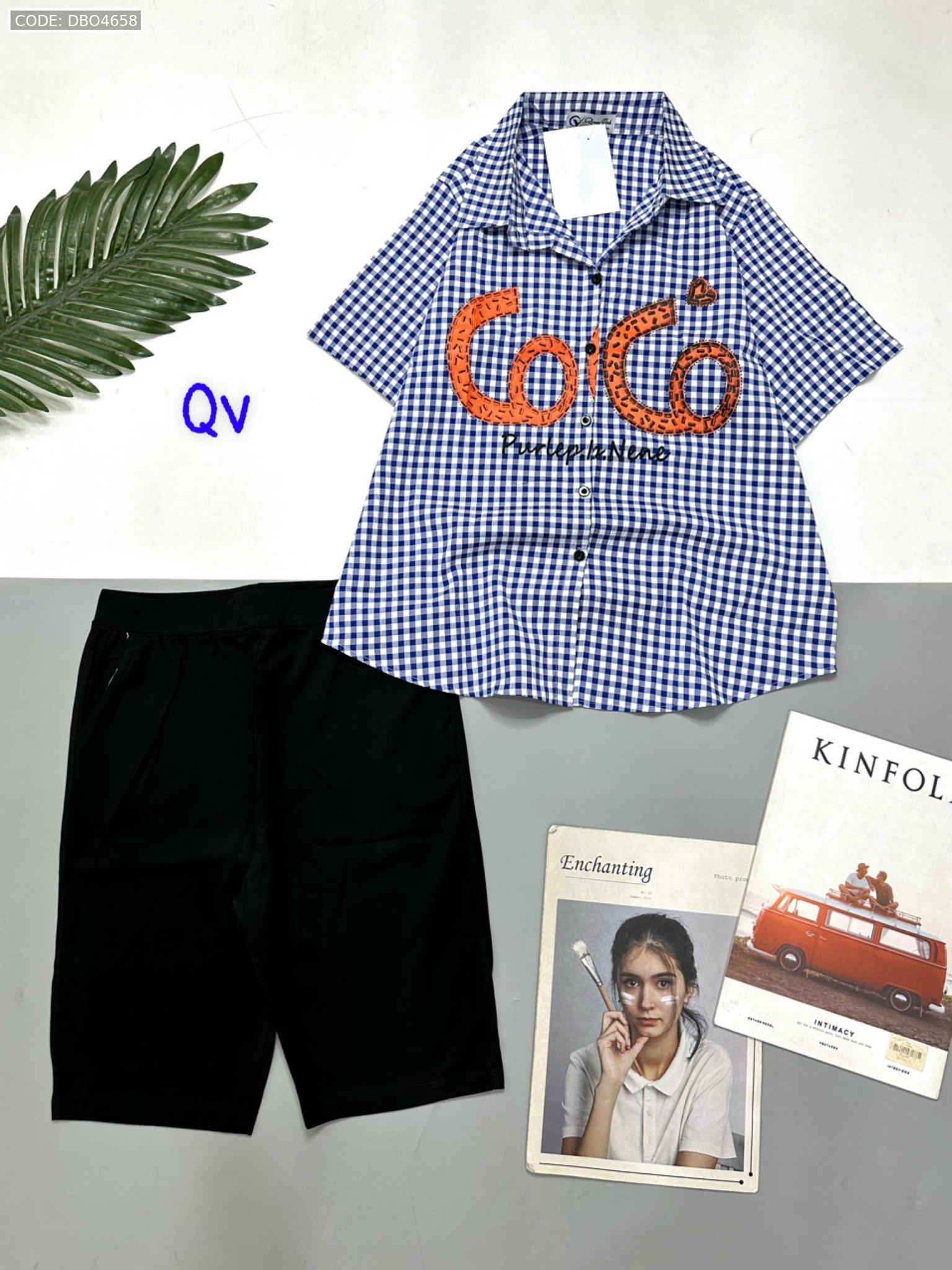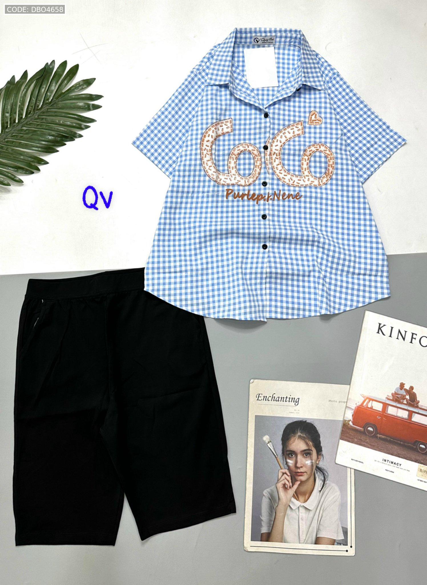 Bỏ sỉ đồ bộ quần ngố đen áo sơ mi tay ngắn in chữ COCO