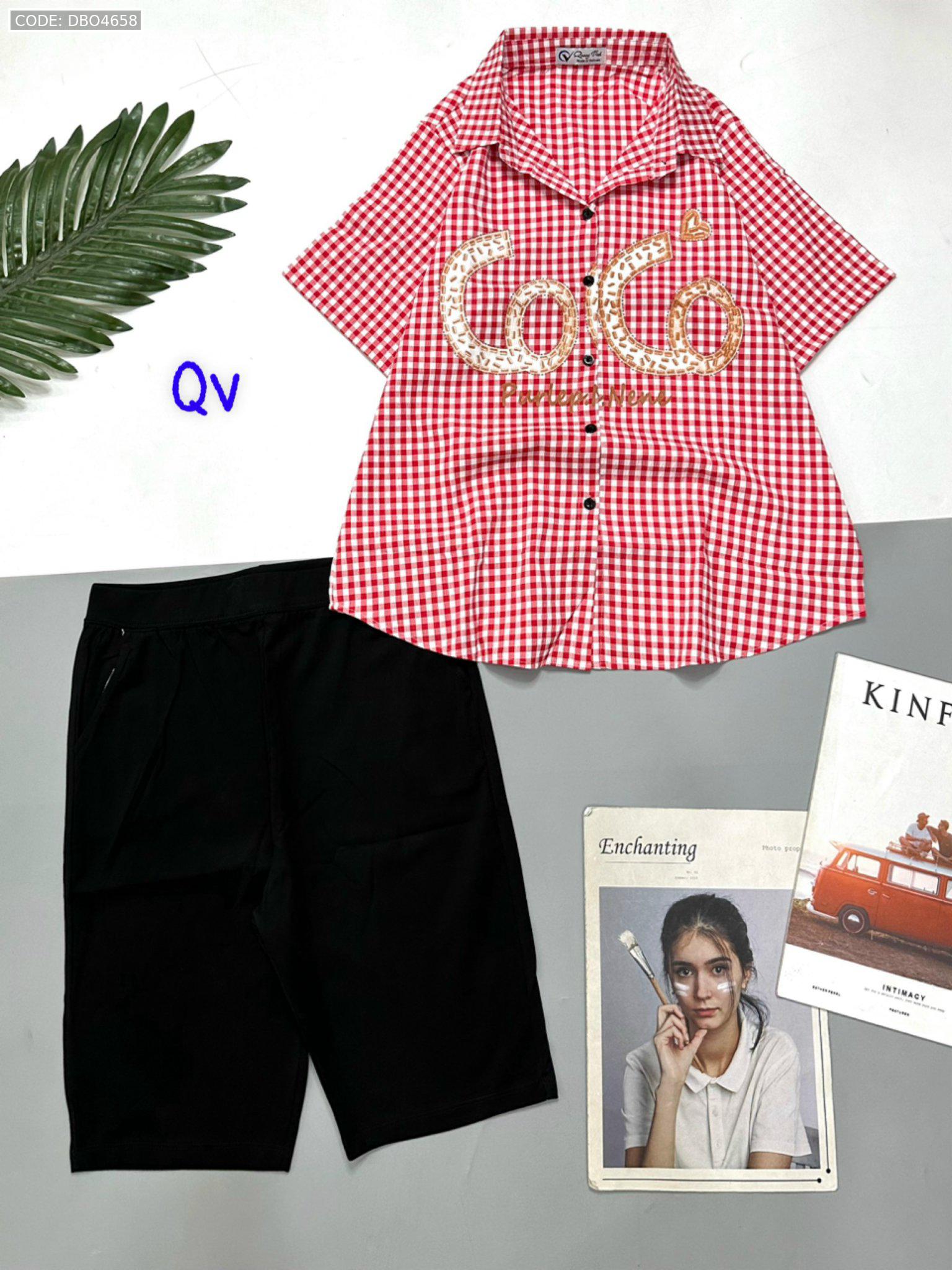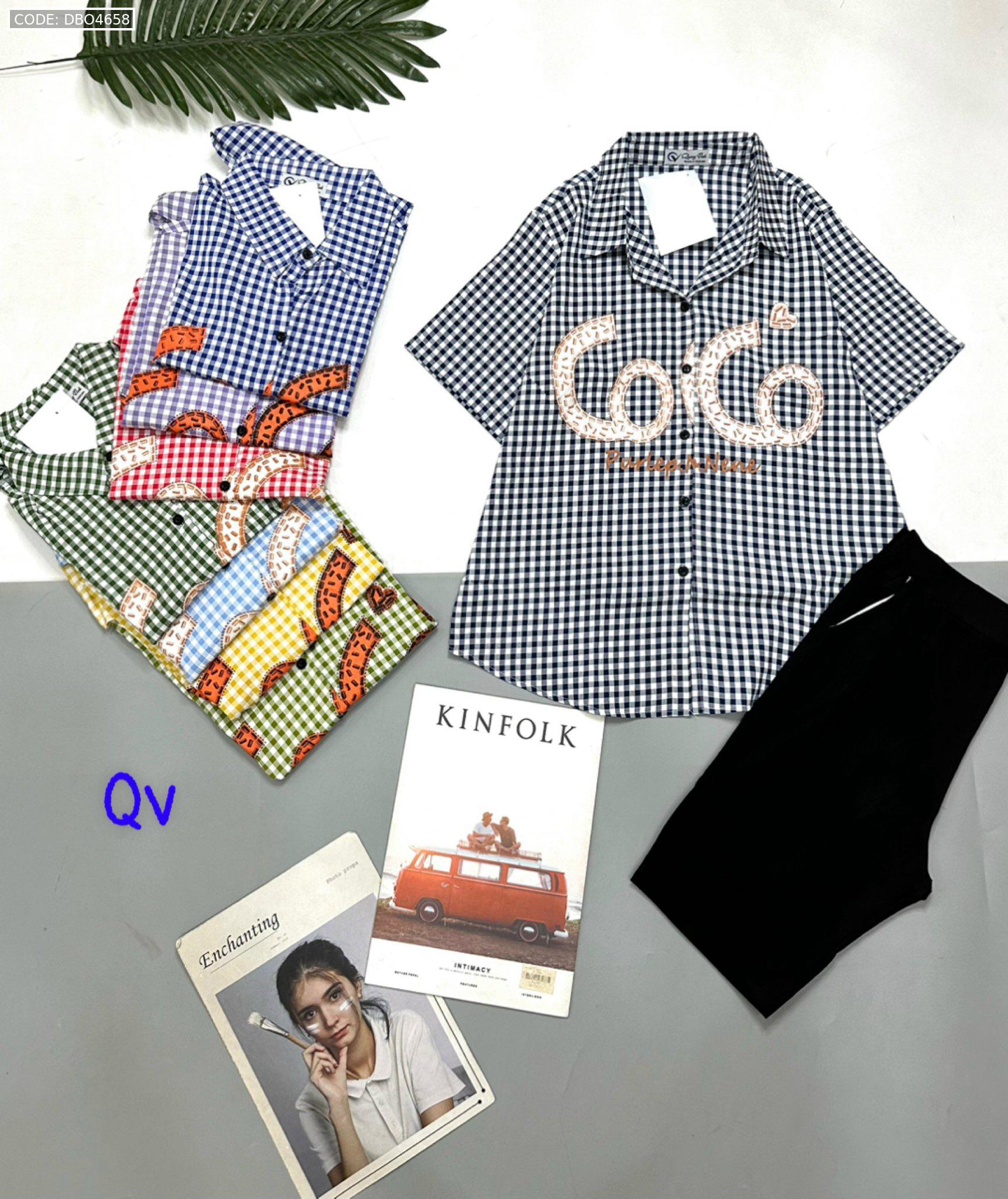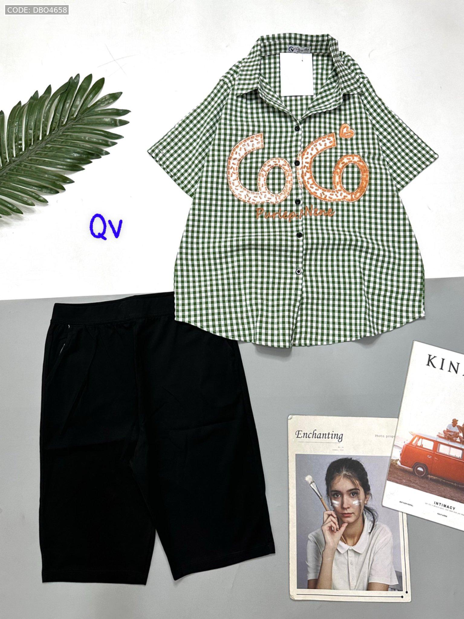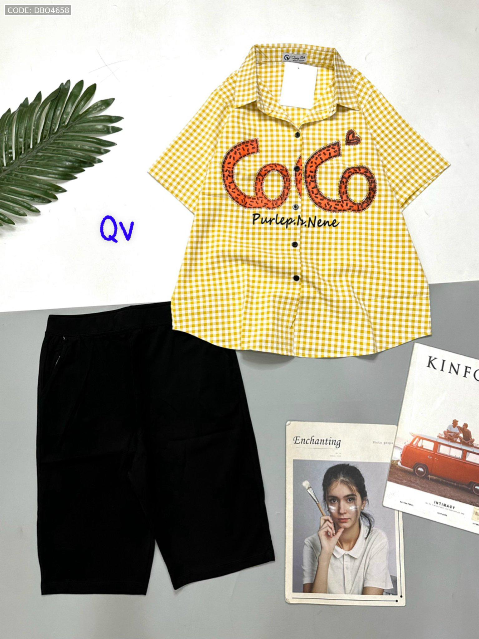 Bỏ sỉ đồ bộ quần ngố đen áo sơ mi tay ngắn in chữ COCO