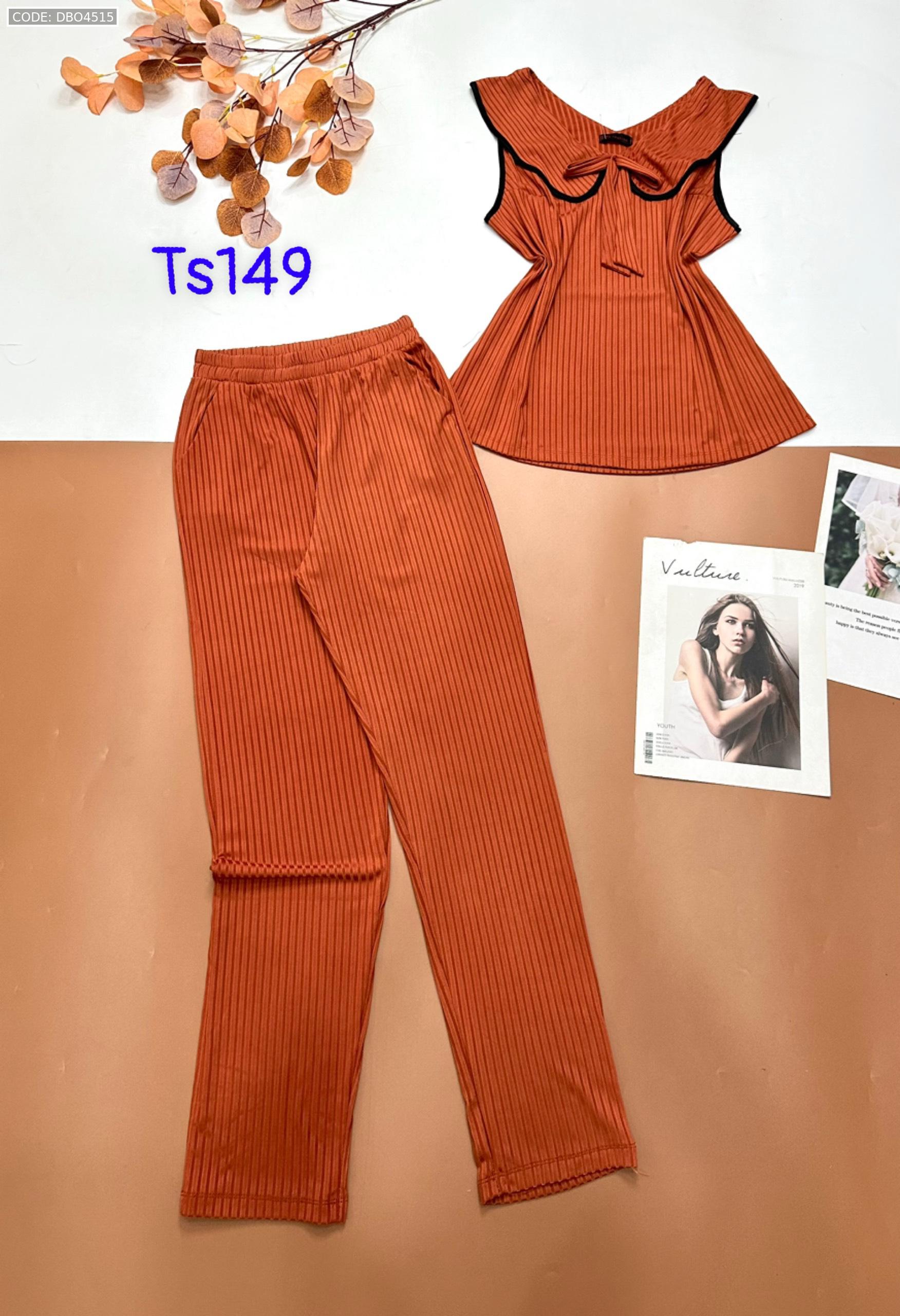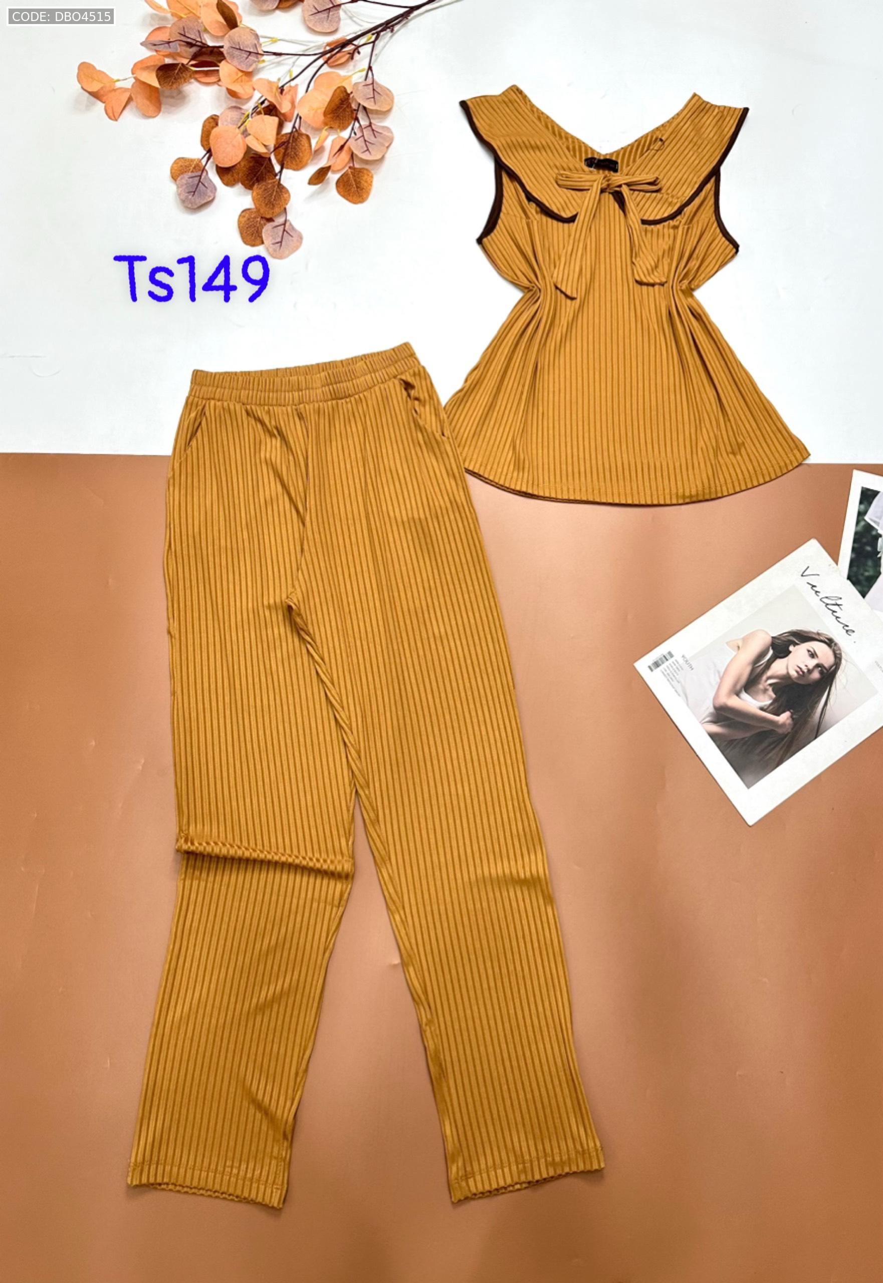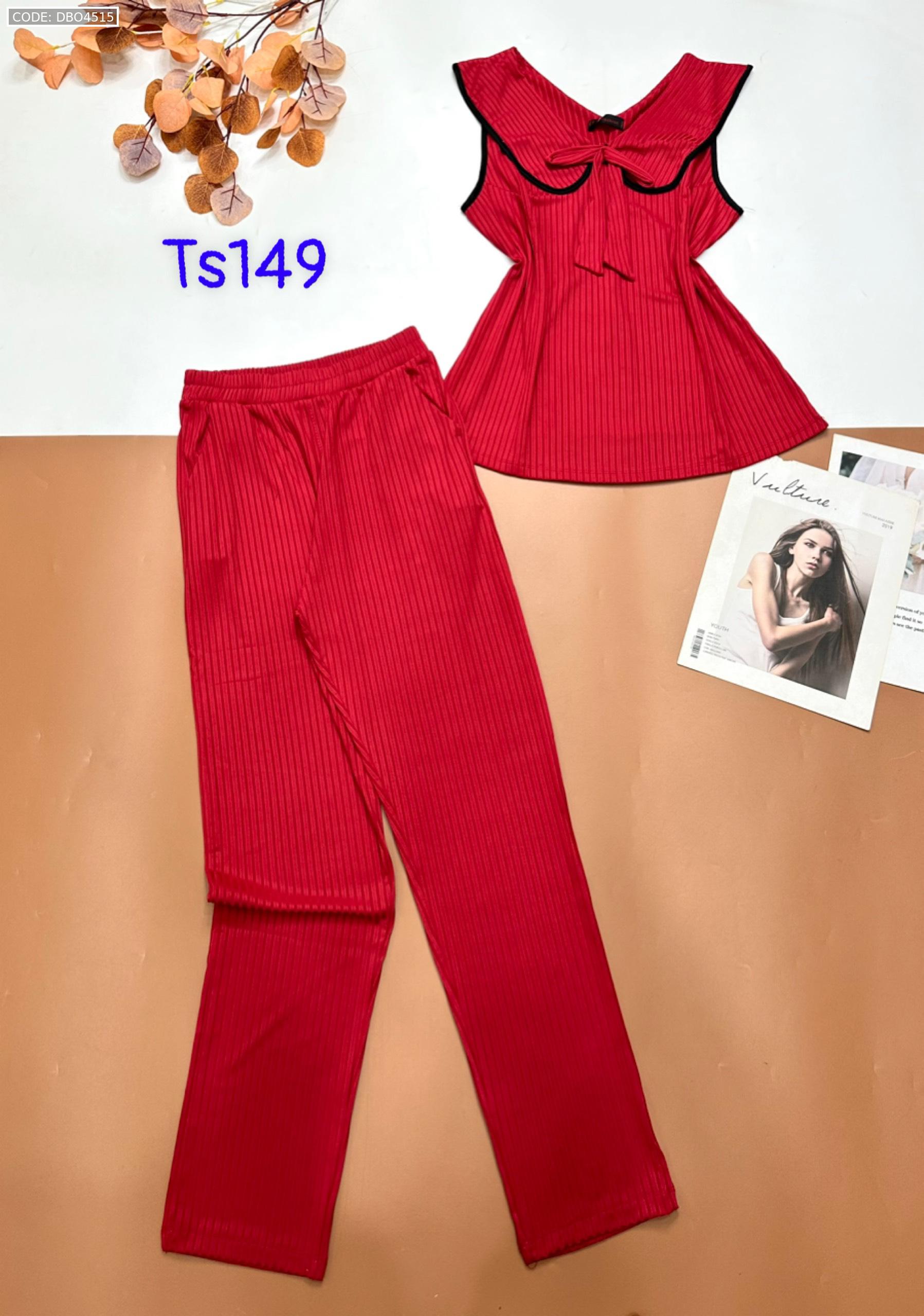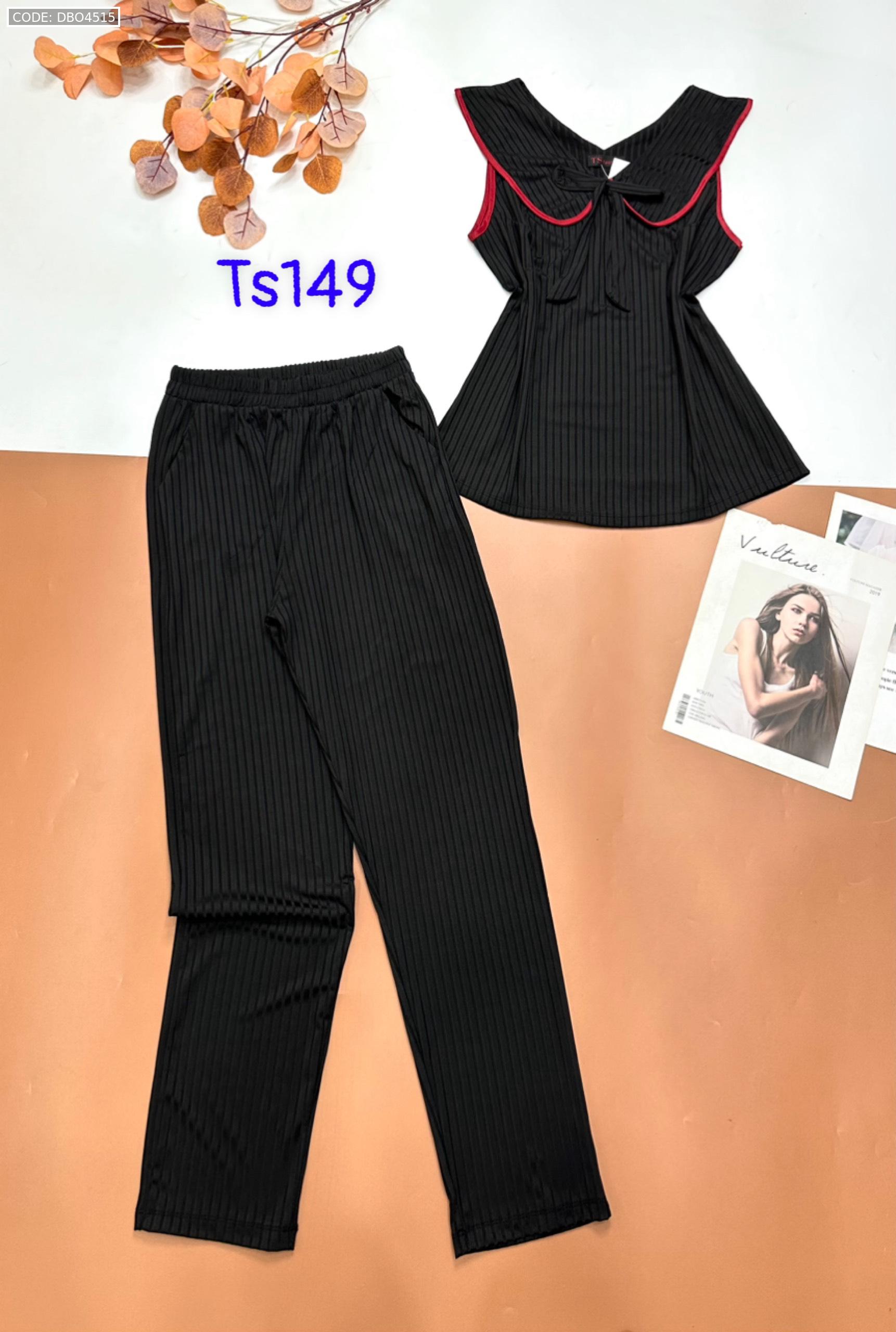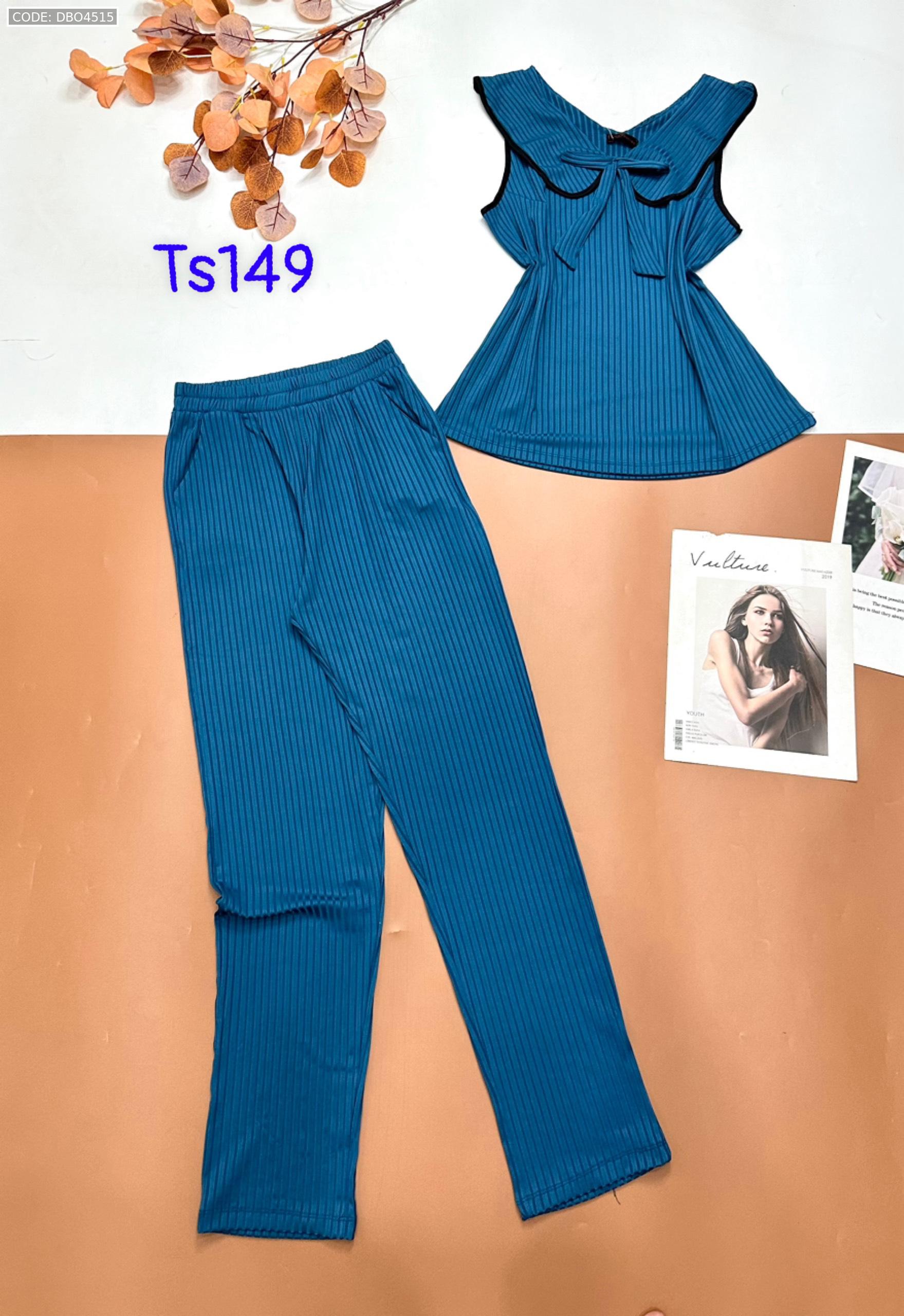Bỏ sỉ đồ bộ tăm đũa quần dài áo tay ngắn cổ bẻ viền nơ thắt