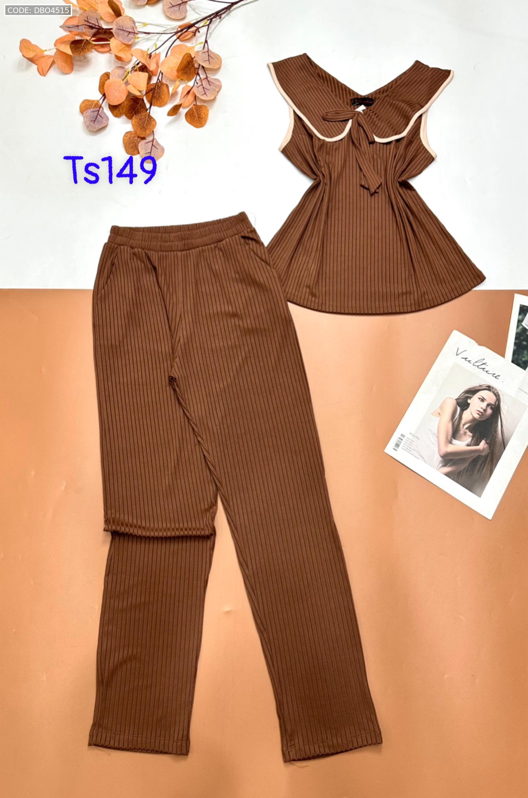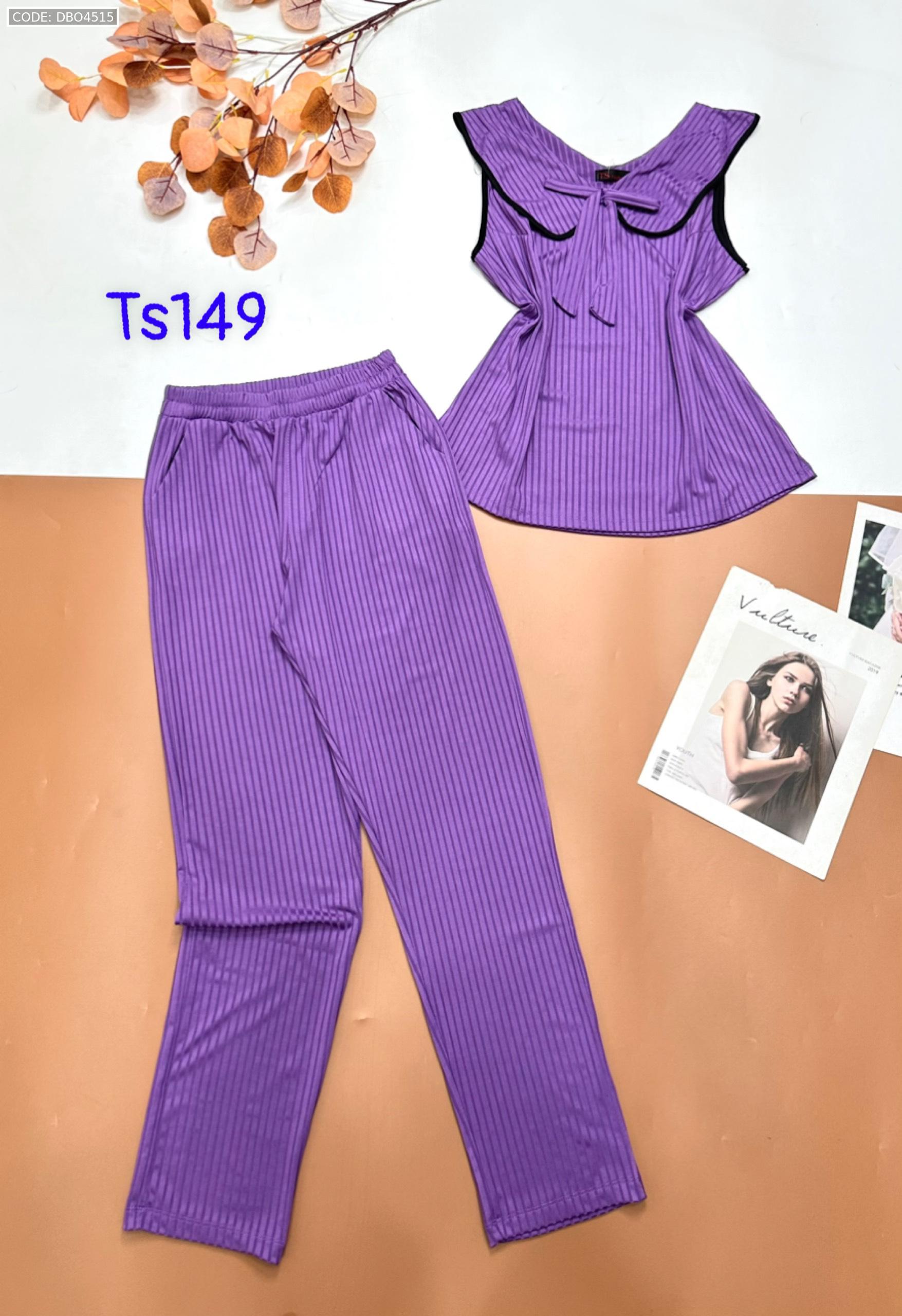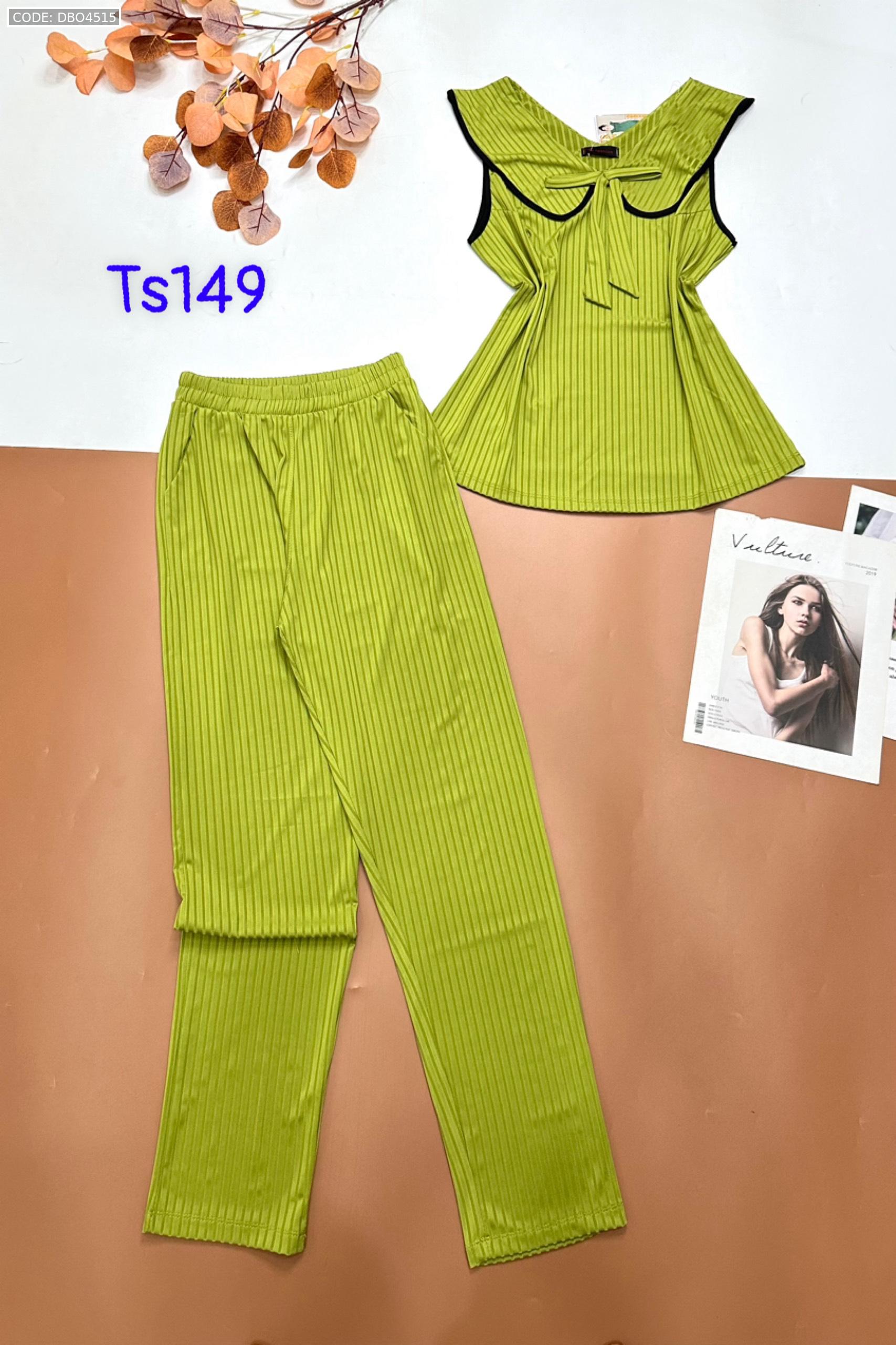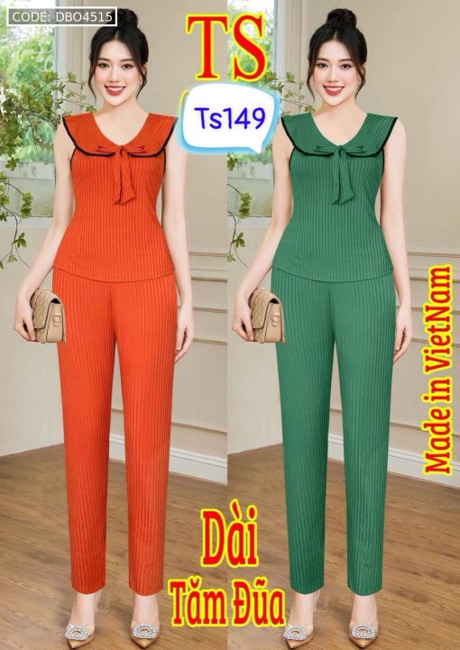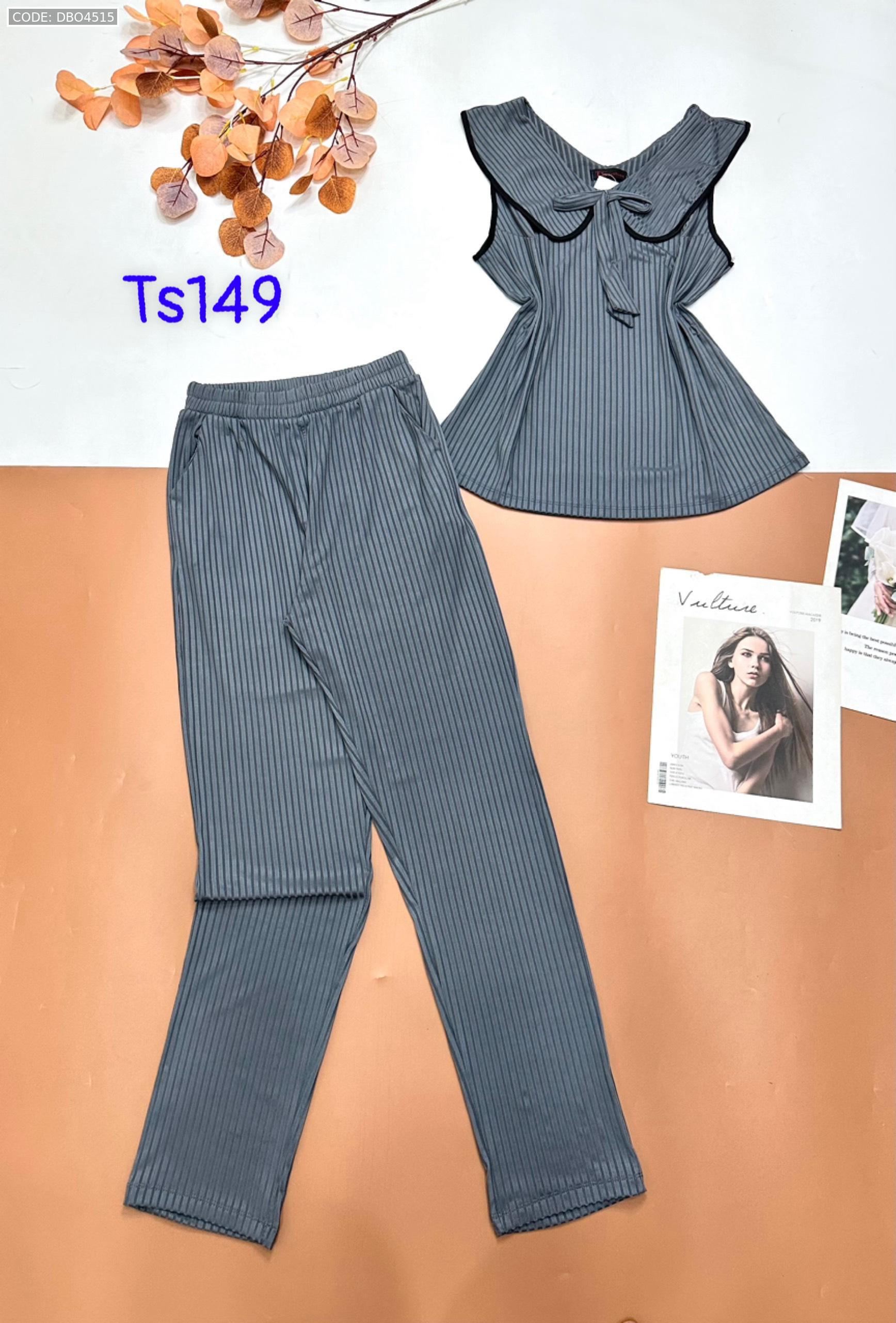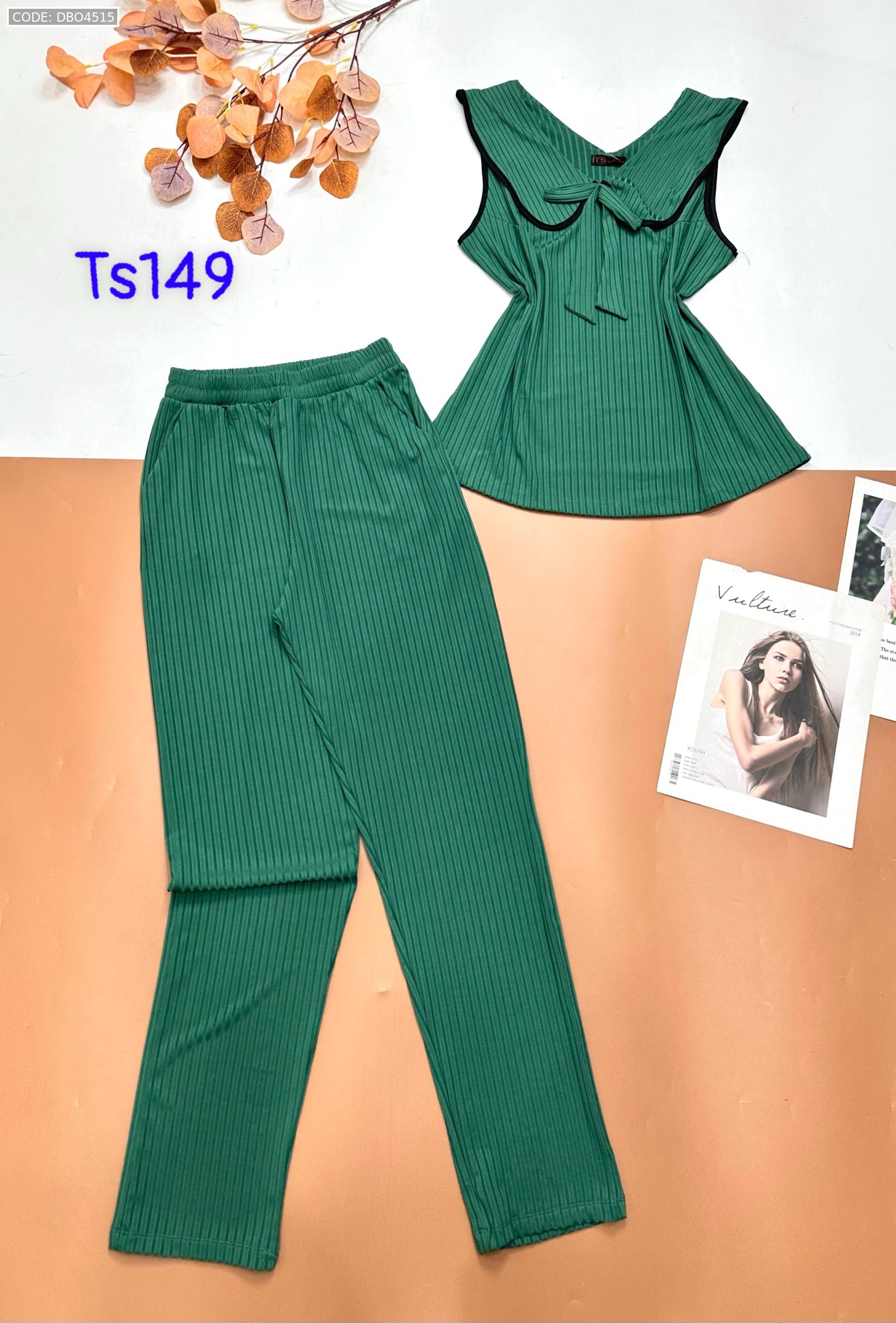 Bỏ sỉ đồ bộ tăm đũa quần dài áo tay ngắn cổ bẻ viền nơ thắt