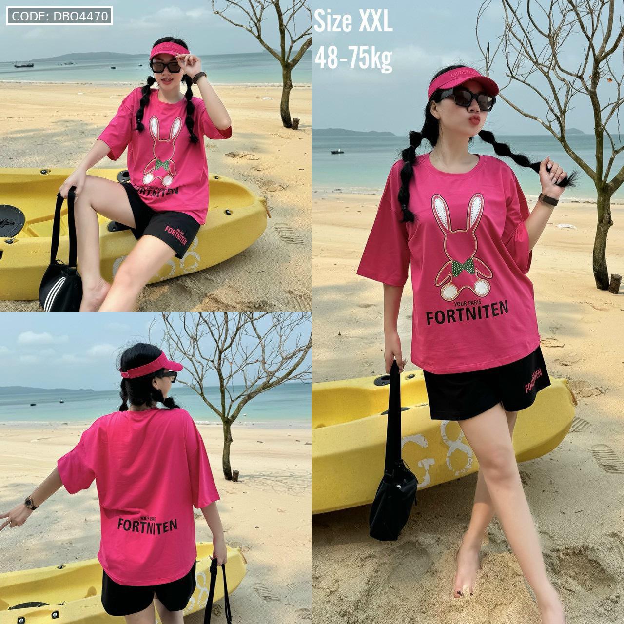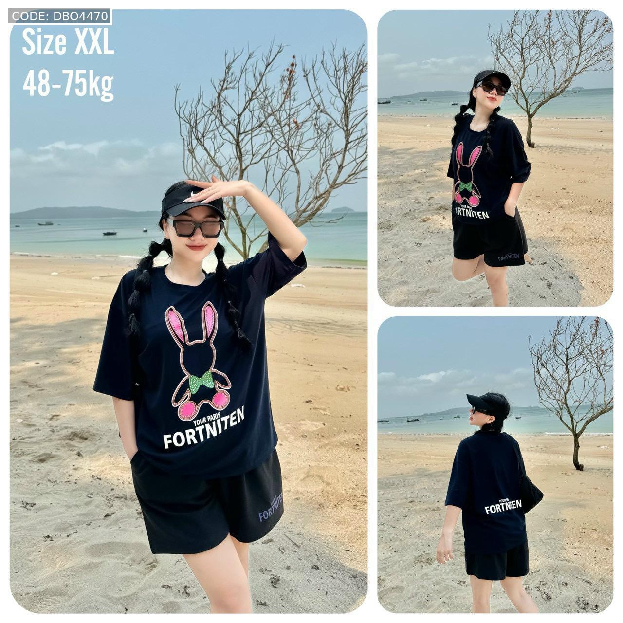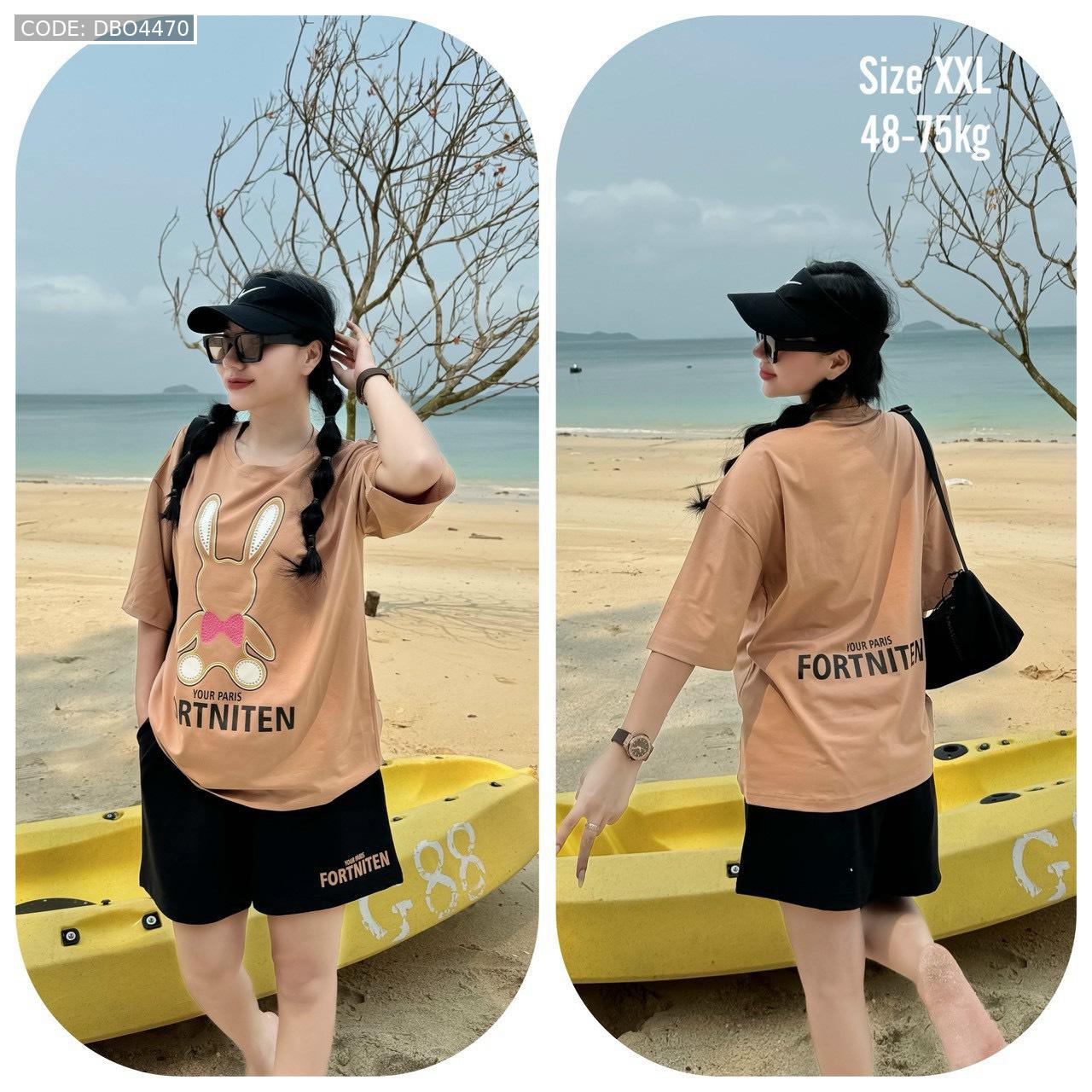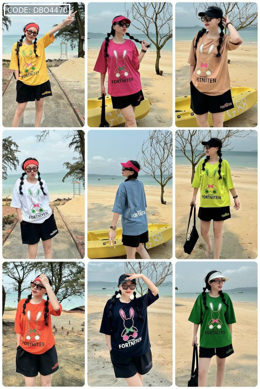 Bỏ sỉ đồ bộ thun cotton quần đùi áo tay ngắn in thỏ form rộng 48-75kg
