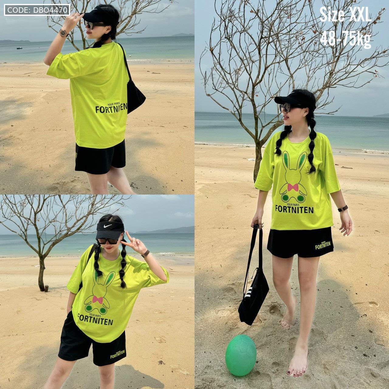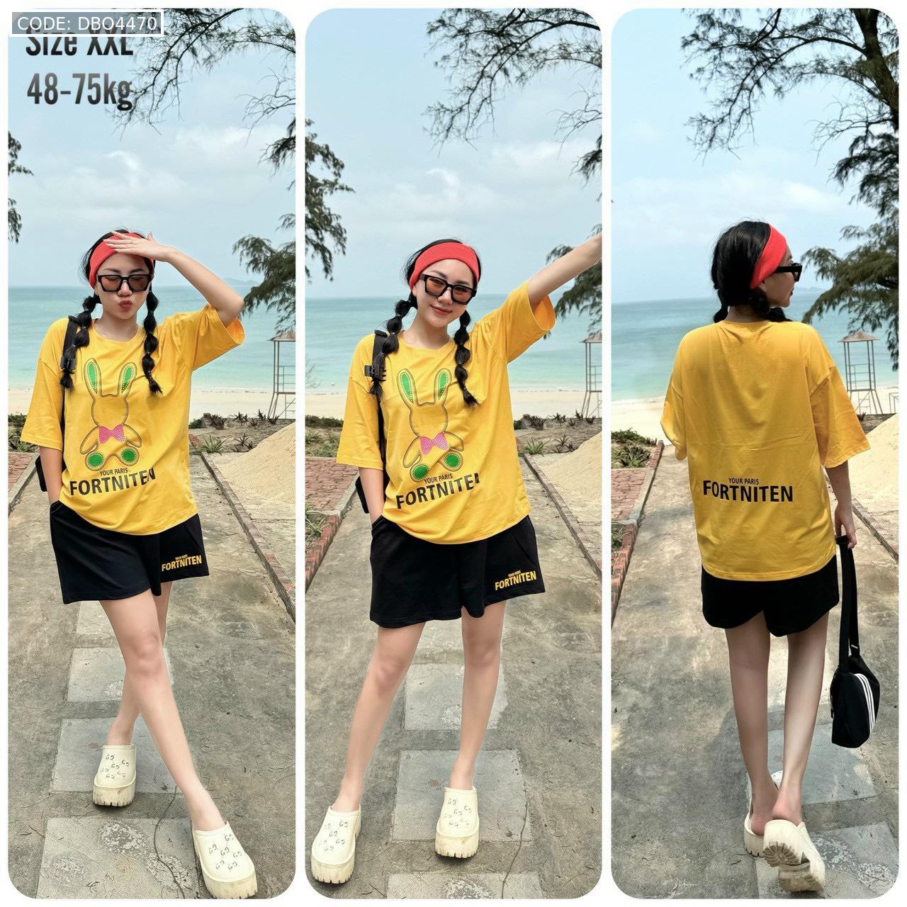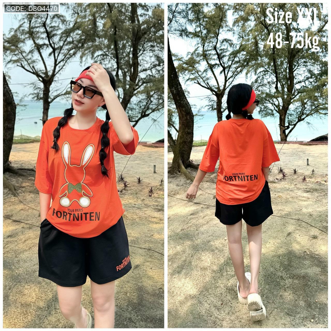 Bỏ sỉ đồ bộ thun cotton quần đùi áo tay ngắn in thỏ form rộng 48-75kg