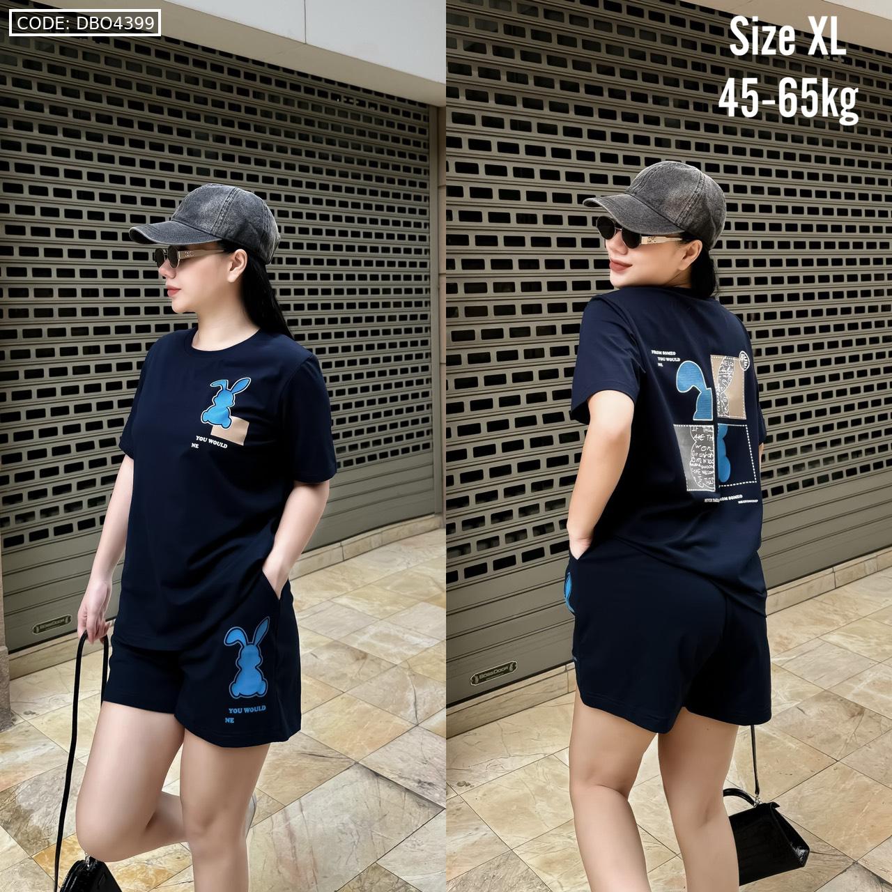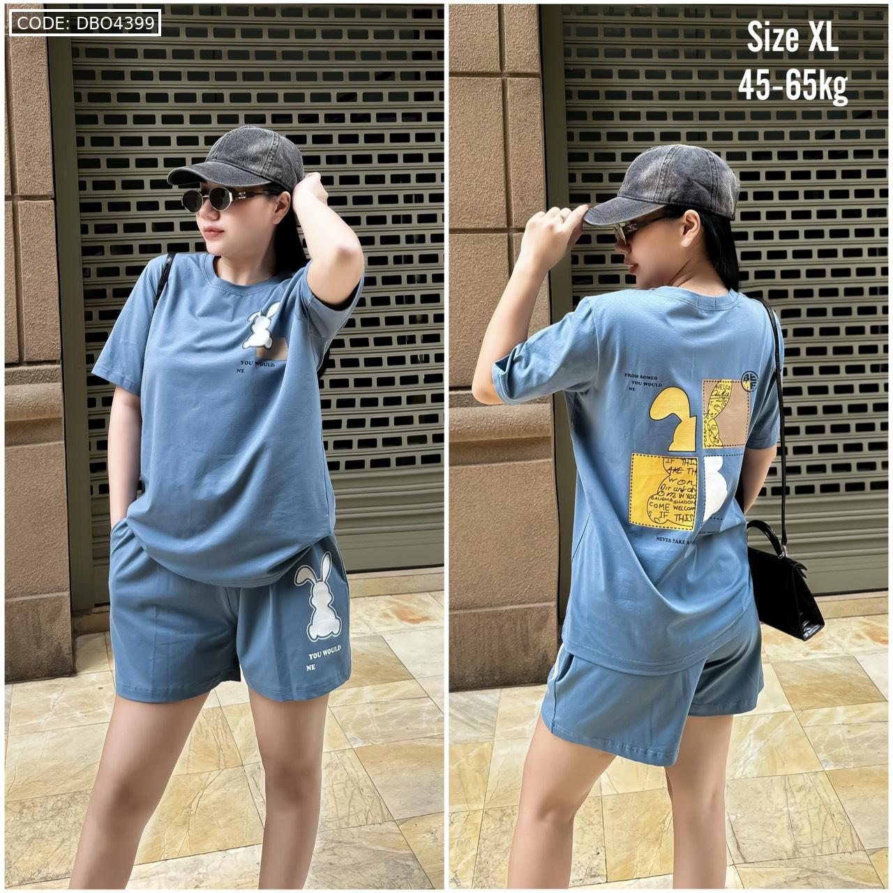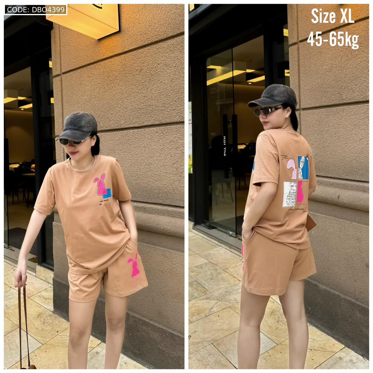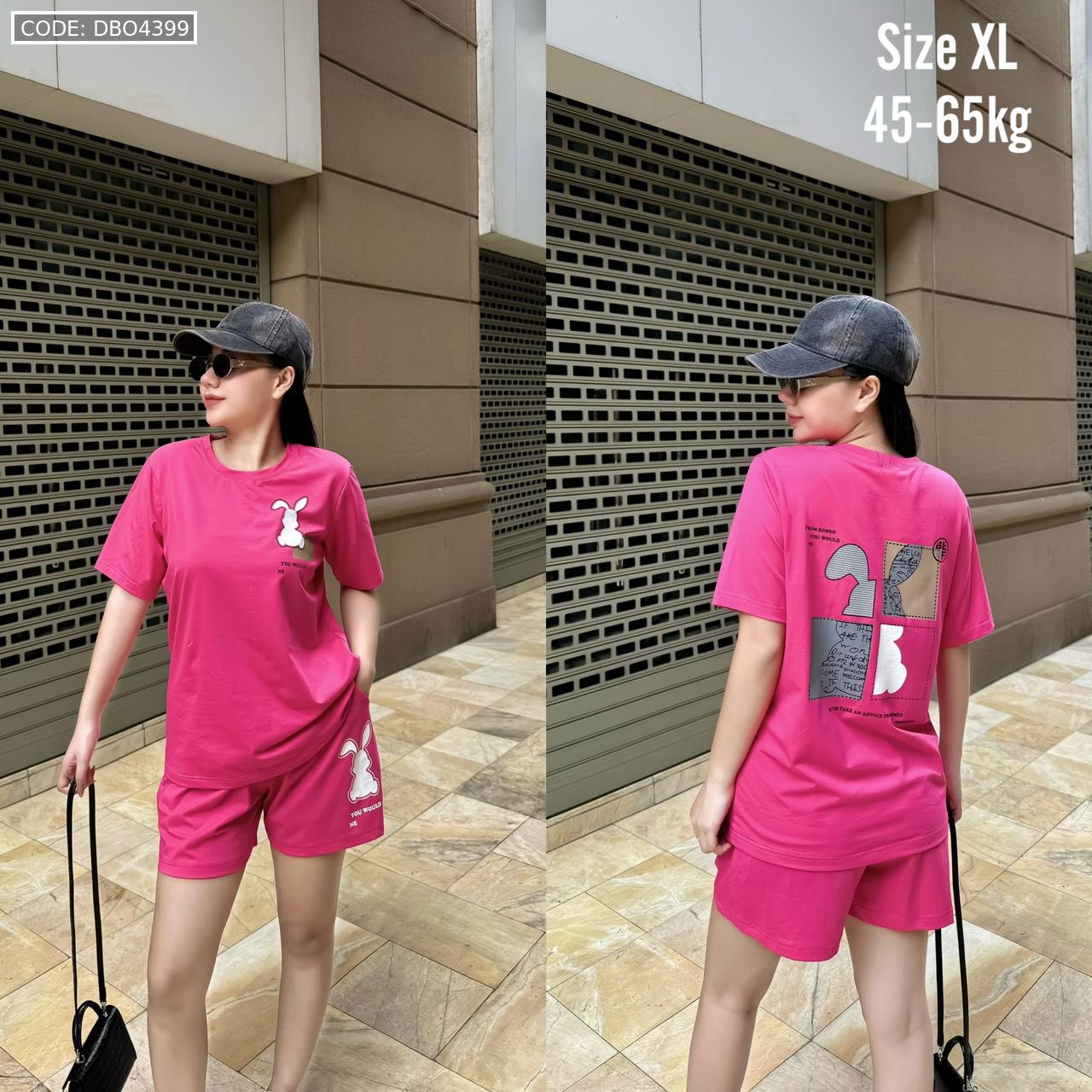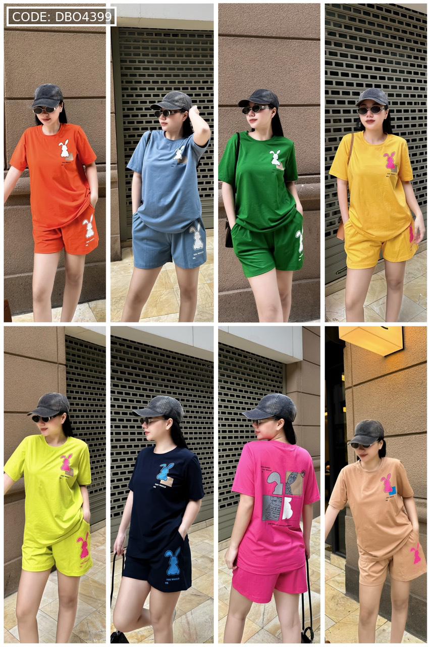Bỏ sỉ đồ bộ thun nữ quần đùi in con thỏ bên trái form rộng 65kg
