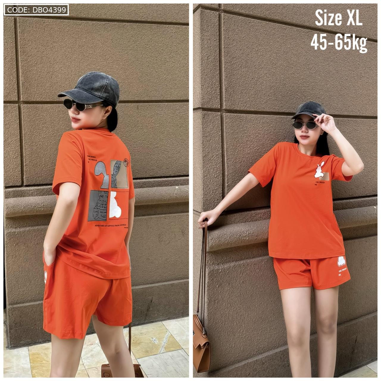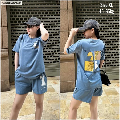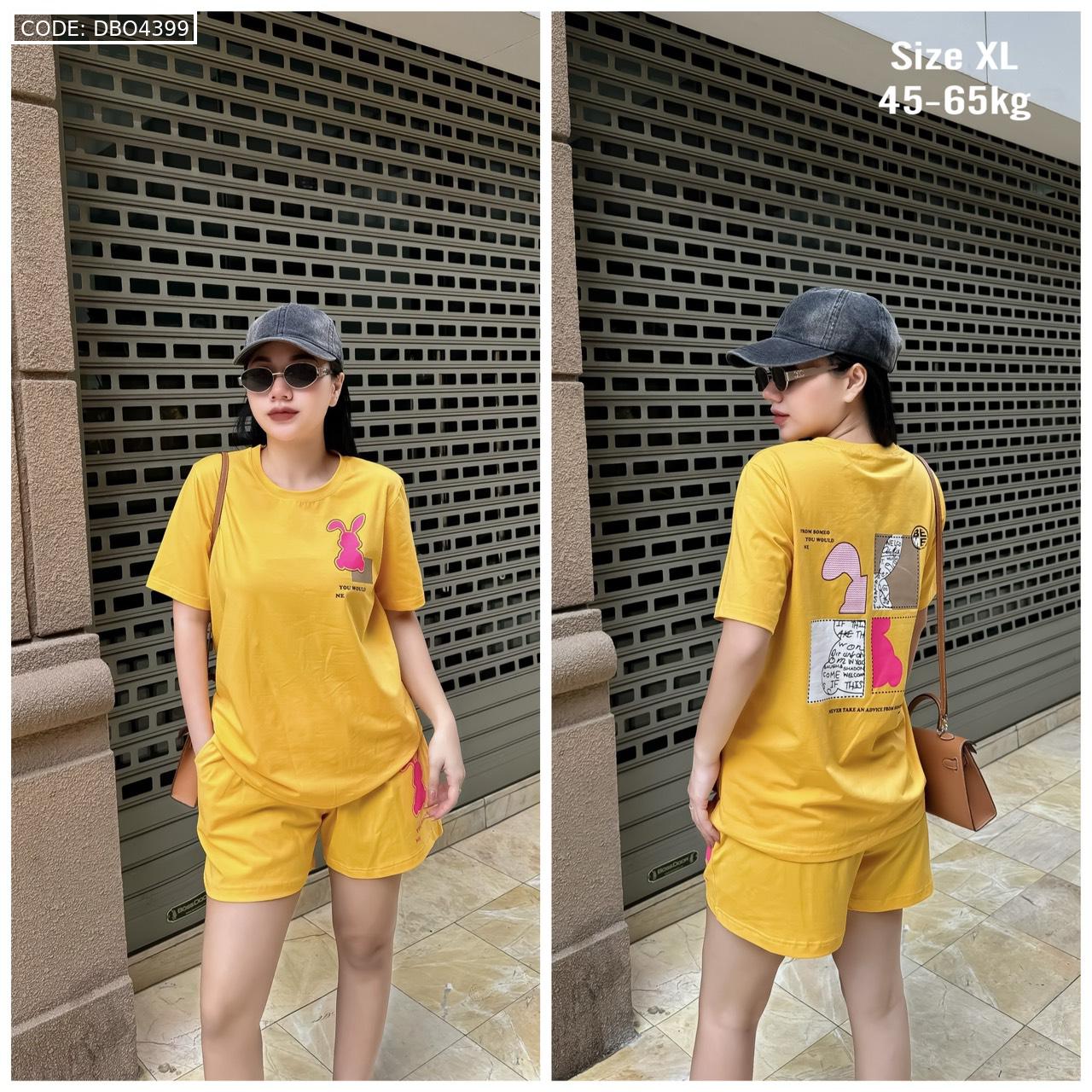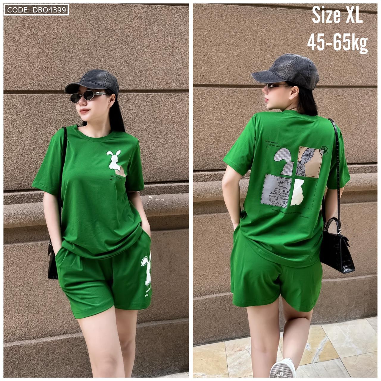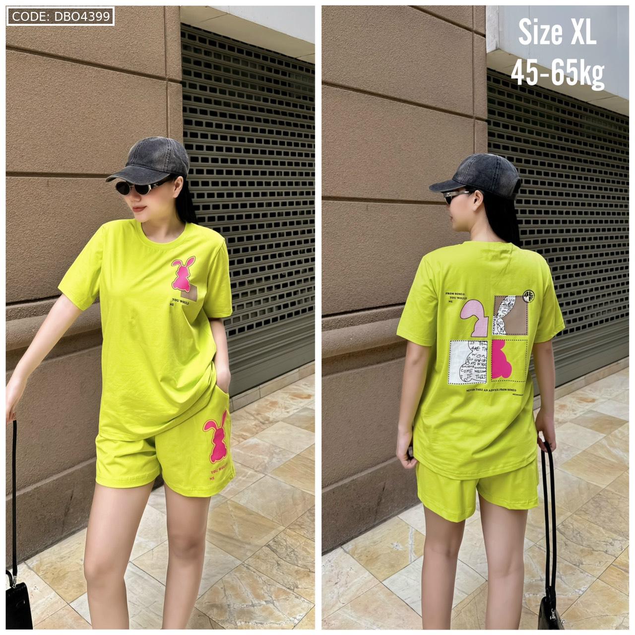 Bỏ sỉ đồ bộ thun nữ quần đùi in con thỏ bên trái form rộng 65kg