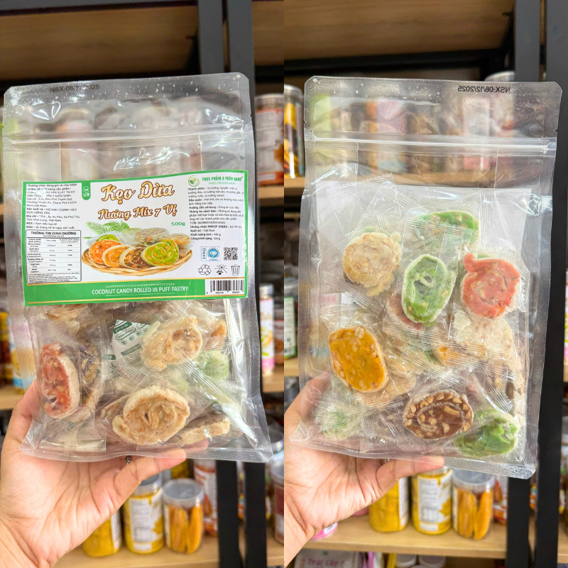 Bỏ sỉ kẹo Dừa Nướng Mix 7 Vị 500g – Túi Zip Trong