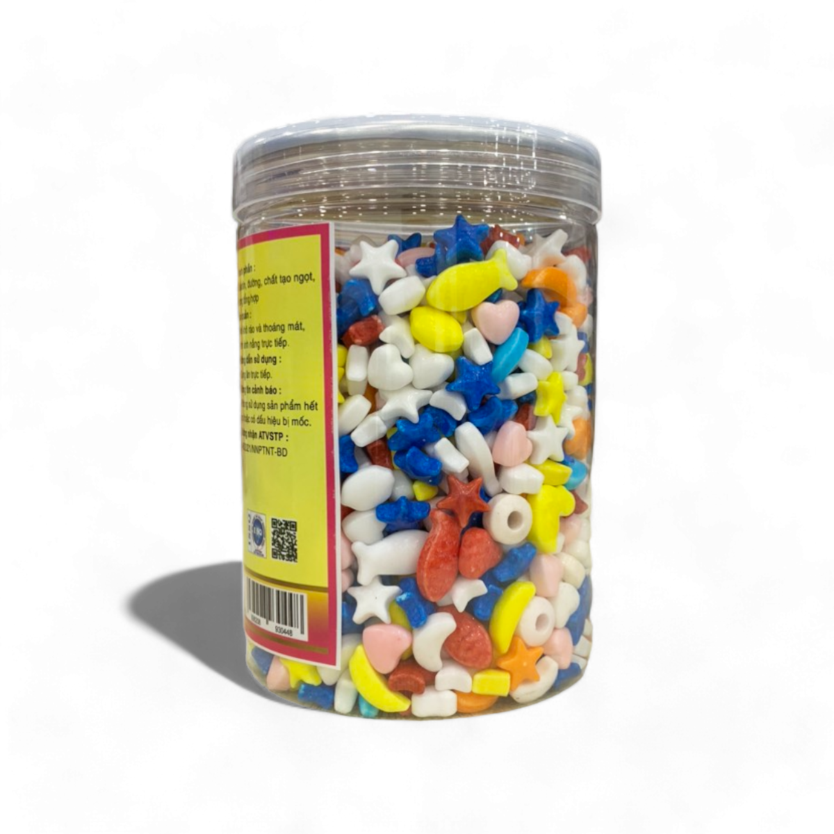 KẸO TRÁI CÂY NGŨ SẮC – Bên trong kẹo là một màu trắng sữa ngọt ngào, bọc bên ngoài là lớp áo mỏng các màu sắc tươi sáng rực rỡ: xanh lá, cam, xanh dương, vàng và đỏ.