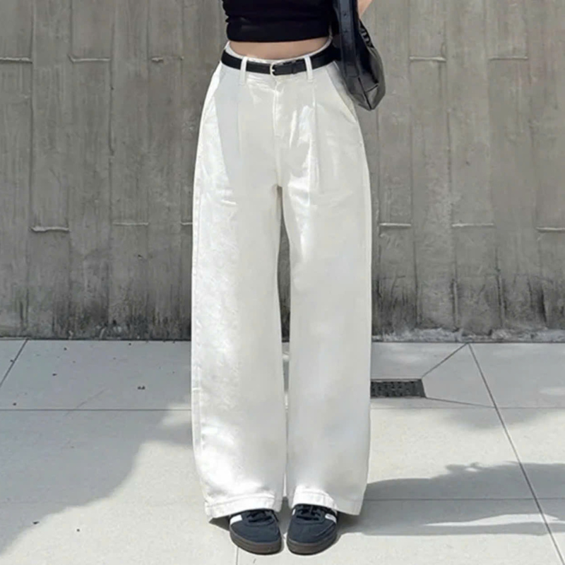 Bỏ sỉ quần Jeans Nữ Trơn Ống Rộng Vải Dày Mềm Không Co Giãn