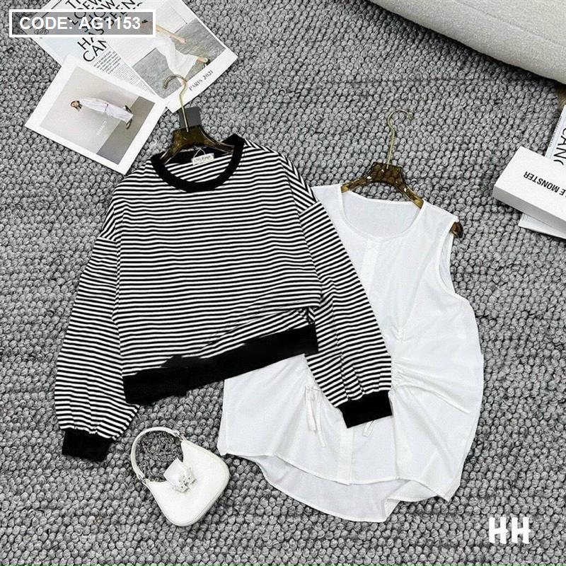 Bỏ sỉ set áo tay dài phối áo sơ mi sát nách