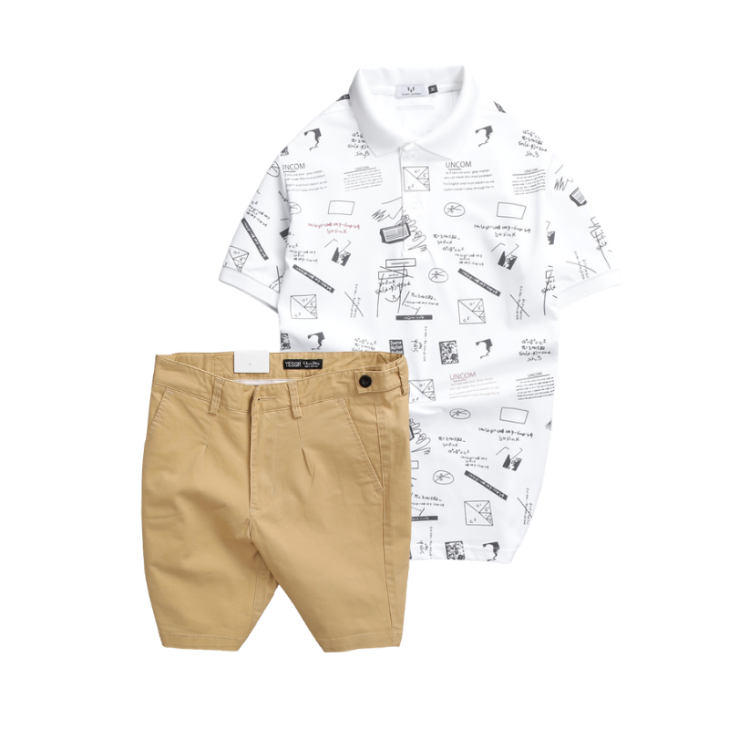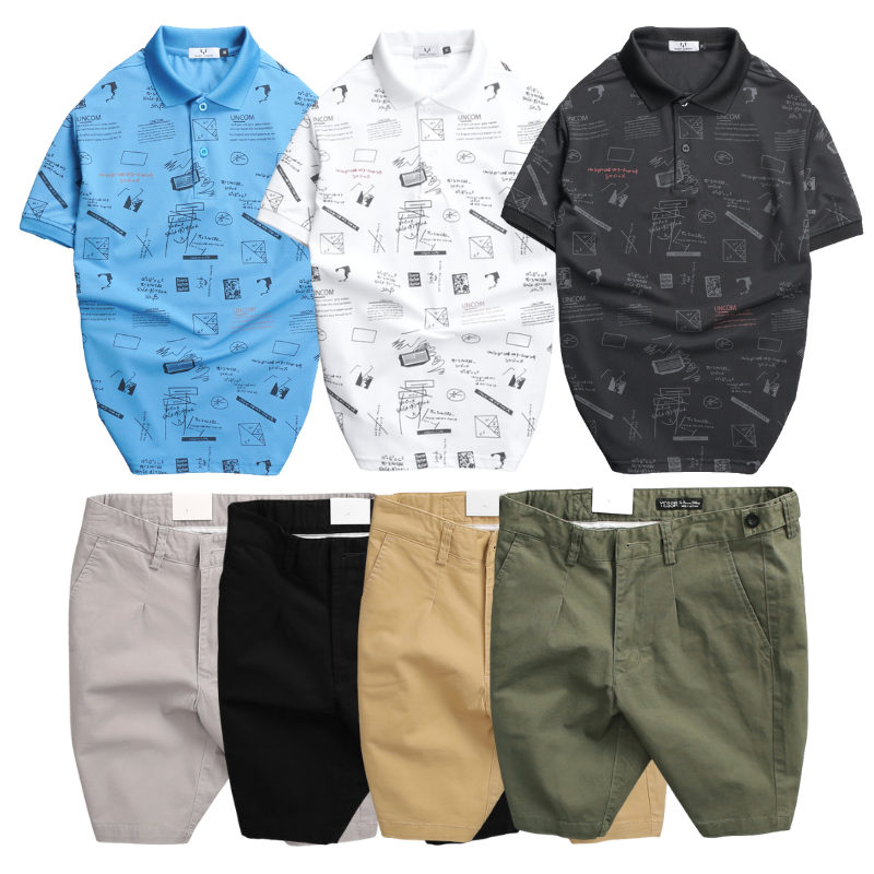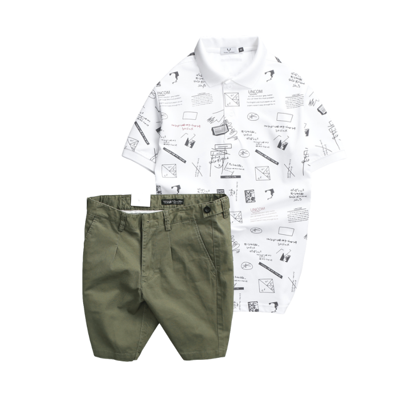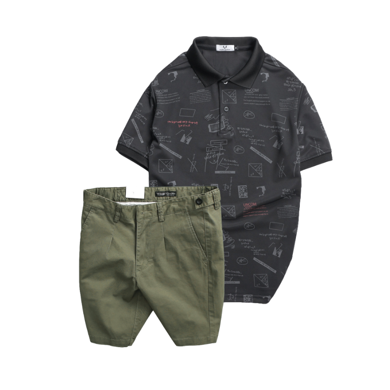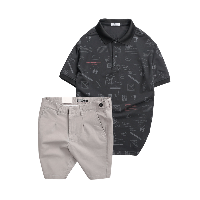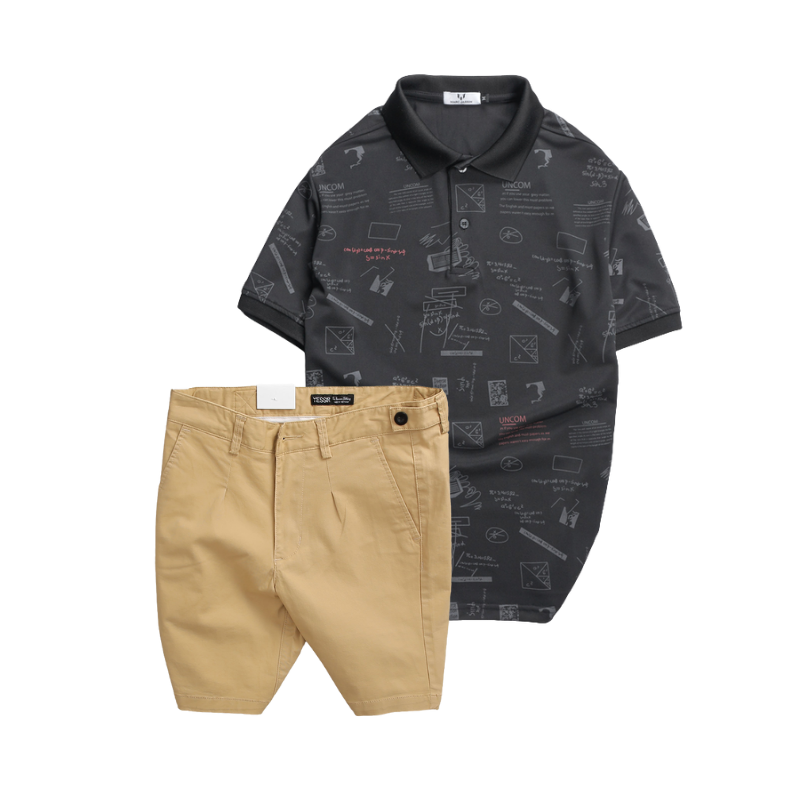 Bỏ sỉ set Bộ Nam – Áo Thun Nam Polo Cổ Bẻ In Hình Họa Tiết Bền Đẹp Và Quần Short Kaki Co Giãn Phối Nút Cao Cấp (Có Size 36)