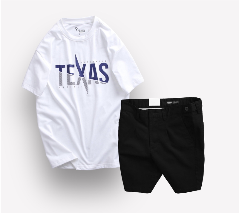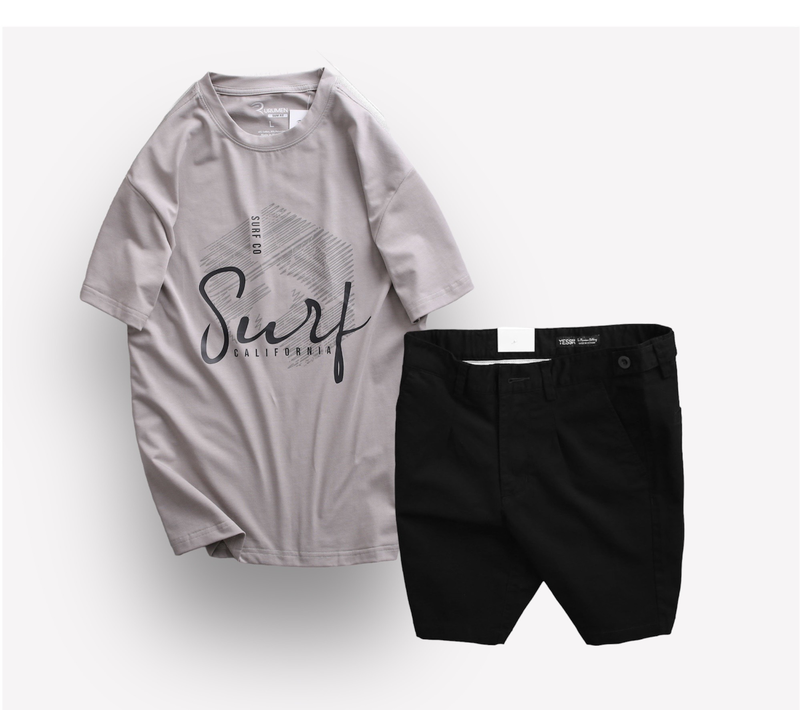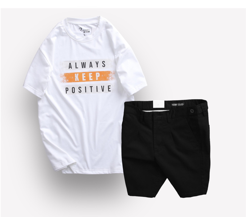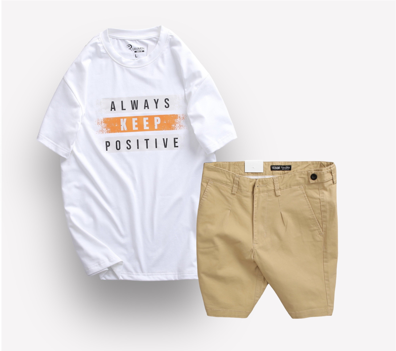 Set Bộ Nam Quần Short Kaki Phối Nút và Áo Thun Cổ Tròn In Chữ Big Size
