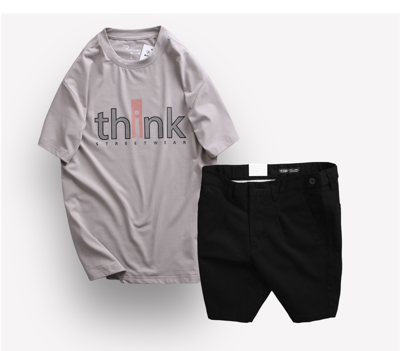 Bỏ sỉ set Bộ Nam Quần Short Kaki Phối Nút và Áo Thun Cổ Tròn In Chữ Big Size
