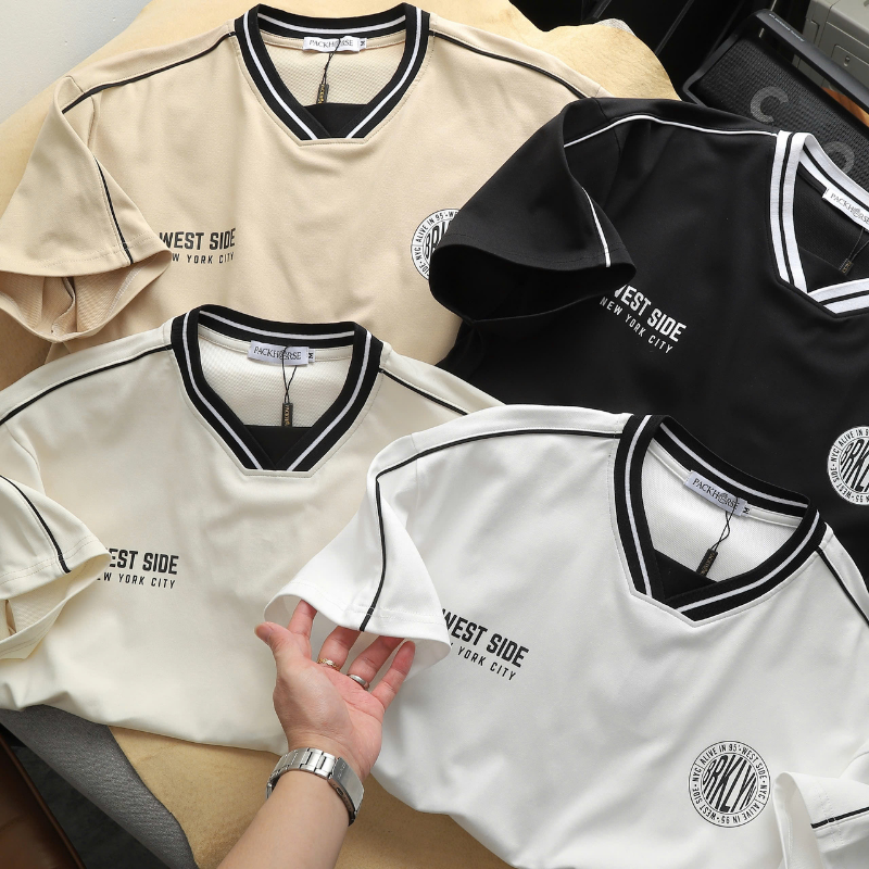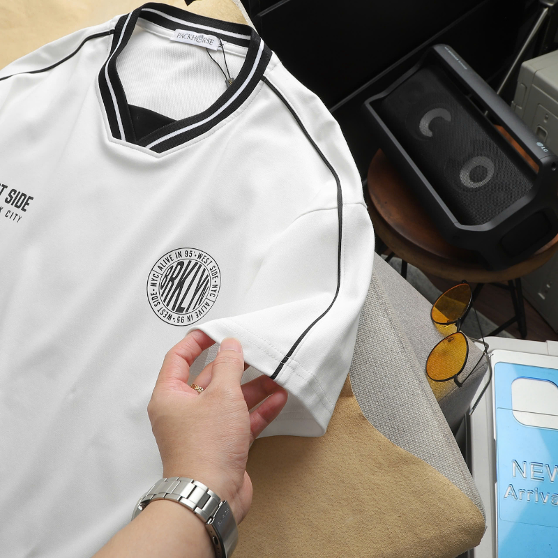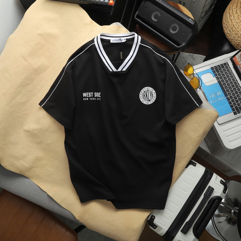 ✨ Áo cổ viền thể thao phối sọc – tôn vai rộng, dáng chuẩn