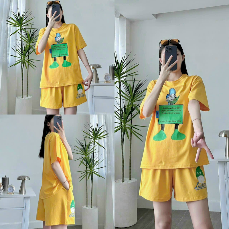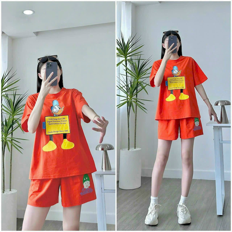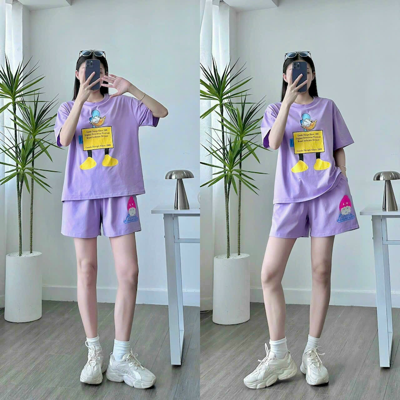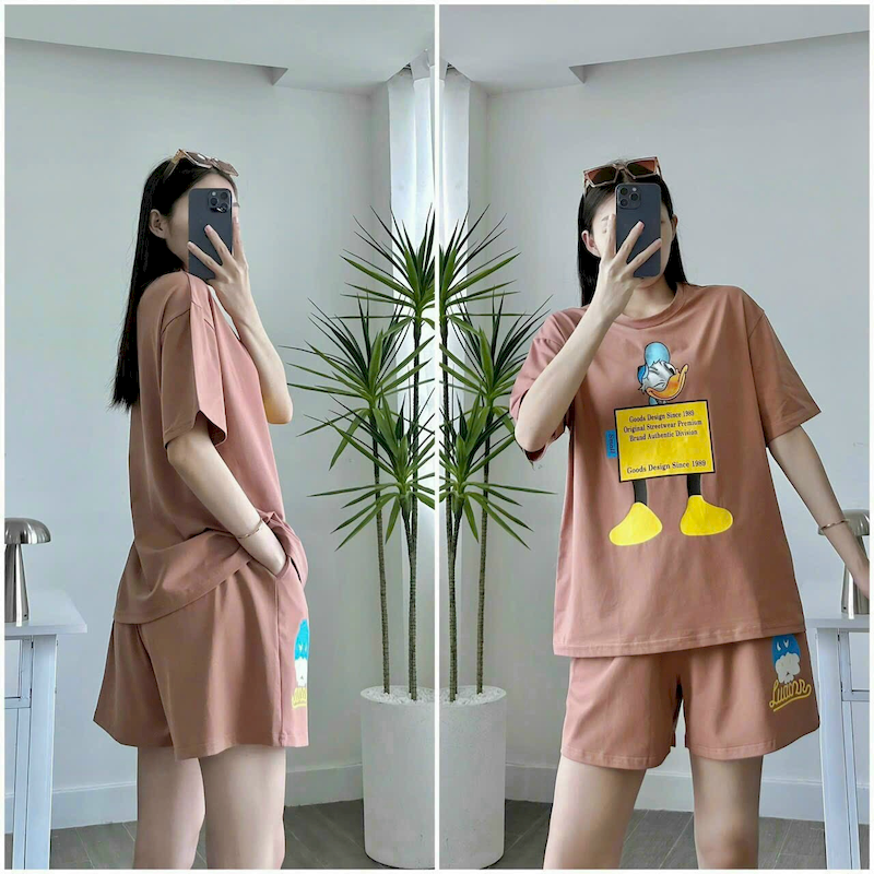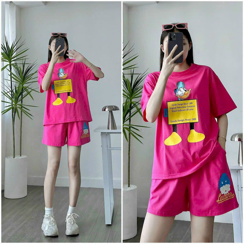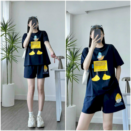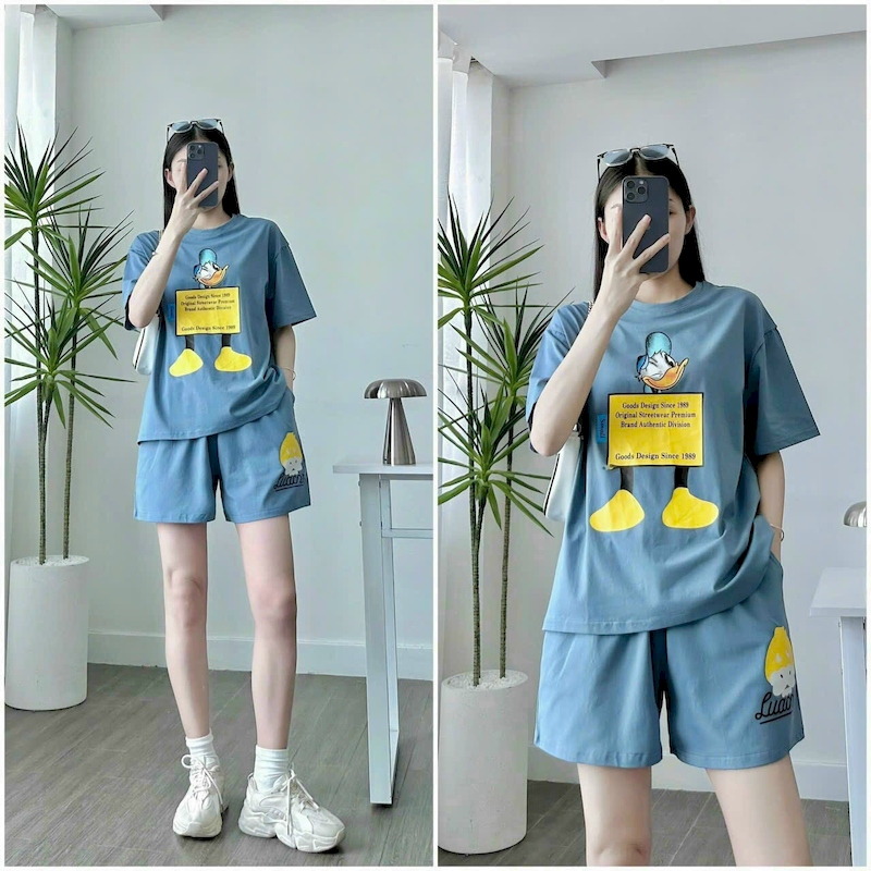 Bỏ sỉ set bộ thun nữ quần ngắn in hình vịt nháy mắt form rộng dưới 70kg