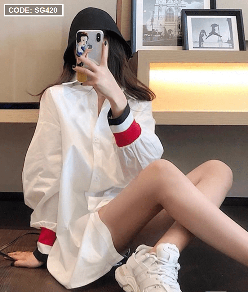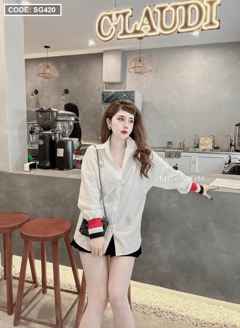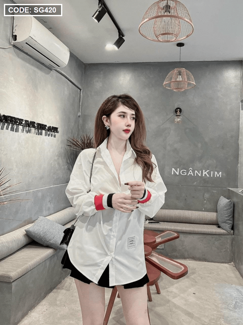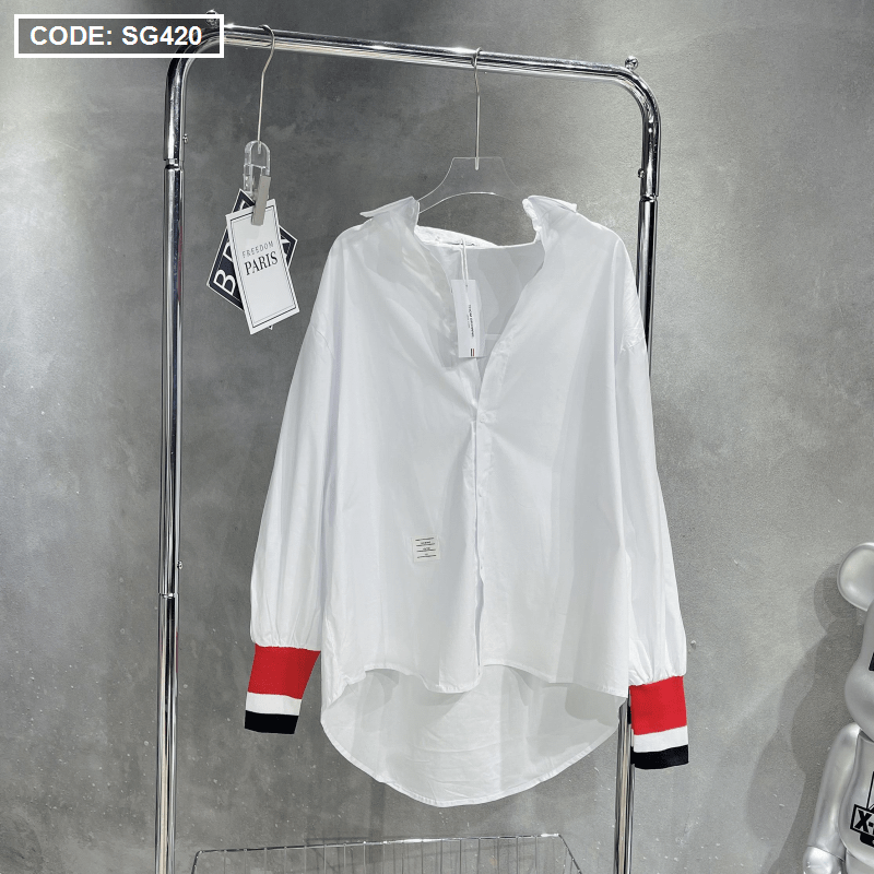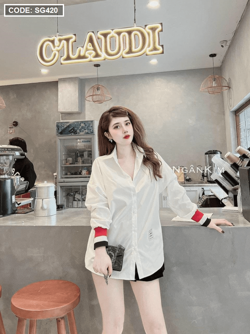 Bỏ sỉ sơ mi nữ màu trắng tay bo