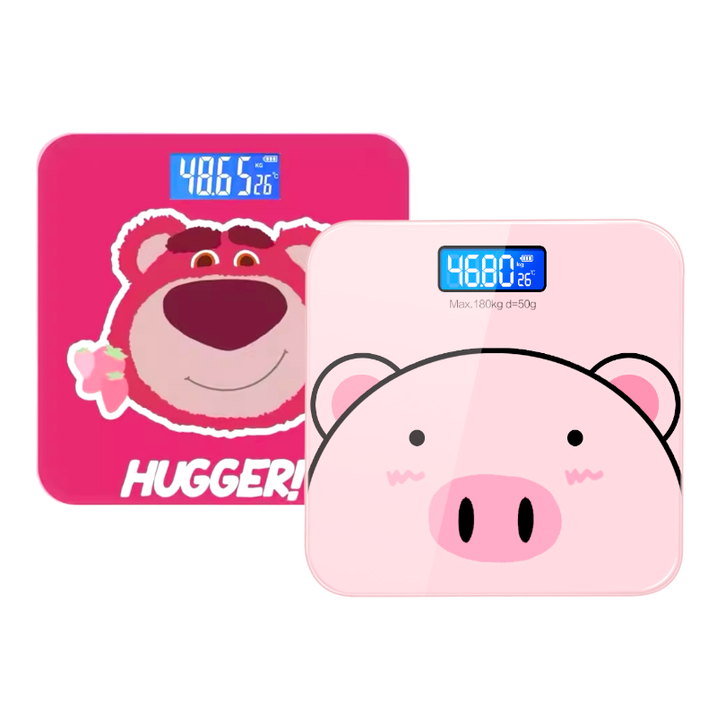 Cân Điện Tử Sức Khỏe Gia Đình Hình Heo Hồng Và Gấu Dâu Trong Tải Tối Đa 180kg 28x28cm