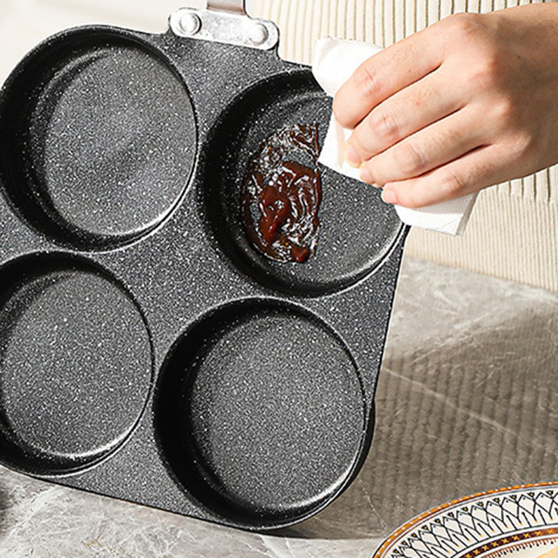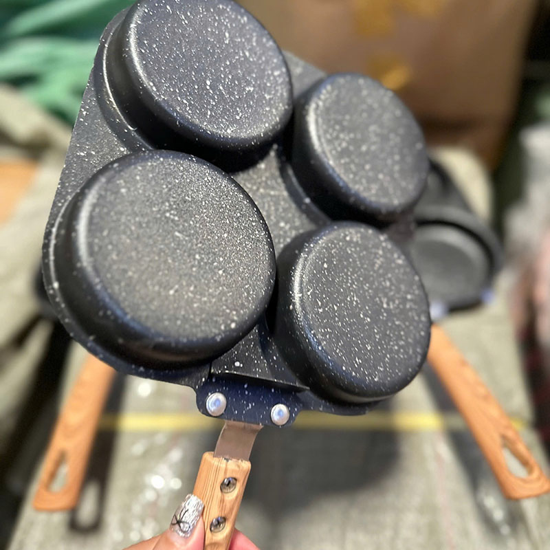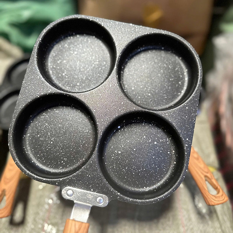 ✅ Chảo đá chống dính dày dặn, cùng một lúc có thể chiên rán 4 món.
