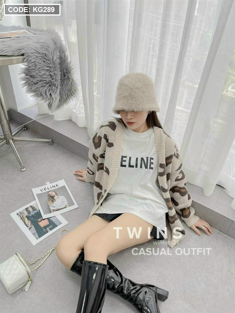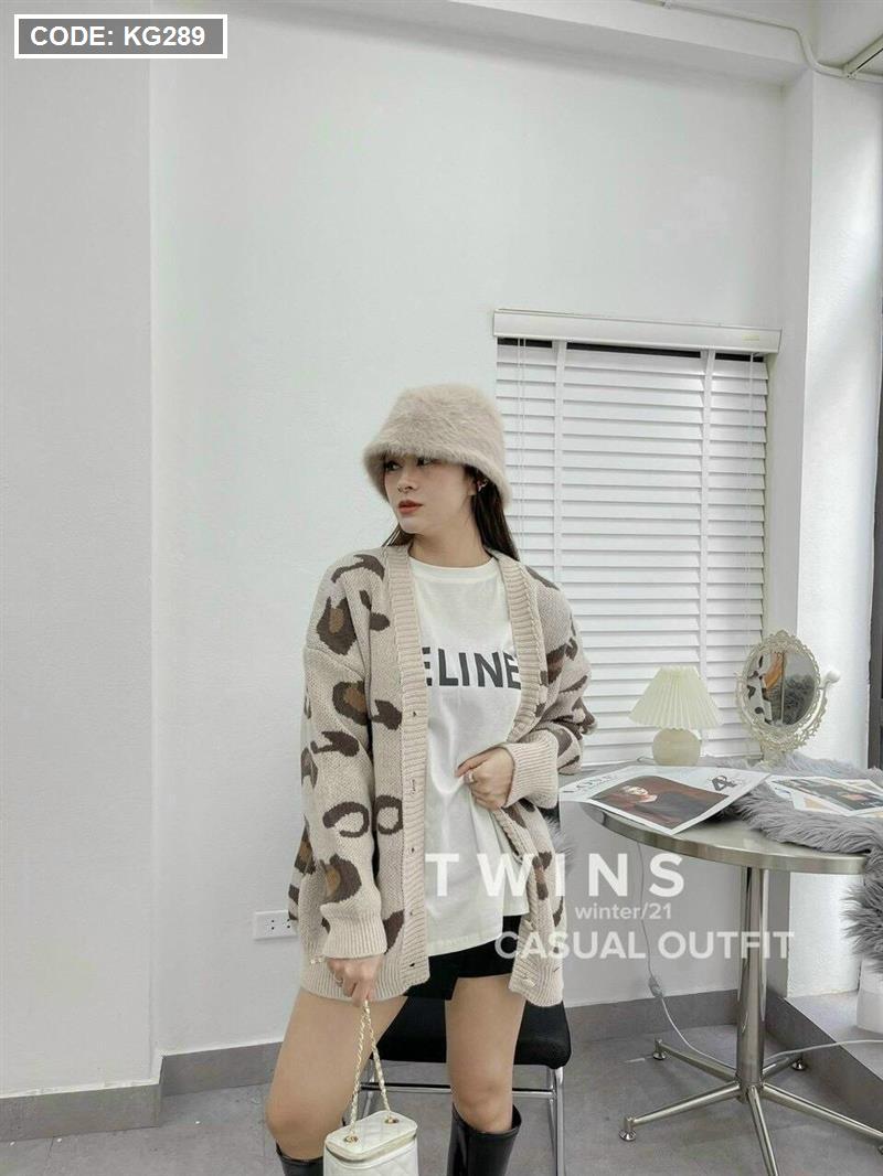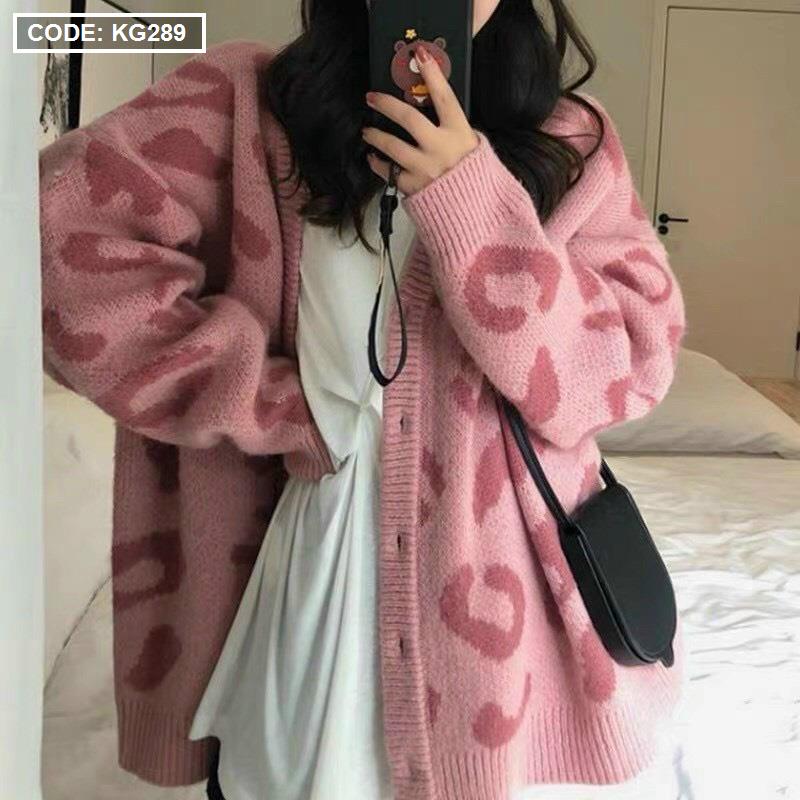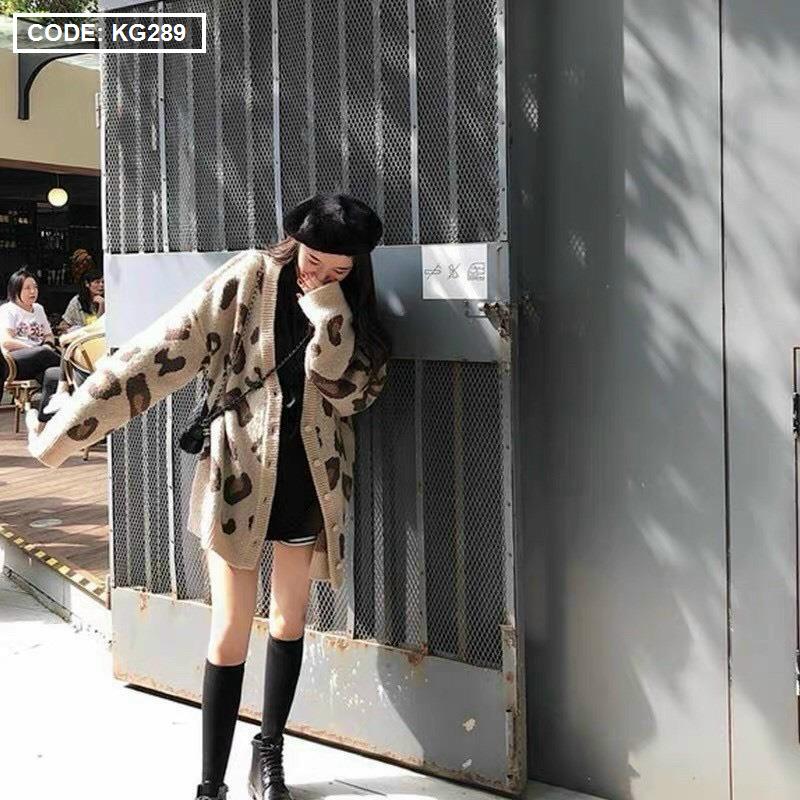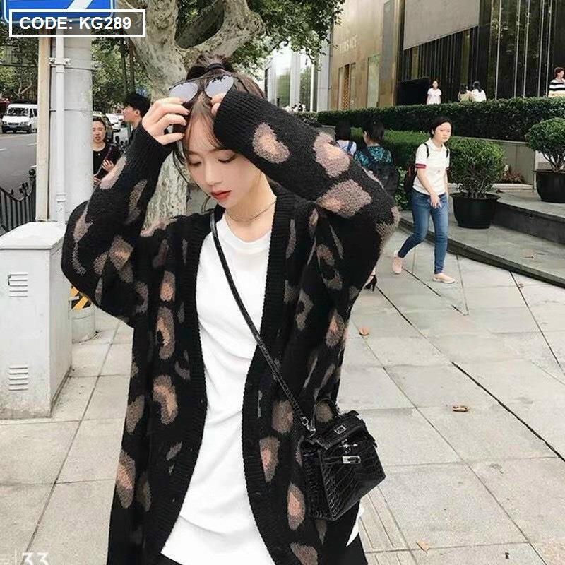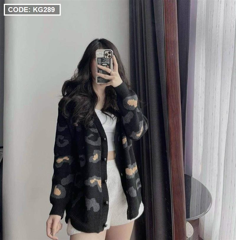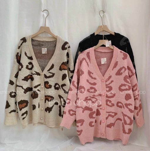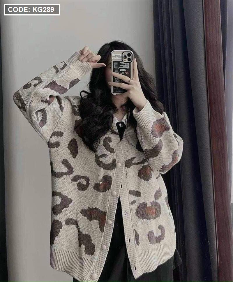 Chuyên sỉ áo khoác len nữ nhiều màu họa tiết báo
