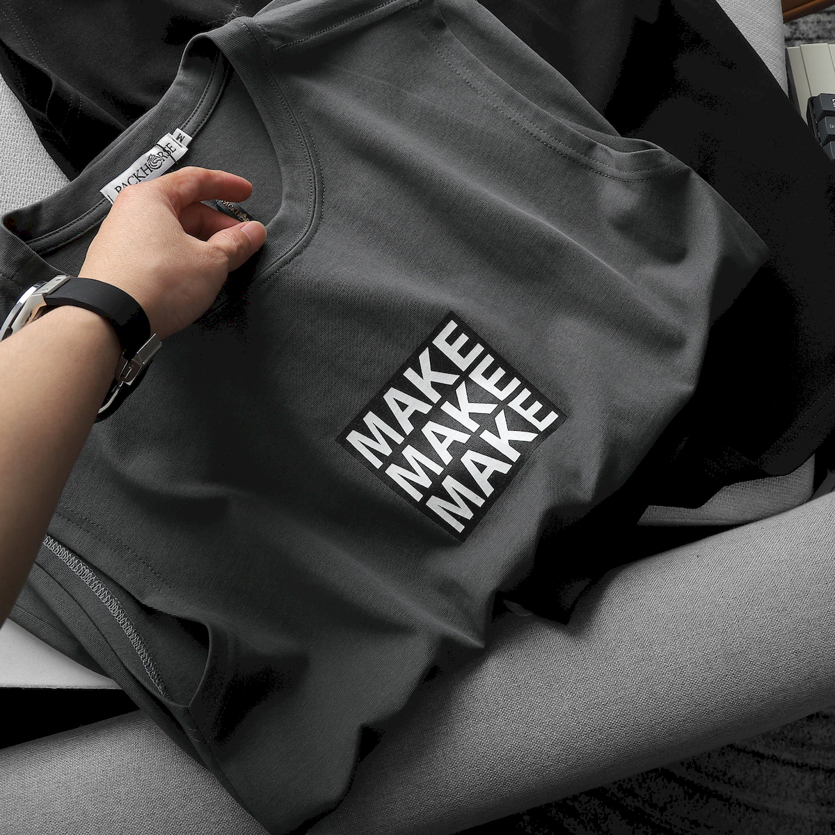 In chữ MAKE nổi bật: Áo được thiết kế với họa tiết in chữ MAKE trực quan và sáng tạo, giúp bạn tự tin và phong cách hơn khi diện lên mình.