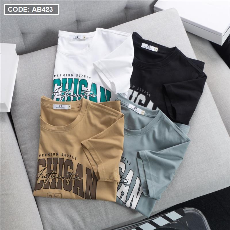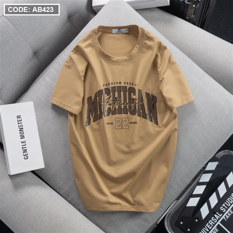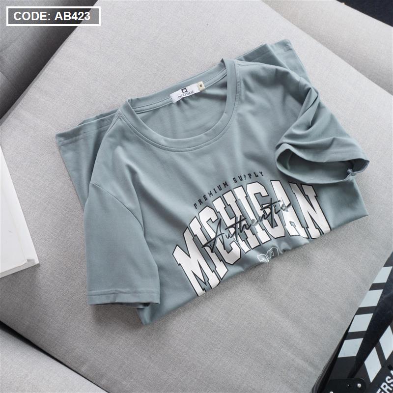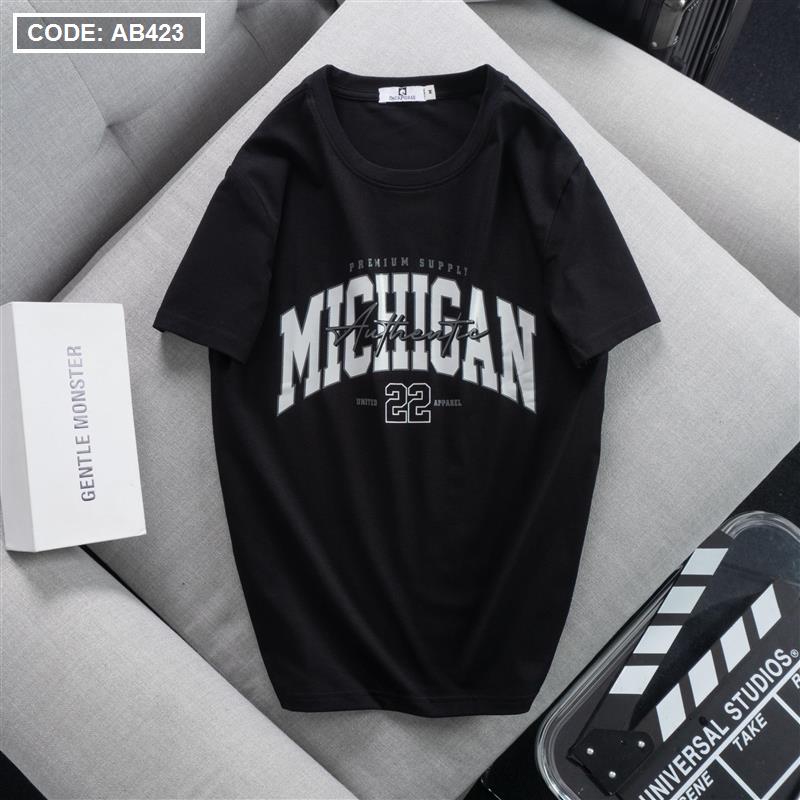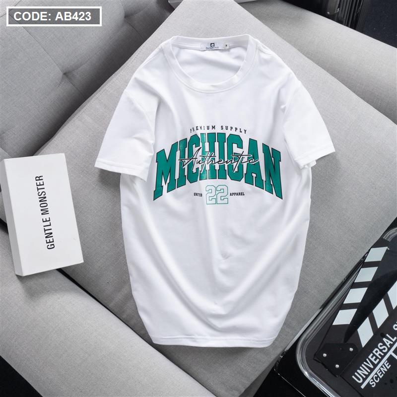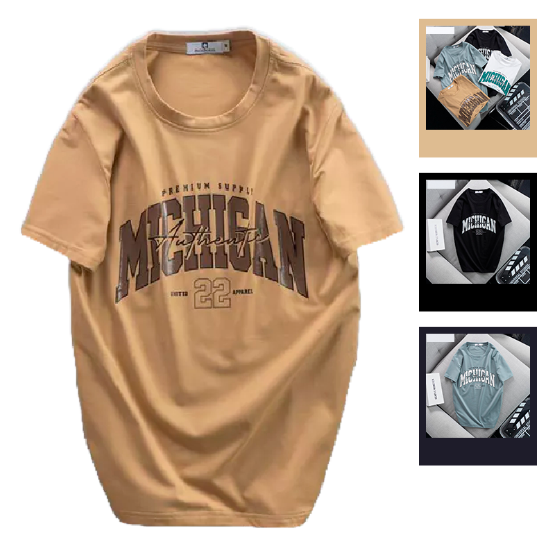 Chuyên sỉ áo Thun Nam Cổ Tròn Cotton Tay Ngắn In Chữ Michigan