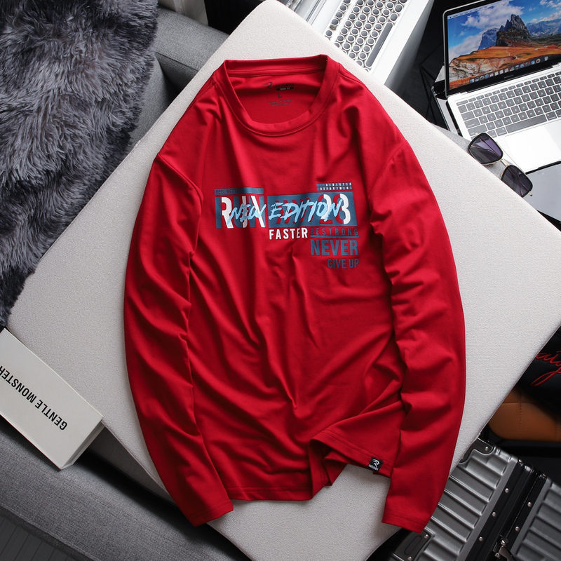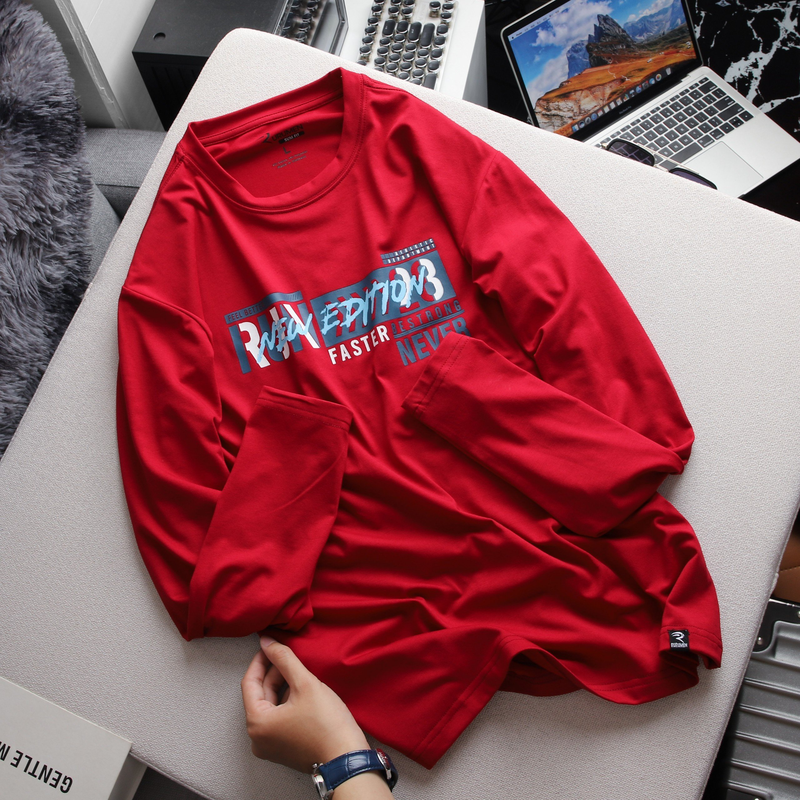 Chuyên sỉ áo Thun Nam Tay Dài Cổ Tròn Rurumen Màu Đỏ In Chữ NEW EDITION Big Size