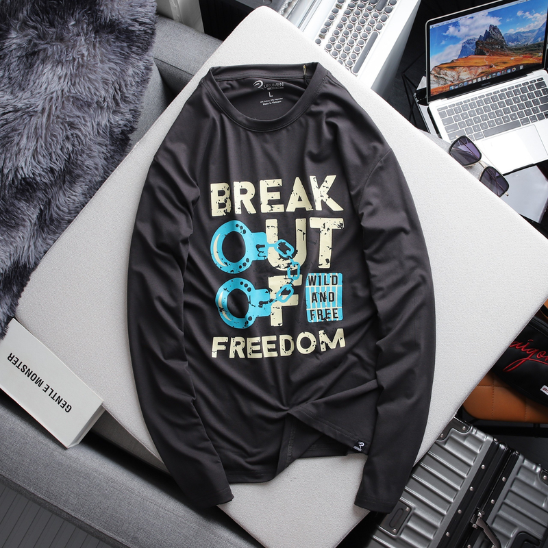 Chuyên sỉ áo Thun Nam Tay Dài Cổ Tròn Rurumen Màu Xám In Chữ BREAK OUT OF Big Size