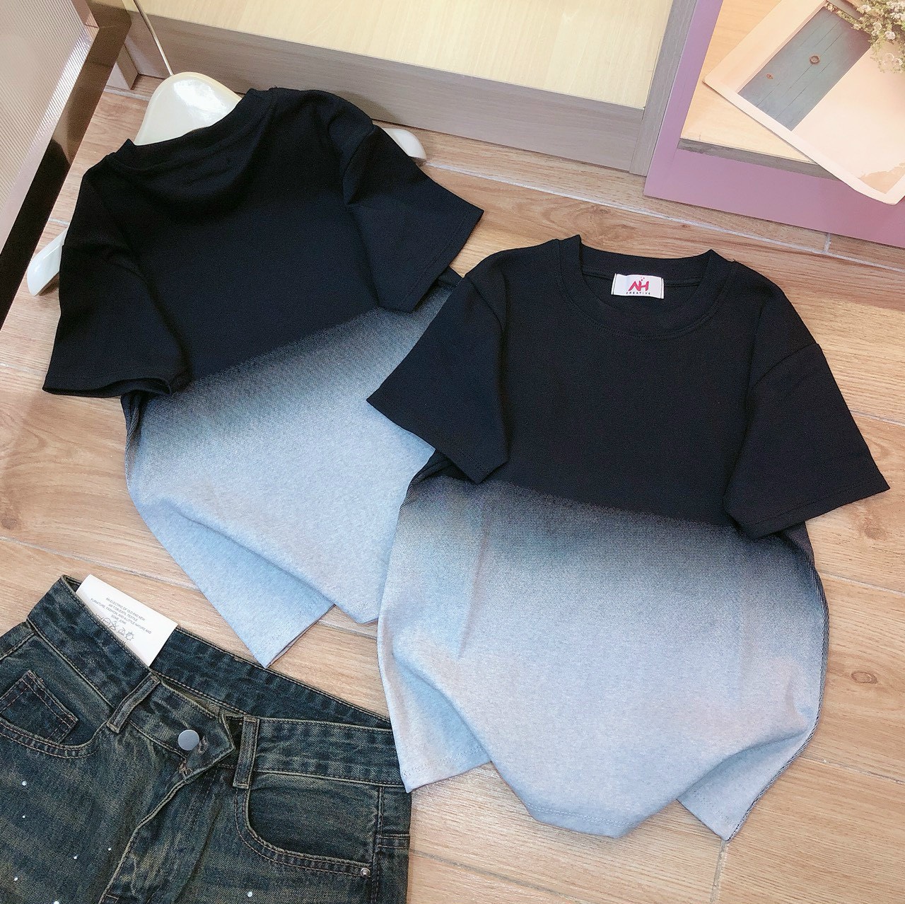 Chuyên sỉ áo thun nữ Baby Tee loang 2 màu ôm body từ 35kg – 55kg