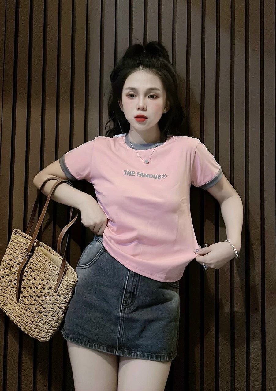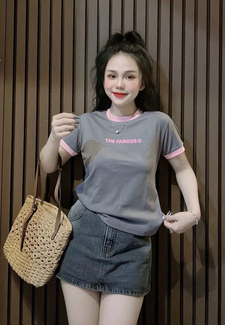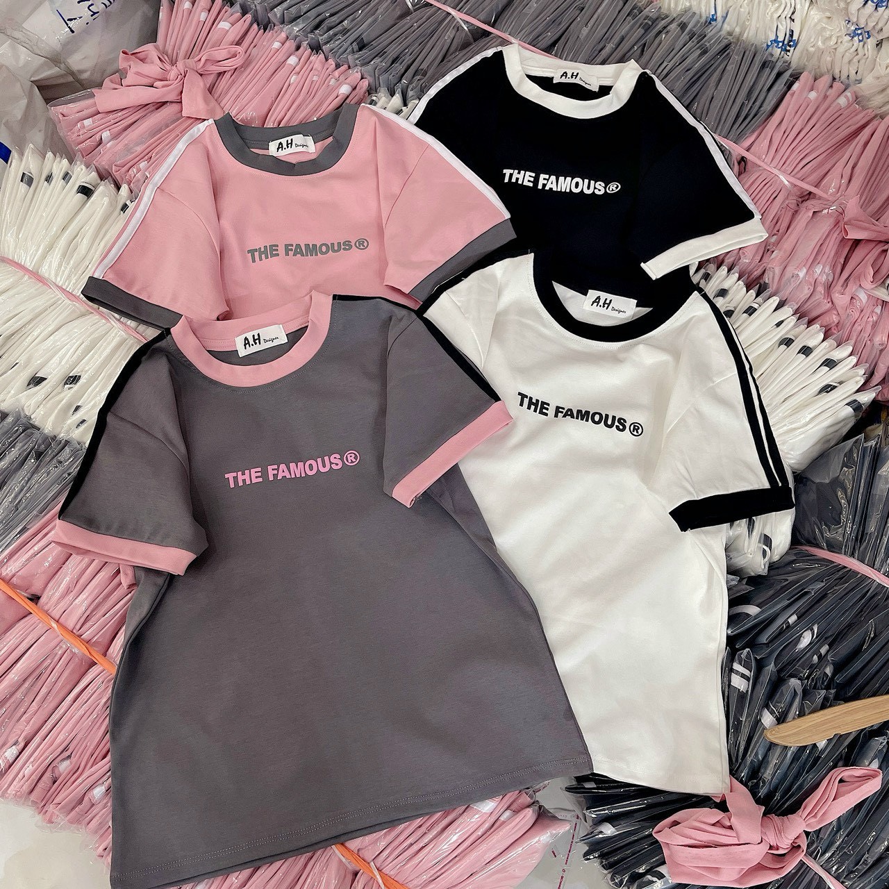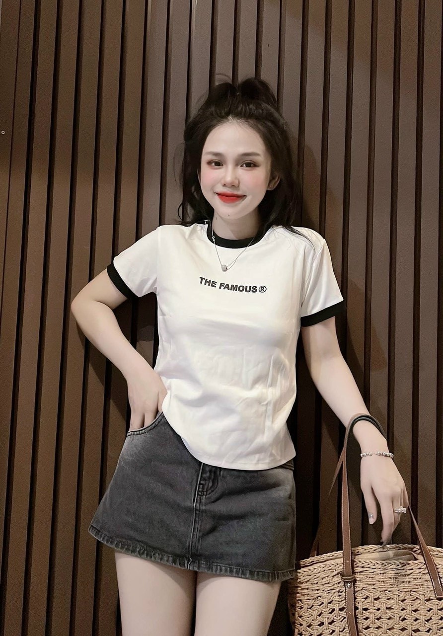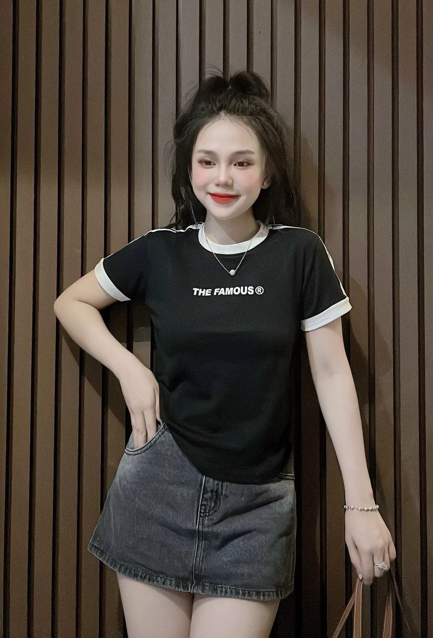 Chuyên sỉ áo thun nữ Baby Tee ôm body từ 35kg – 55kg in chữ THE FAMOUS