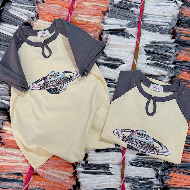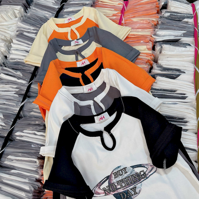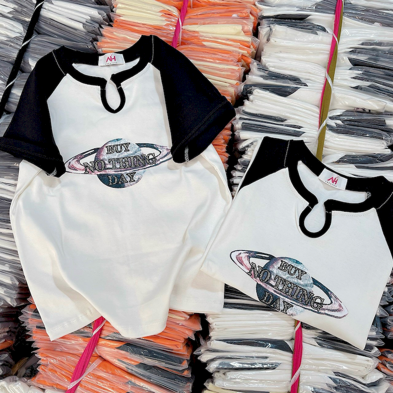 Chuyên sỉ áo Thun Nữ Cổ Tròn Baby Tee In Hình Cổ Khoét Giọt Nước Mạc AH787