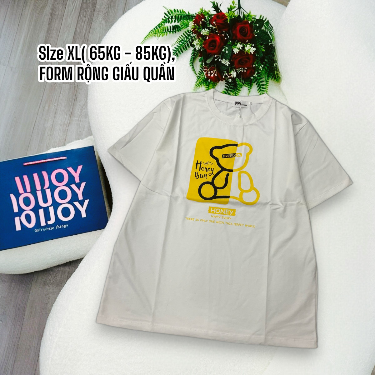 Chuyên sỉ áo Thun Nữ Cổ Tròn Form Đại In Hình Gấu Size XL(65-85kg)