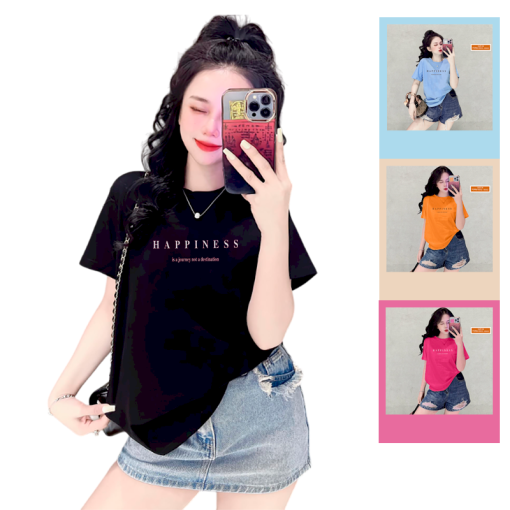 Chuyên sỉ áo Thun Nữ Cổ Tròn Form Vừa In Chữ Happiness Size M(40-60kg)