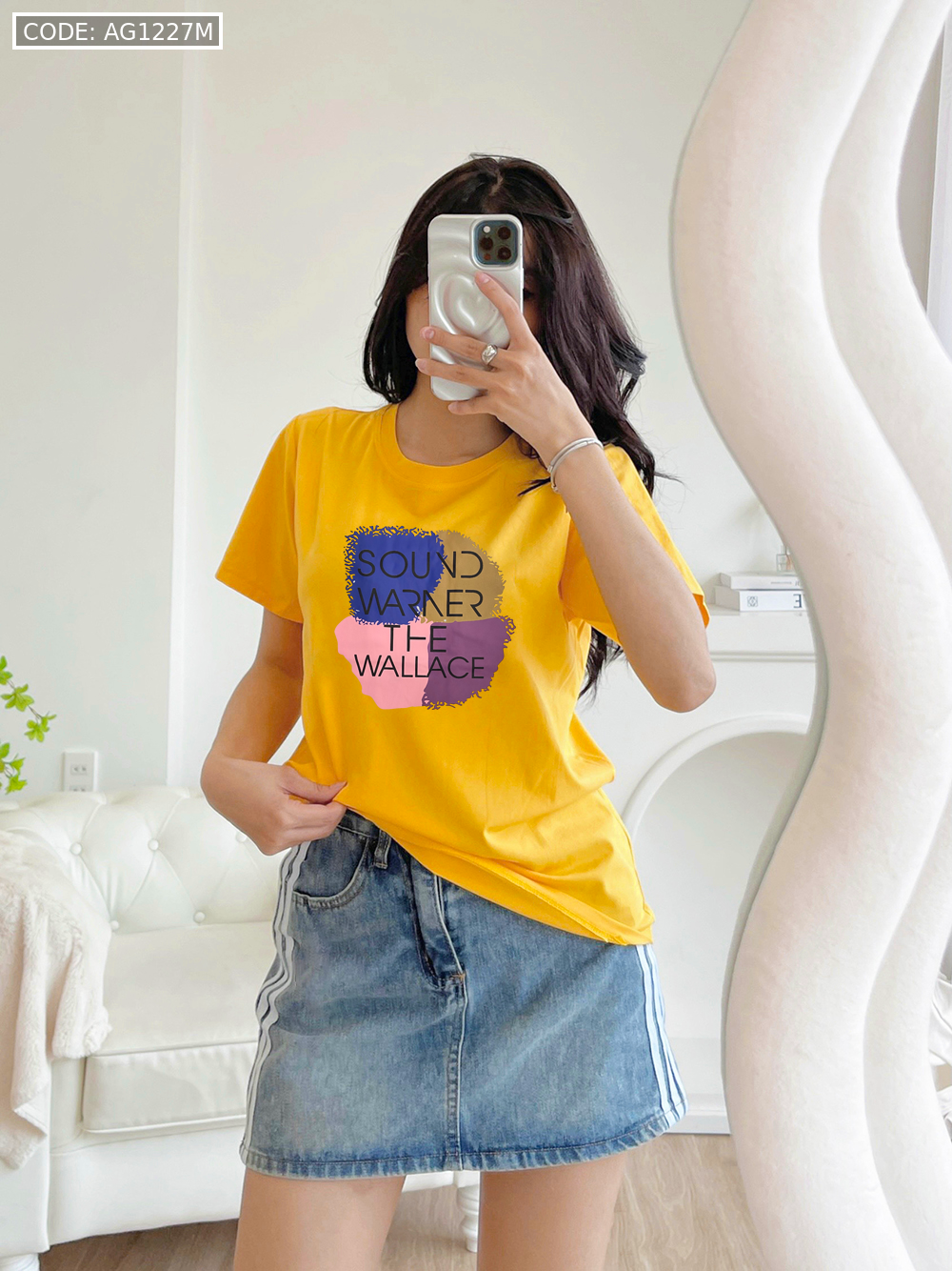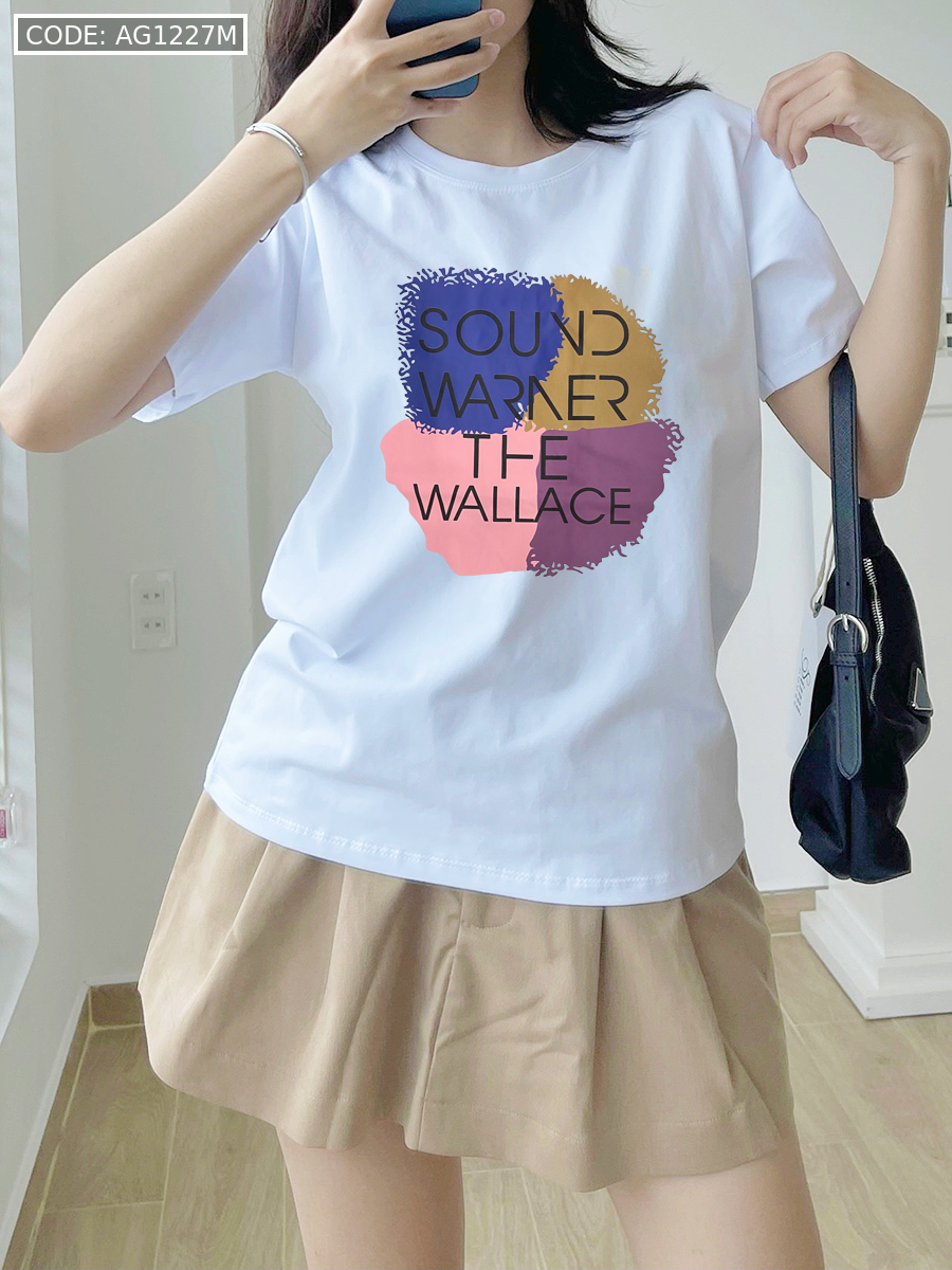 Chuyên sỉ áo Thun Nữ Cổ Tròn Form Vừa In Chữ Sound Warner Size M(40-60kg)