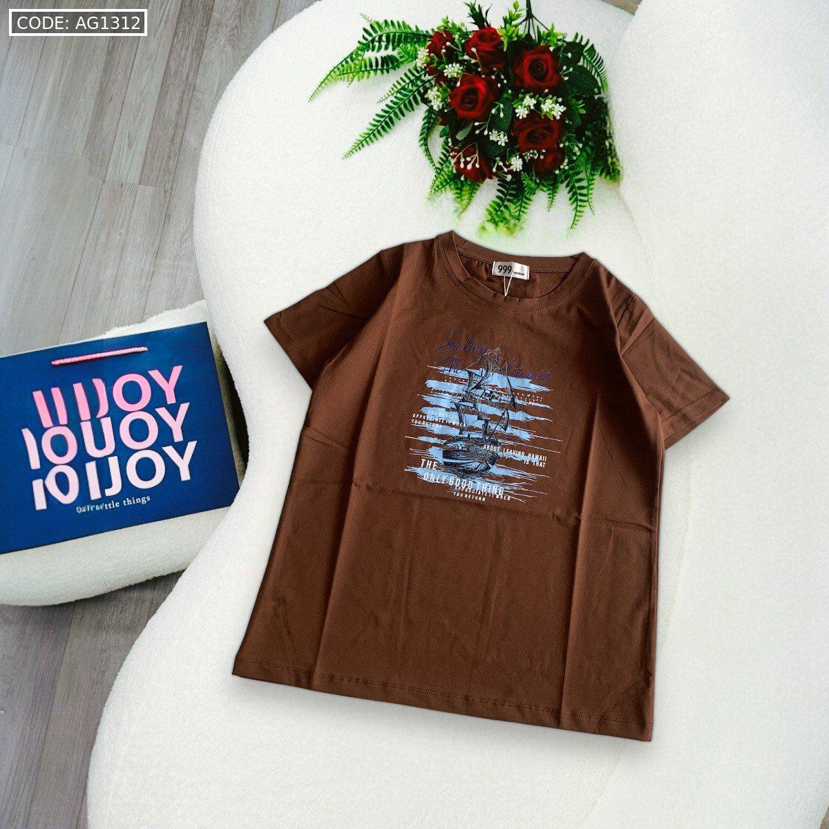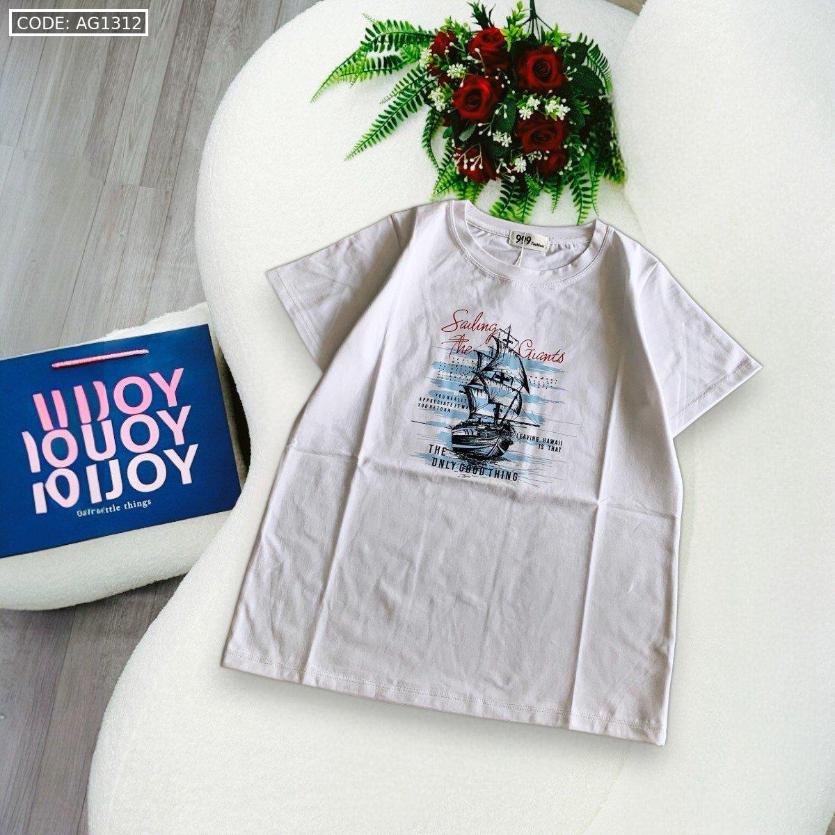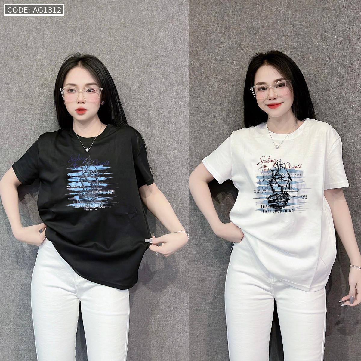 Chuyên sỉ áo Thun Nữ Cổ Tròn In Hình Chiếc Thuyền form vừa size M(40-60kg)
