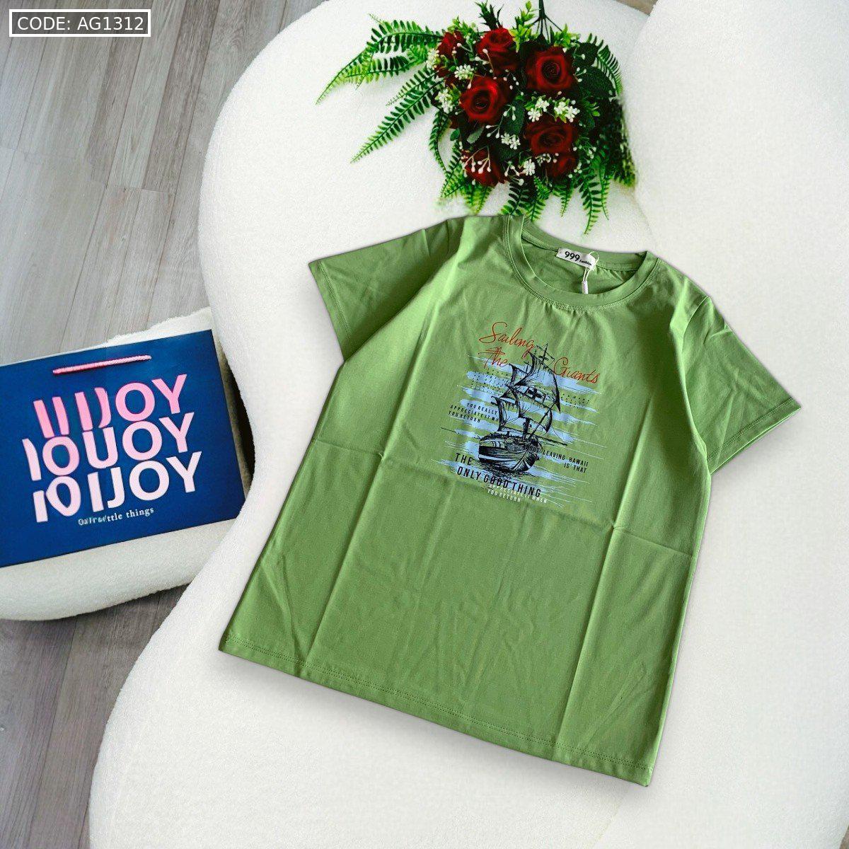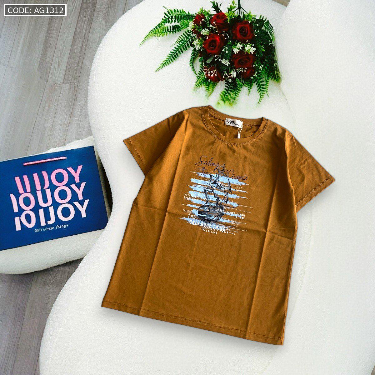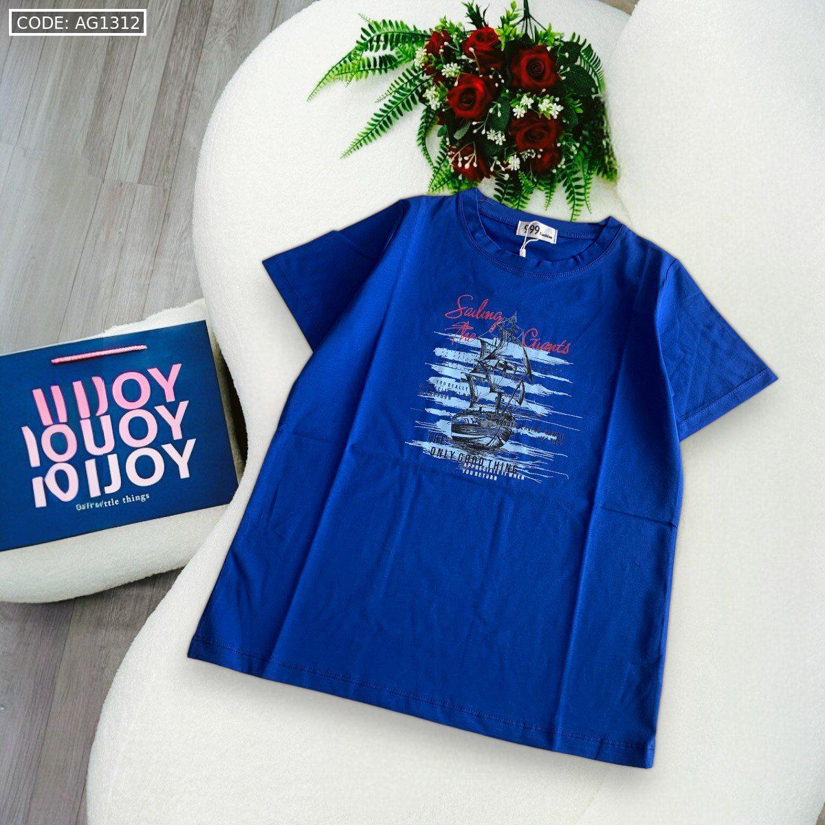 Chuyên sỉ áo Thun Nữ Cổ Tròn In Hình Chiếc Thuyền form vừa size M(40-60kg)