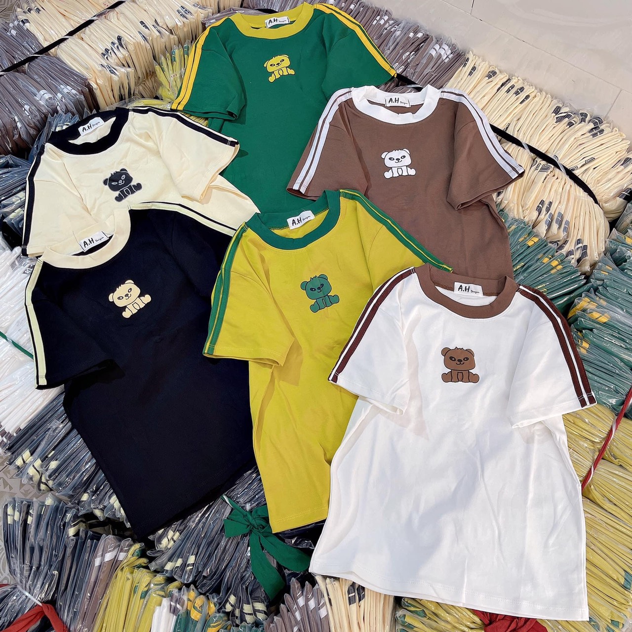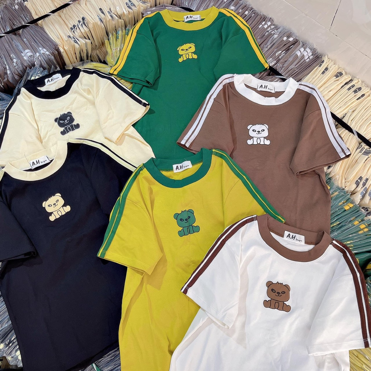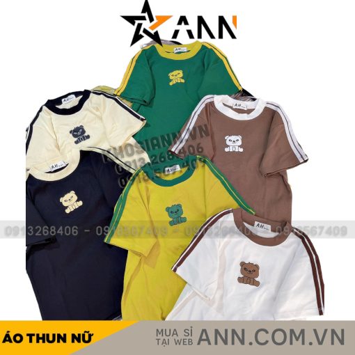 Chuyên sỉ áo thun nữ in Hình Gấu trước ngực Baby Tee ôm body từ 35kg – 55kg